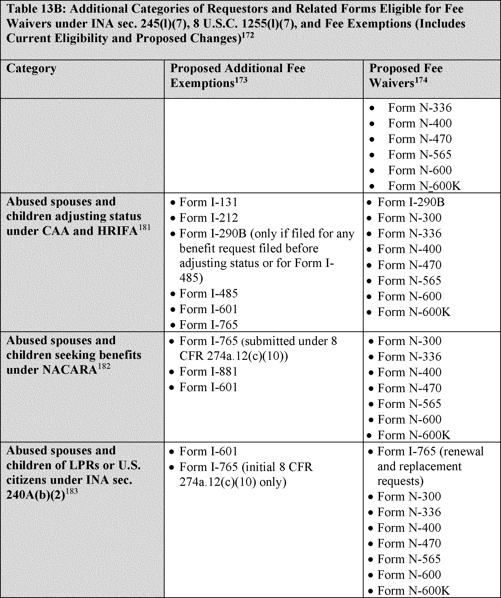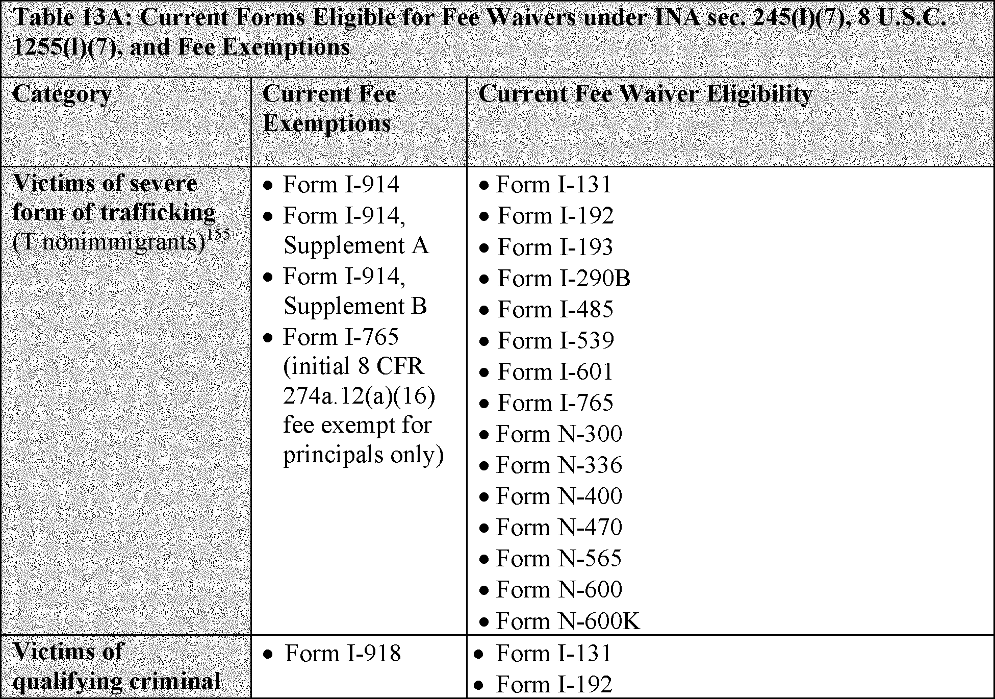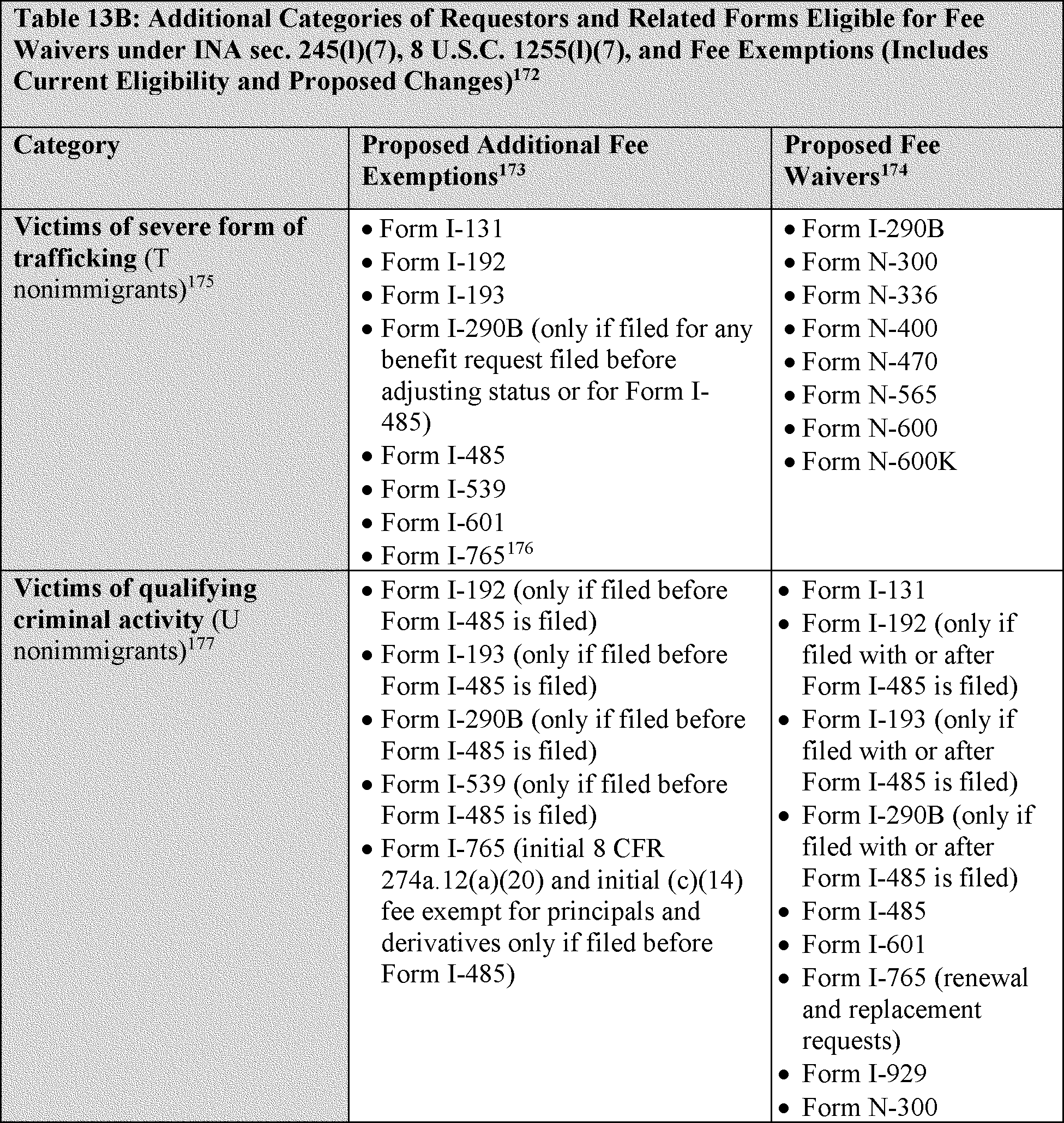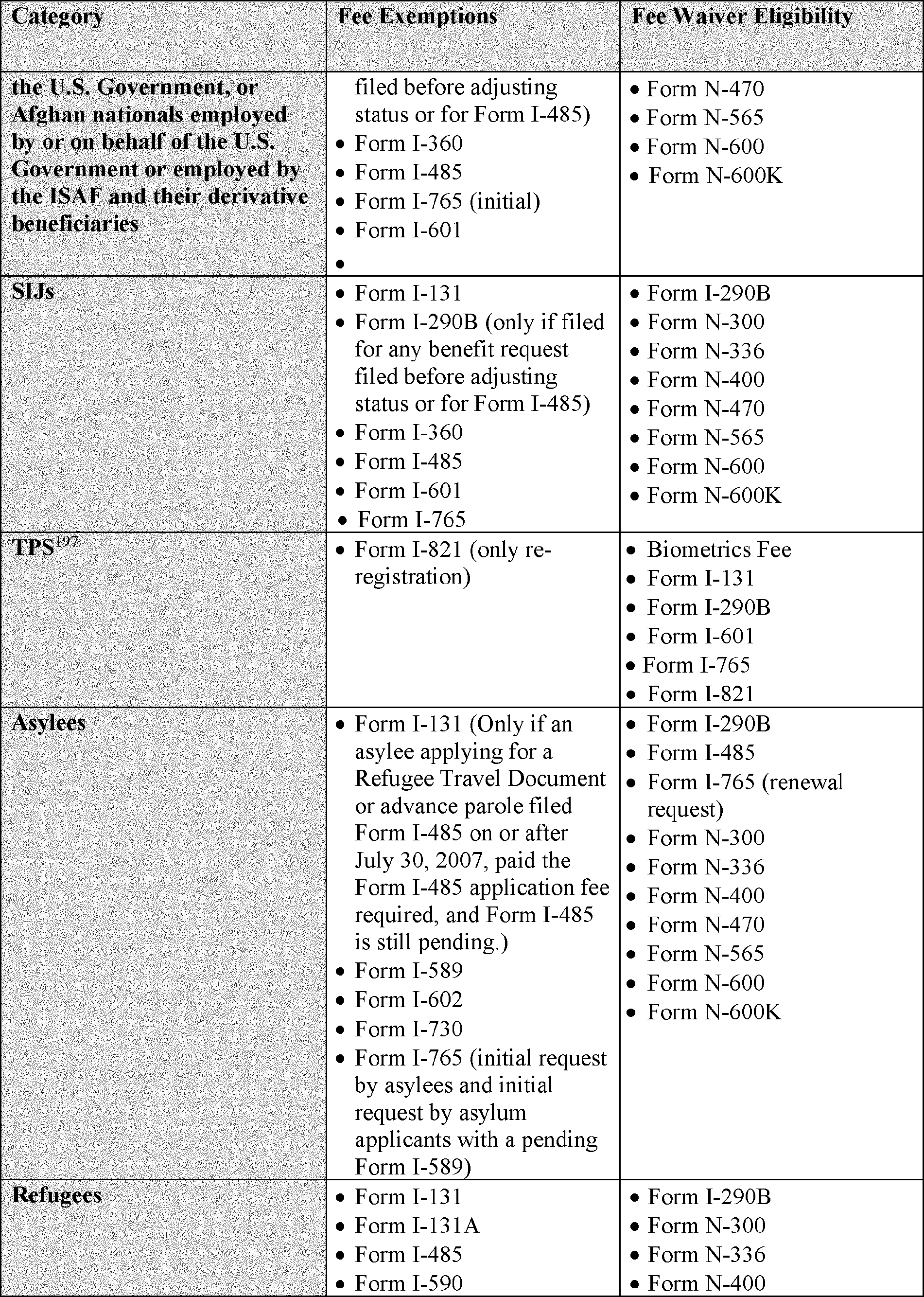 These fee exemptions do not impact eligibility for any particular form or when an individual may file the form. They are in addition to the forms listed under proposed 8 CFR 106.2 for which DHS proposes to codify that there is no fee.