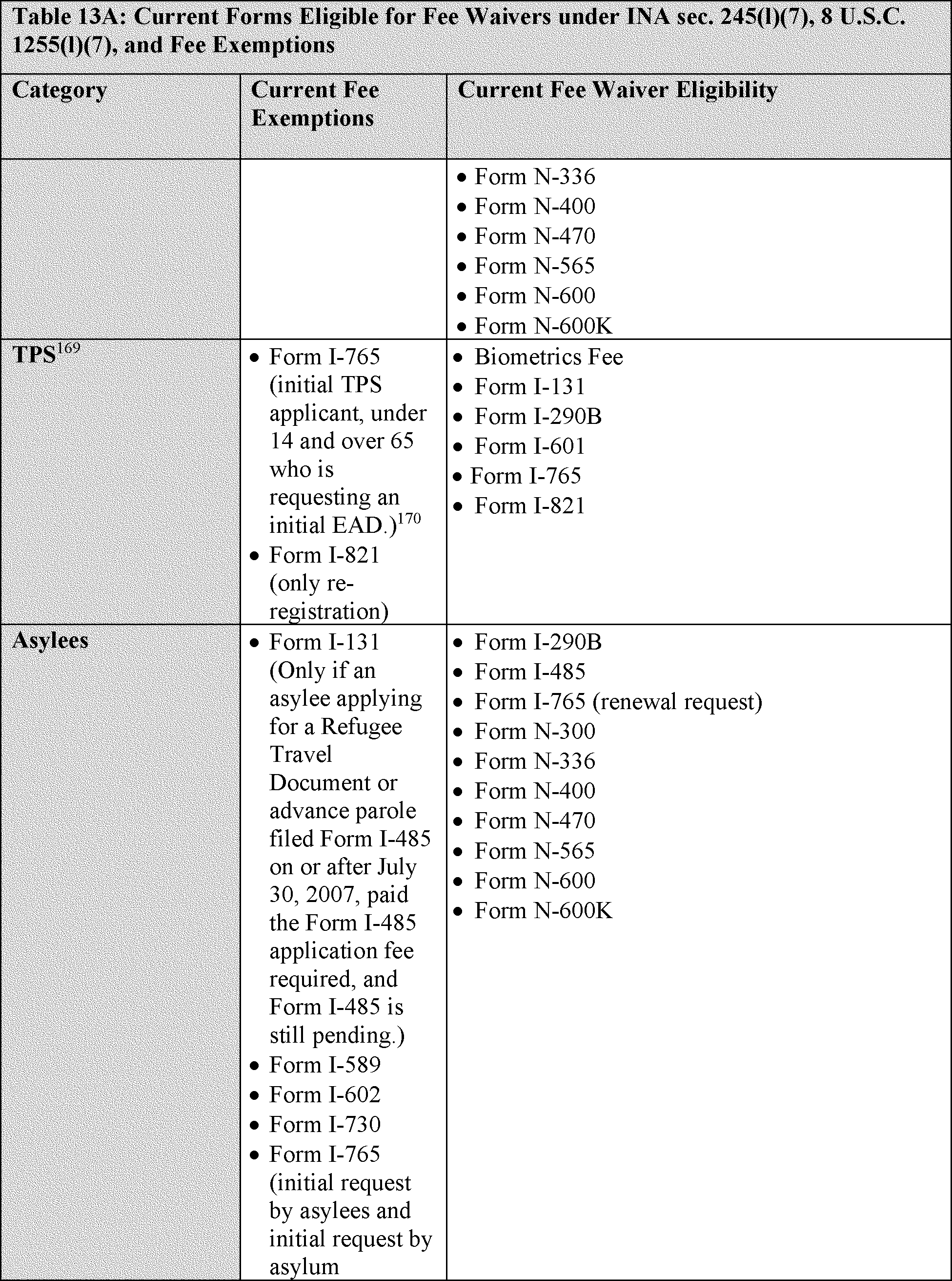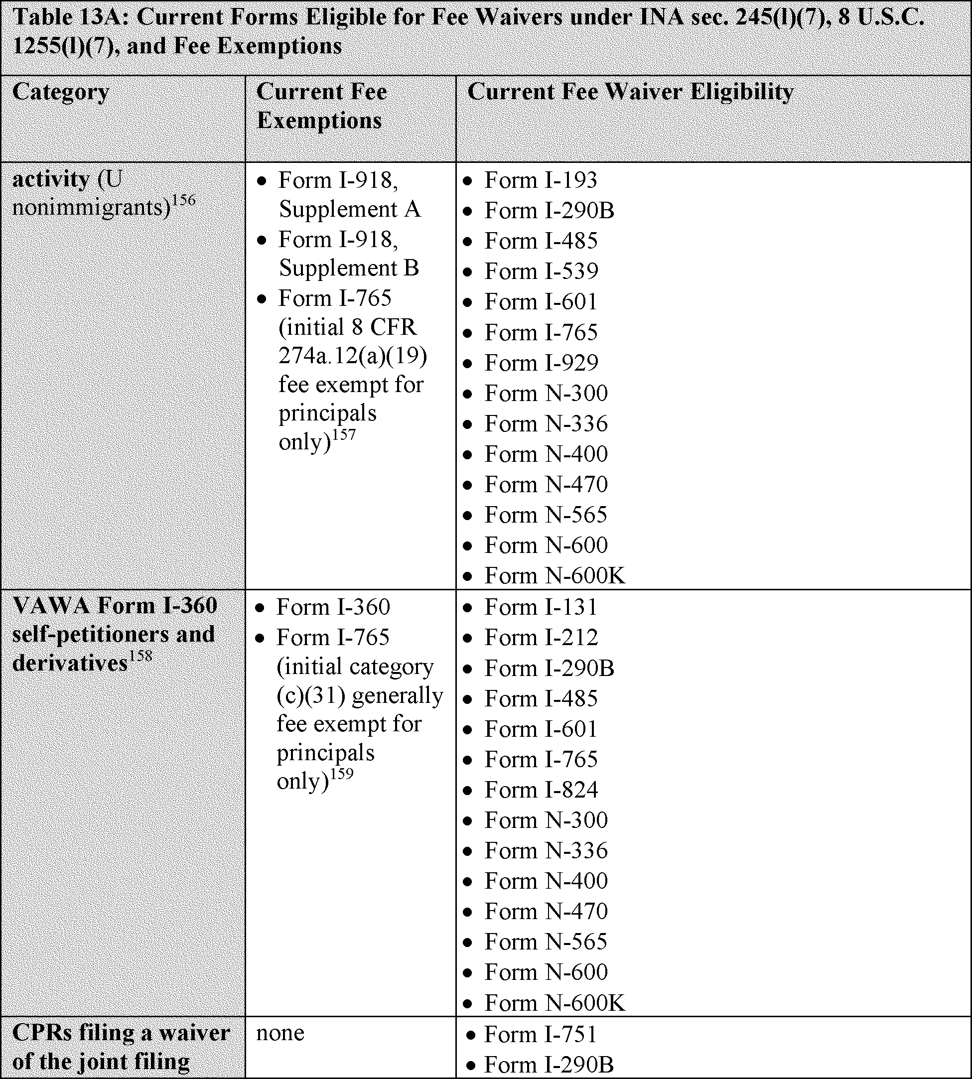 VII. Fee Exemptions