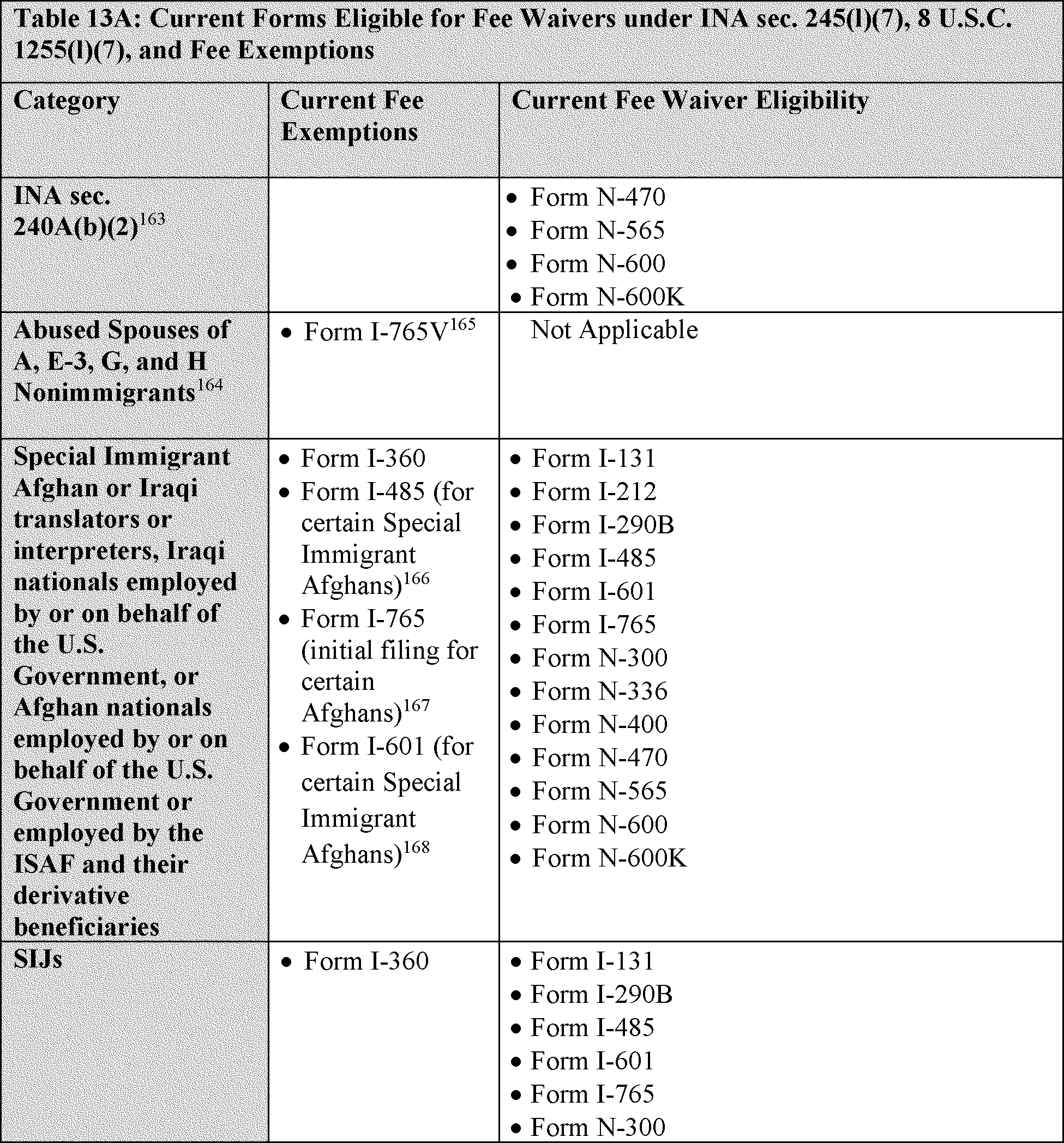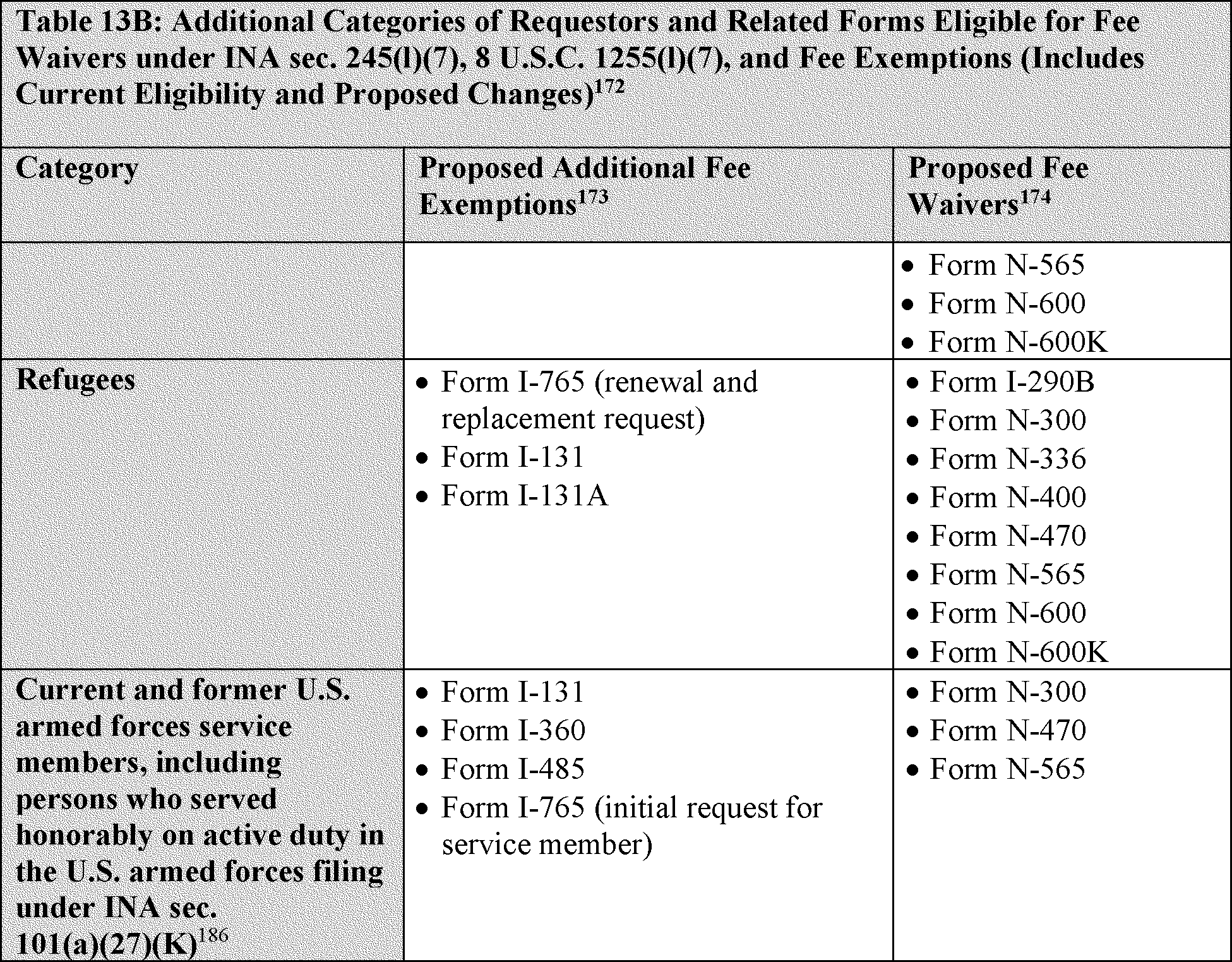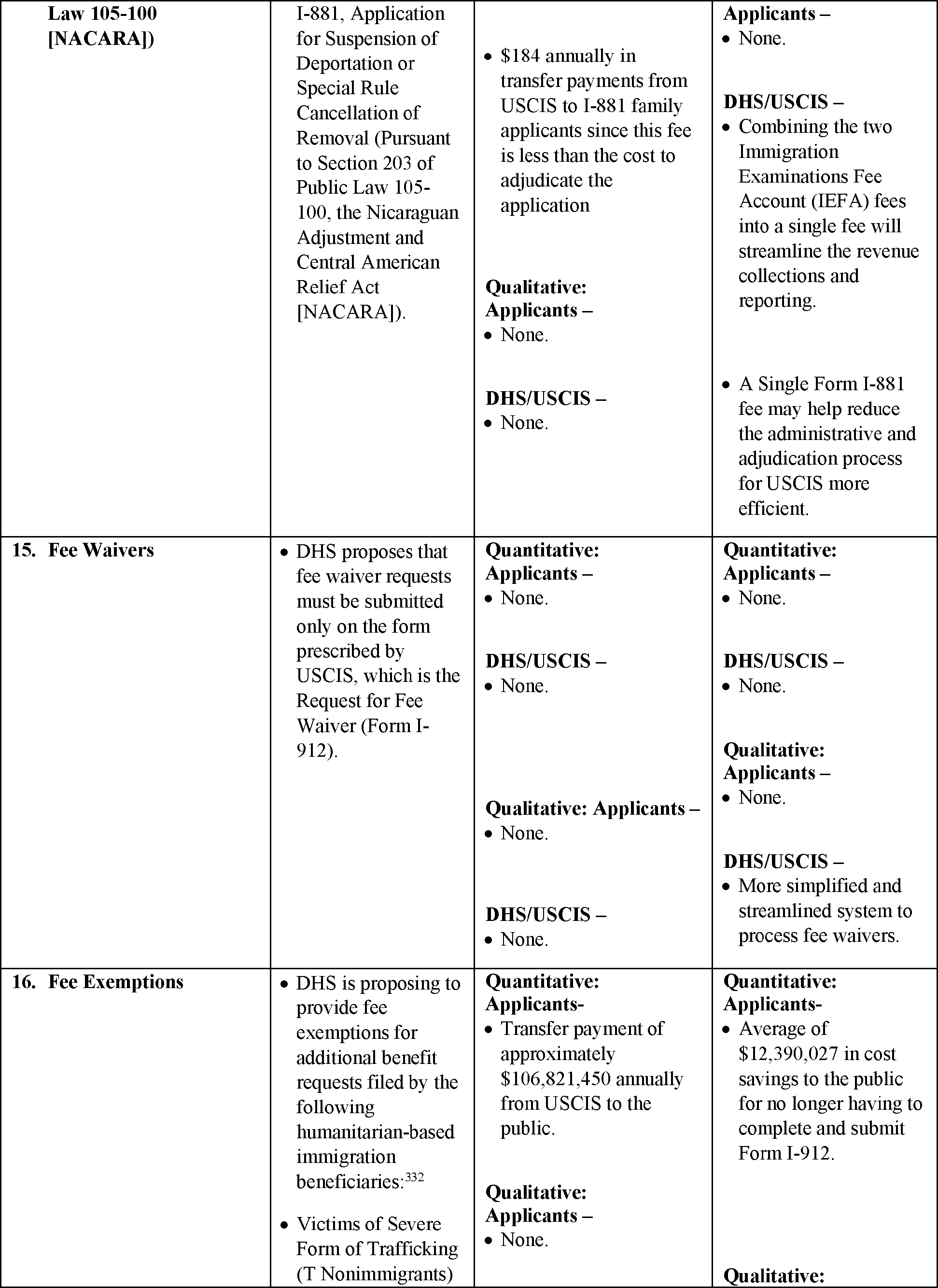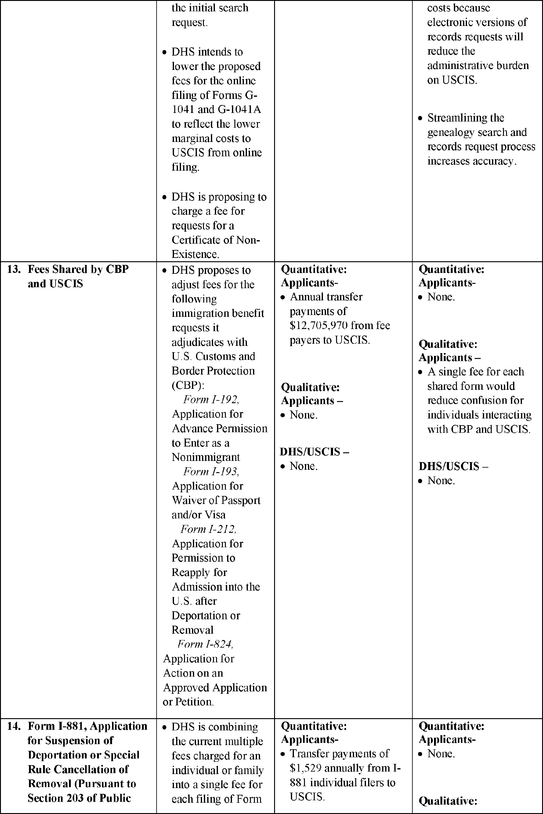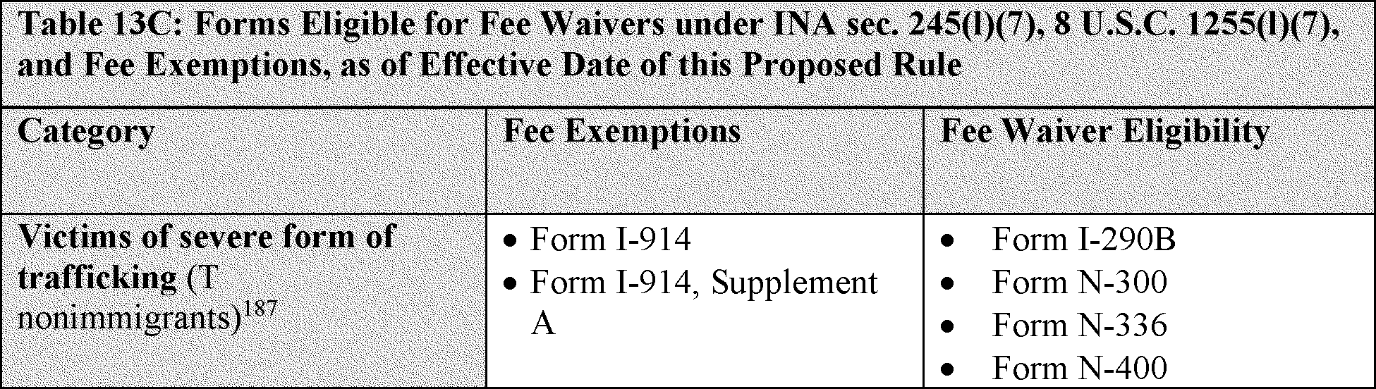 14. Summary of Proposed Fee Exemptions