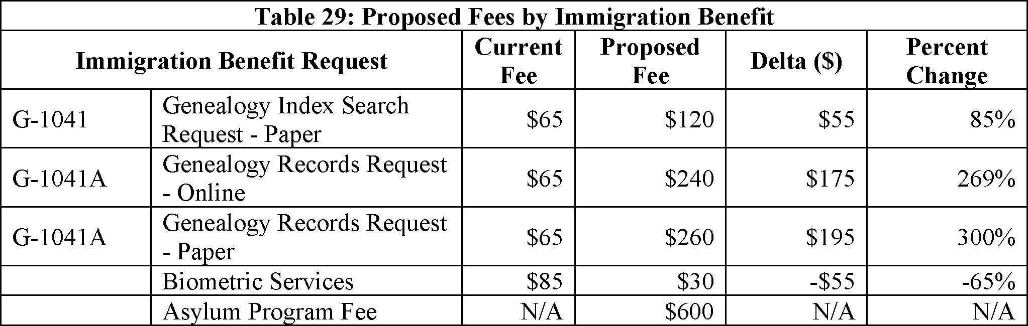 E. Changes to Biometric Services Fee