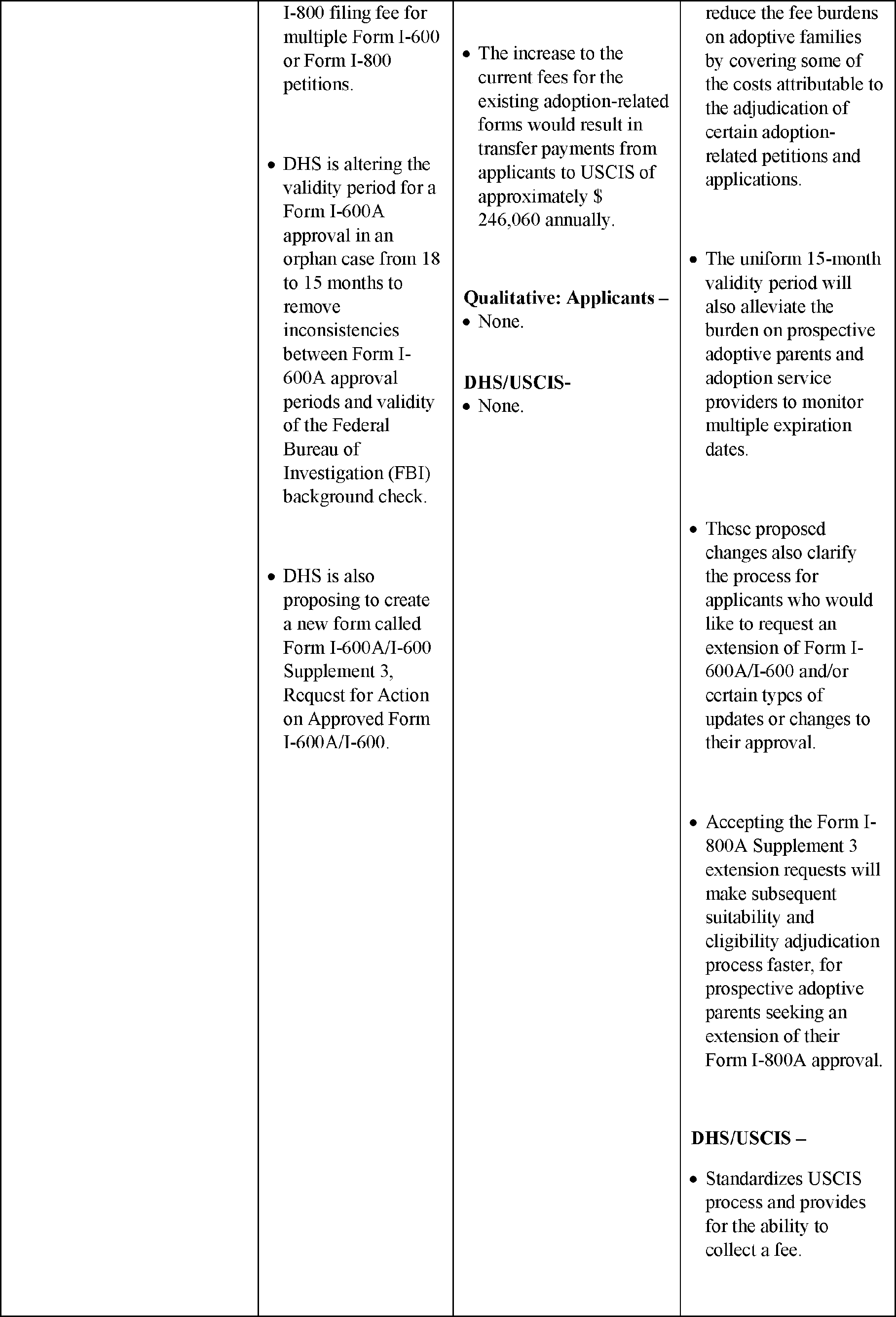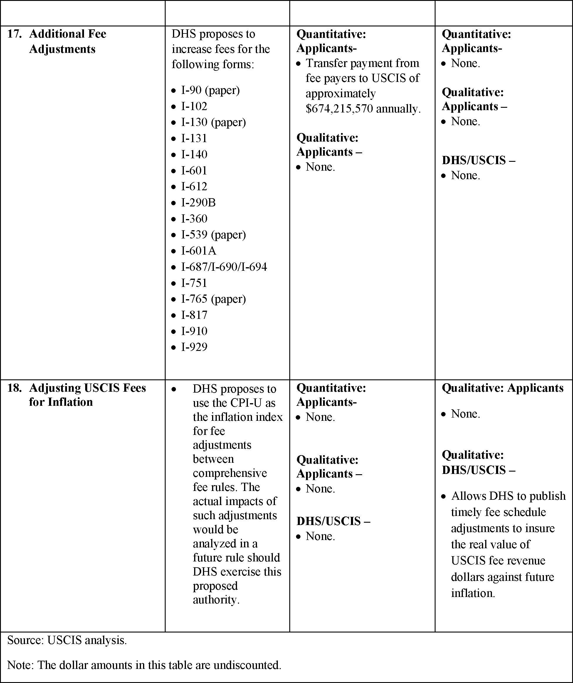 The Department of Homeland Security (DHS) proposes to adjust certain immigration and naturalization benefit request fees charged by U.S. Citizenship and Immigration Services (USCIS). USCIS conducted a comprehensive biennial fee review and determined that its costs have increased considerably since its previous fee adjustment due to expanded humanitarian programs, higher demand, increased processing times, and a need for more USCIS employees. USCIS cannot maintain adequate service levels with the effects of the budget cuts and its current level of spending without lasting impacts on operations. DHS proposes to adjust USCIS fees, add new fees for certain benefit requests, establish distinct fees for petitions for nonimmigrant workers, and limit the number of beneficiaries on certain forms. DHS is also proposing additional fee exemptions for certain humanitarian categories and changes to certain other immigration benefit request requirements. If DHS does not adjust USCIS fees it will not have the resources it needs to provide adequate service to applicants and petitioners or be able to keep pace with incoming benefit request workload, and USCIS processing times and backlogs will not improve. DHS intends for this rulemaking to provide the funding required for USCIS to improve service levels.