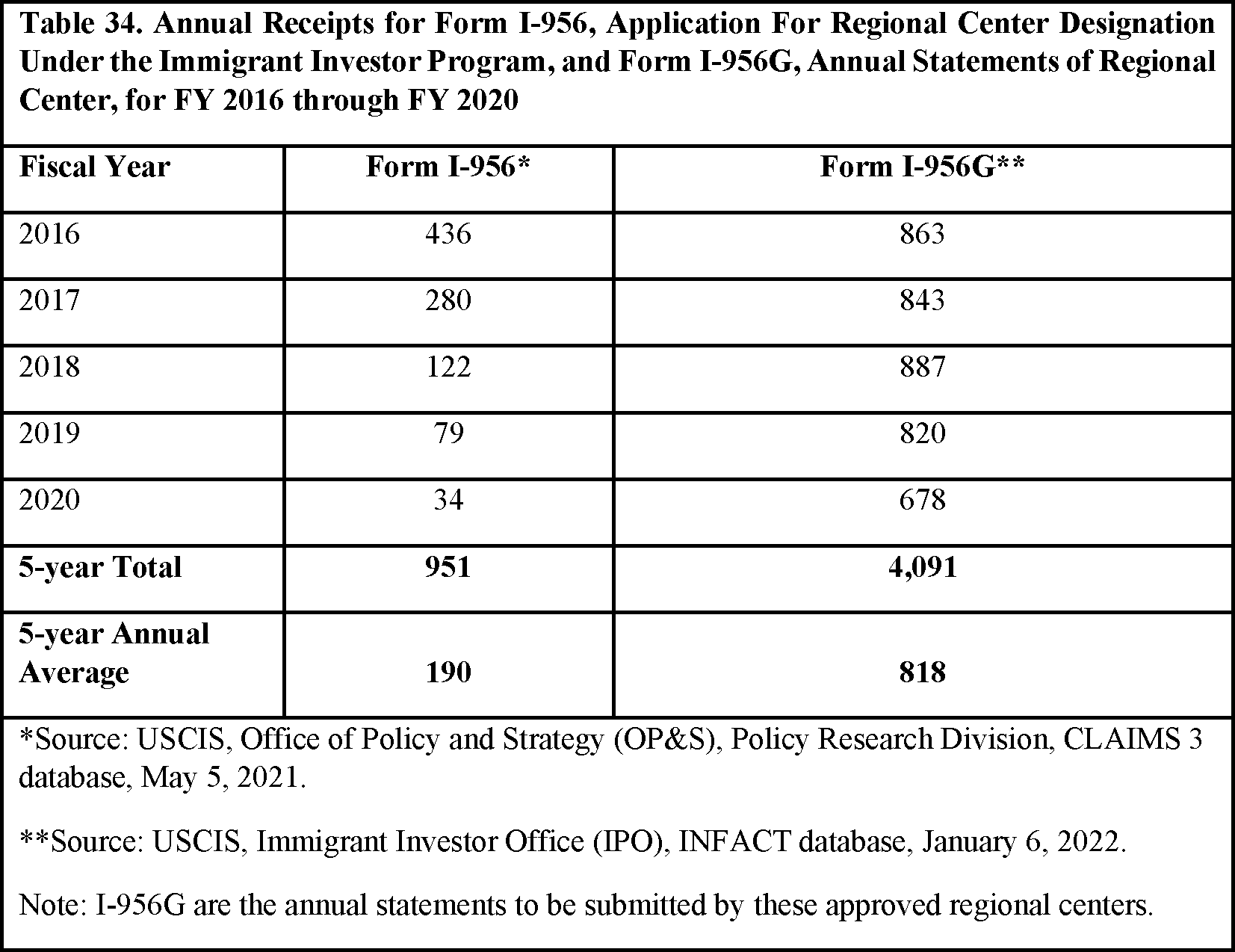 The Supplement to Form I-956G is used to certify a Regional Center's continued eligibility for the Regional Center designation through an annual certification. Each designated Regional Center entity must file a Form I-956G for each fiscal year within 90 days after the end of the fiscal year of the calendar year in which the fiscal year ended. DHS has also created Forms I-956H, Bona Fides of Persons Involved with Regional Center Program, and I-956K Registration for Direct and Third-Party Promoters, for the new EB-5 program. DHS proposes no fee for those forms in this proposed rule.