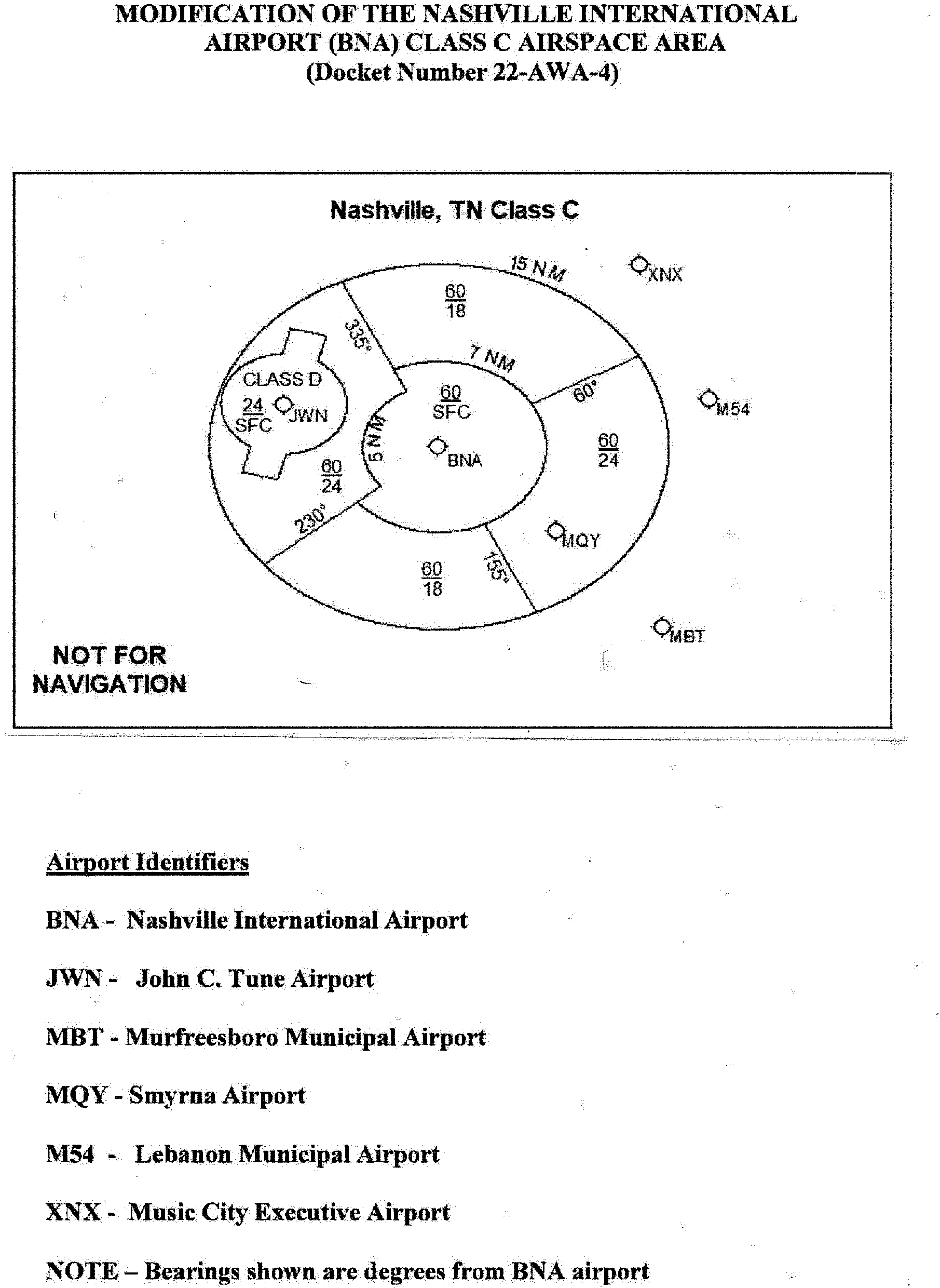 “Amendment of the Nashville International Airport Class C Airspace; Nashville, TN; and the John C. Tune Airport Class D Airspace; Nashville, TN,” thefederalregister.org (June 6, 2023), https://thefederalregister.org/documents/2023-11909/amendment-of-the-nashville-international-airport-class-c-airspace-nashville-tn-and-the-john-c-tune-airport-class-d-airsp.