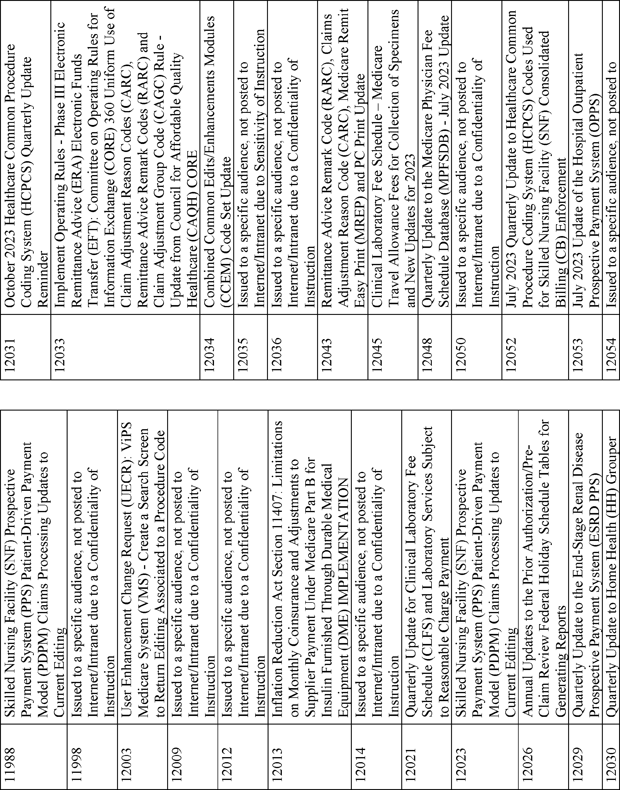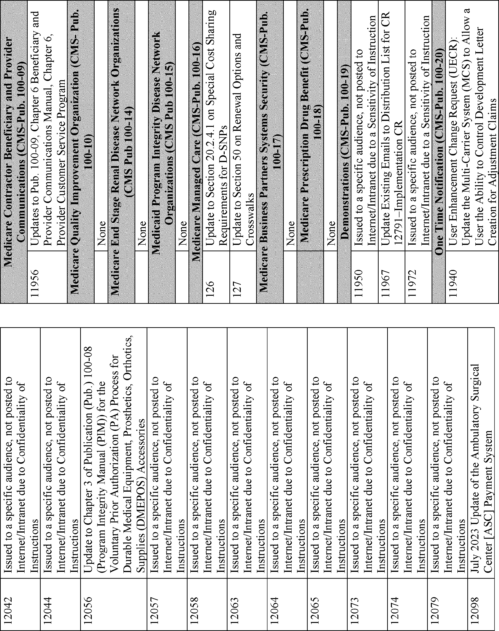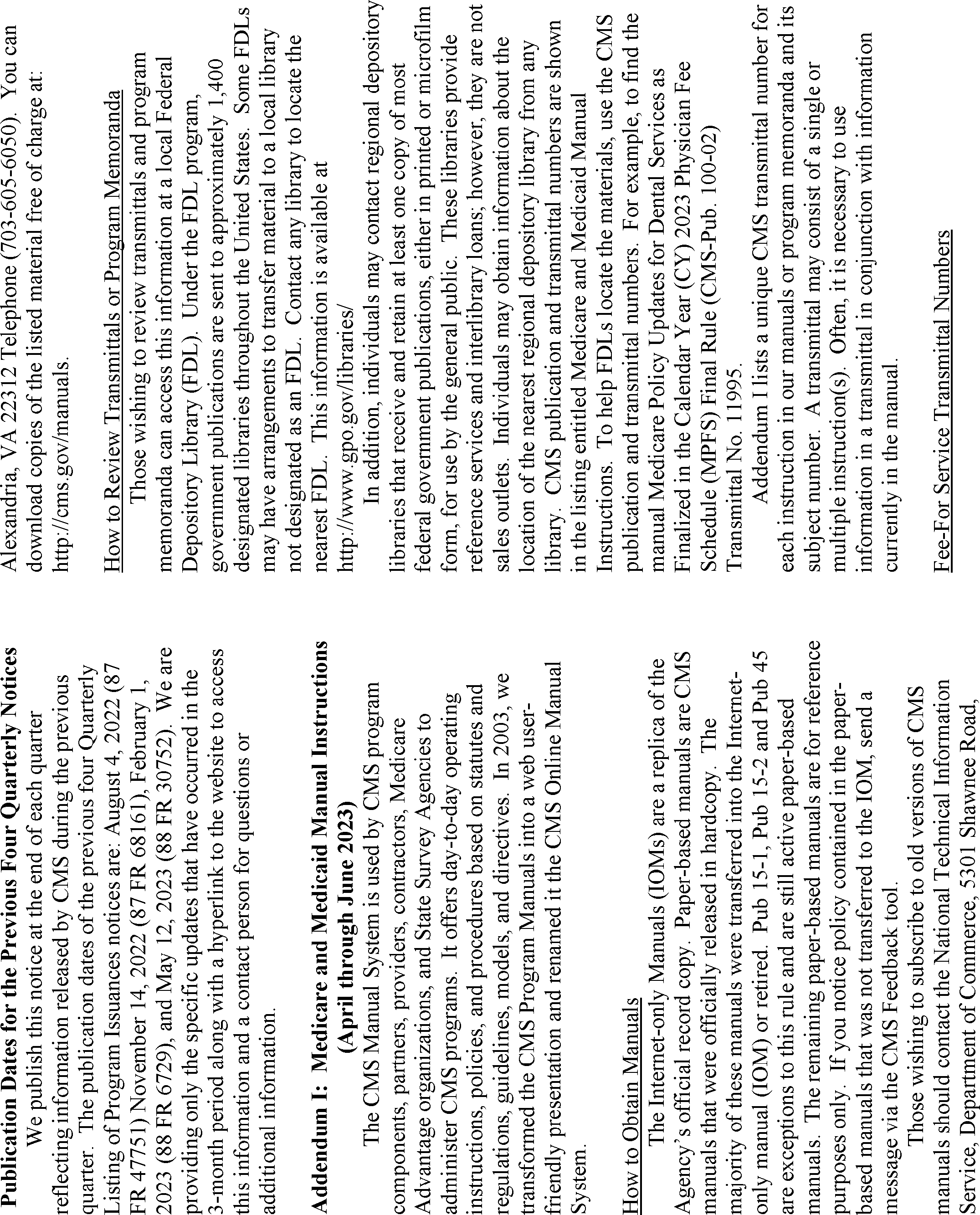 This quarterly notice lists CMS manual instructions, substantive and interpretive regulations, and other Federal Register notices that were published in the 3-month period, relating to the Medicare and Medicaid programs and other programs administered by CMS.