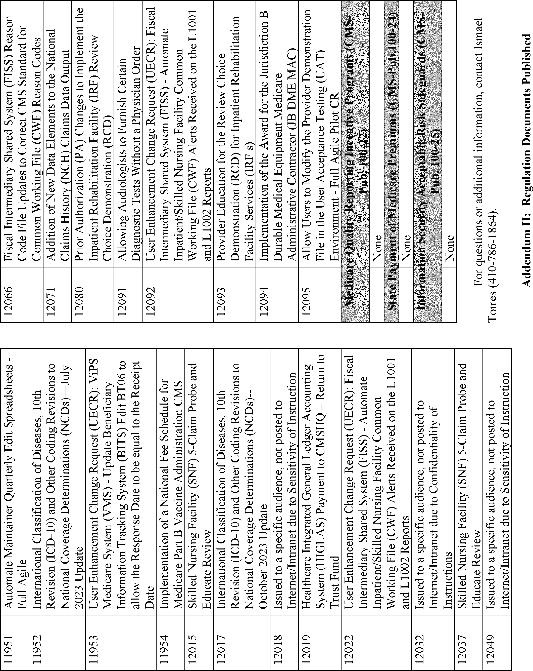 | II Regulation Documents Published in the Federal Register | Terri Plumb | (410) 786-4481 |