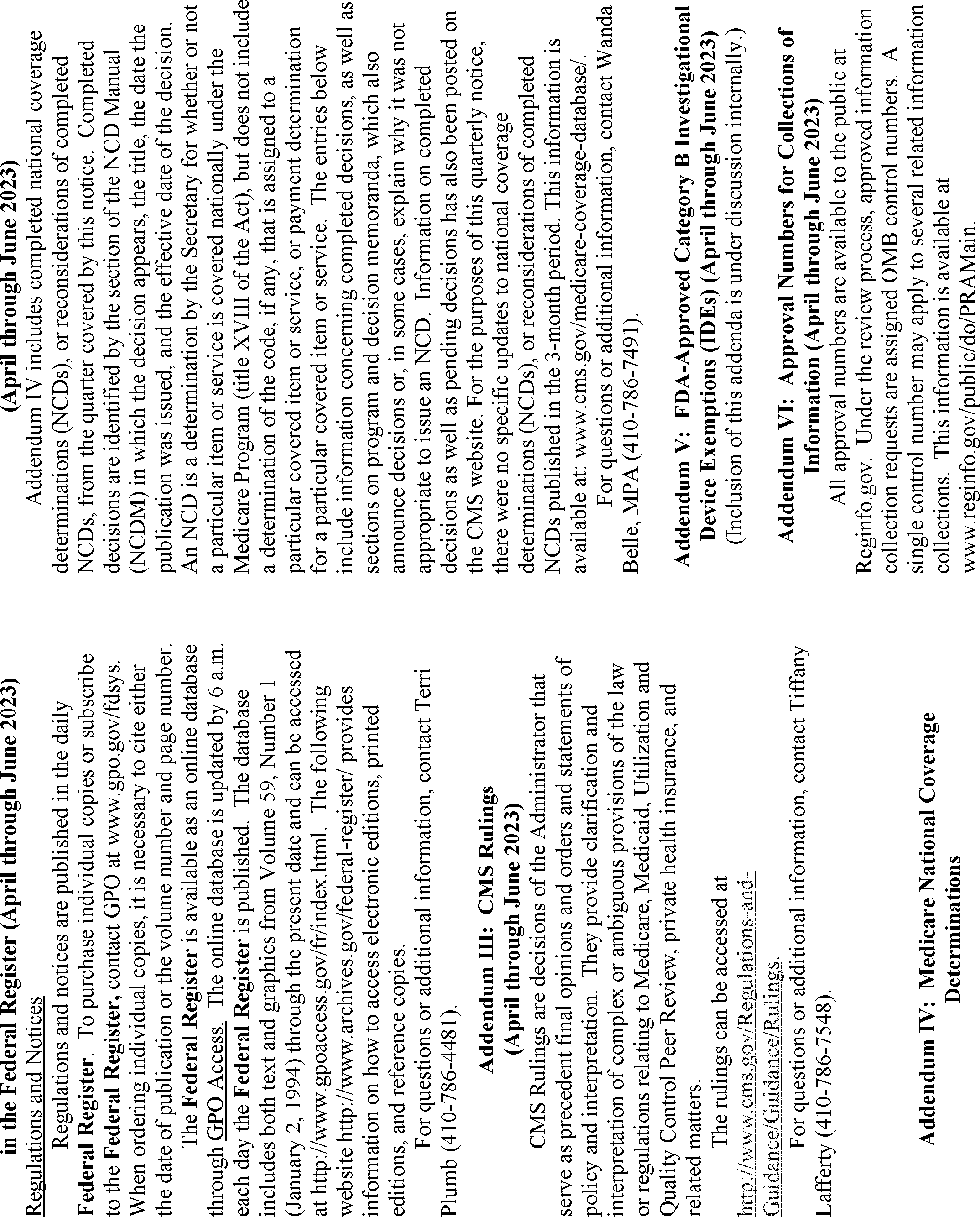 | IV Medicare National Coverage Determinations | Wanda Belle, MPA | (410) 786-7491 |