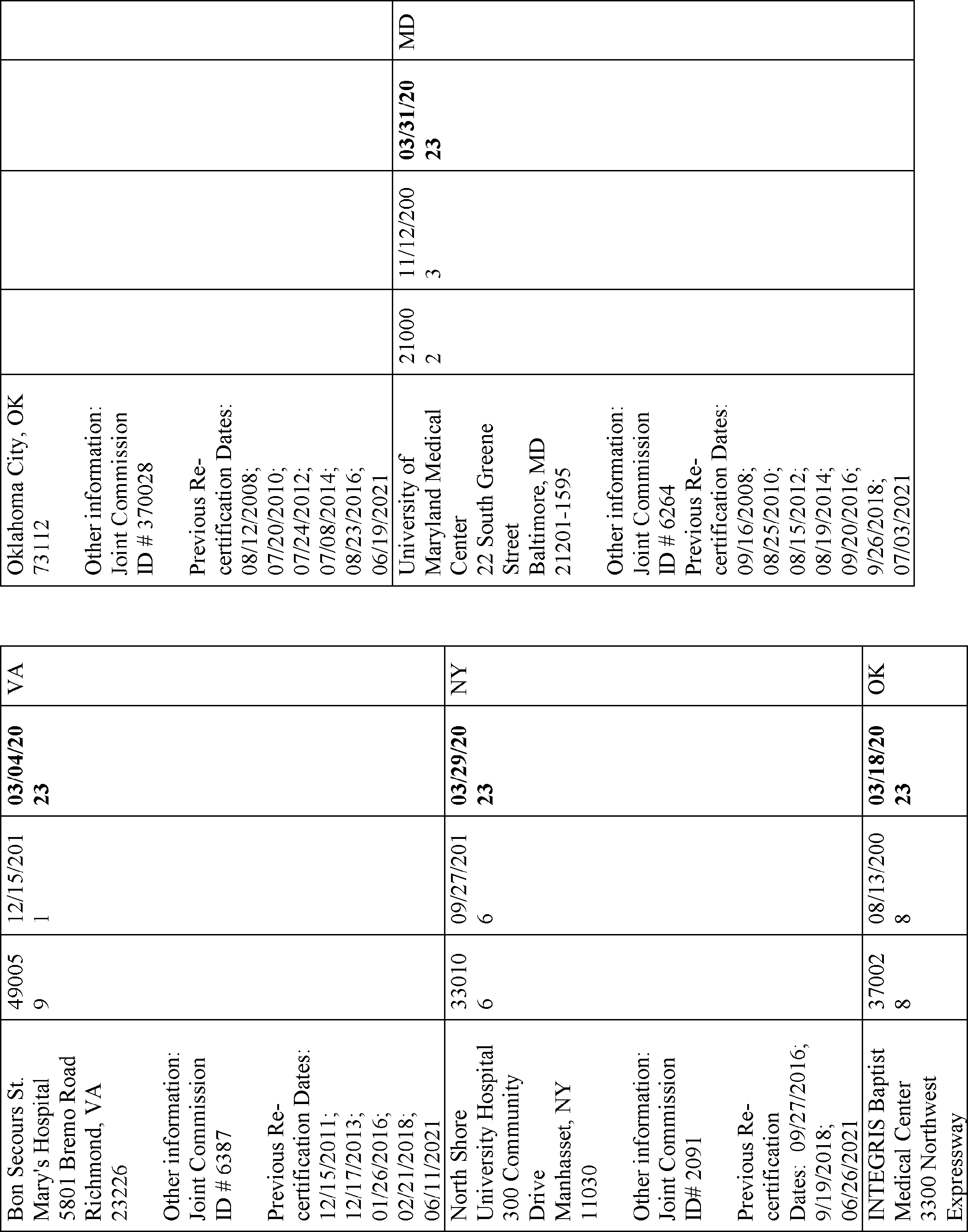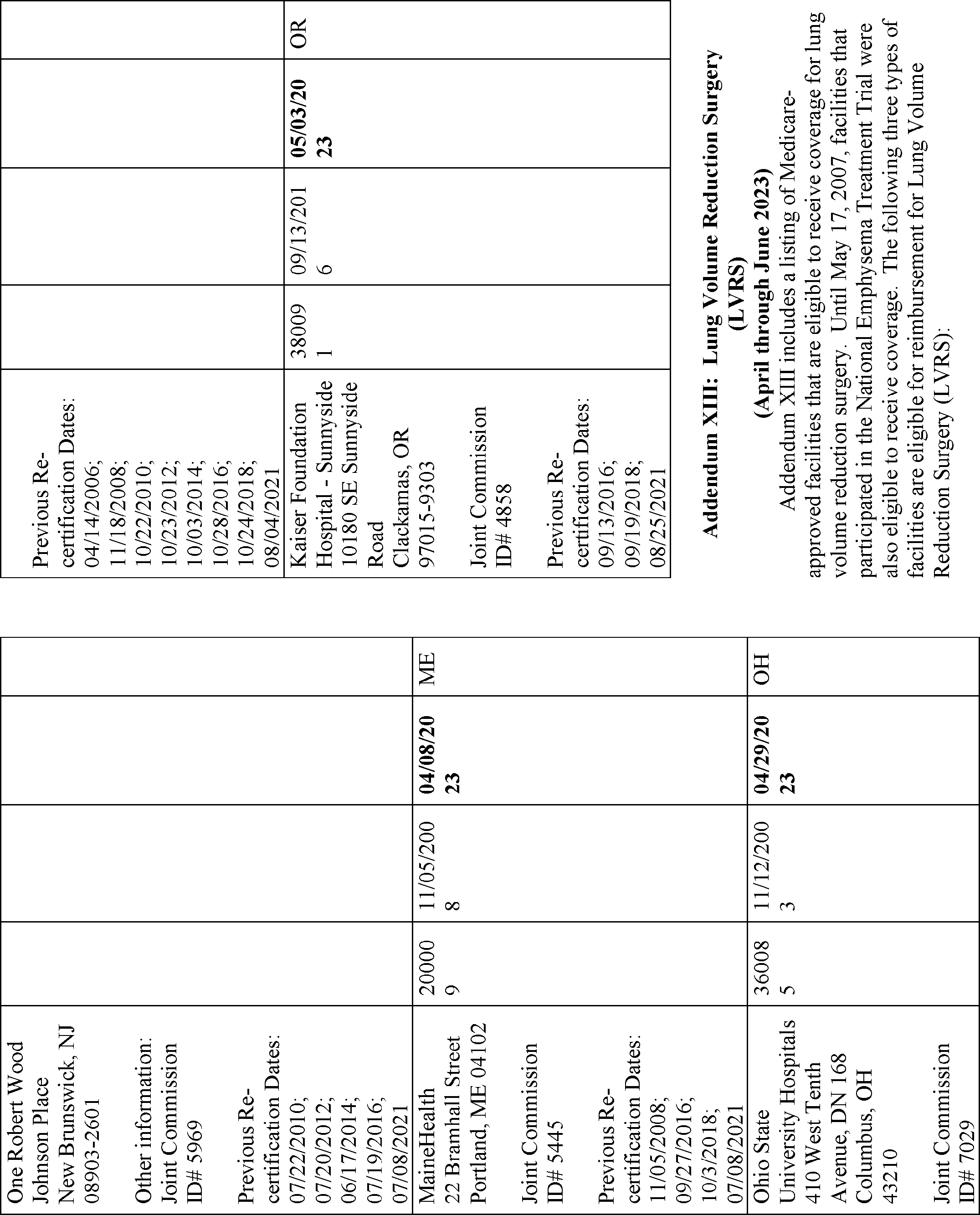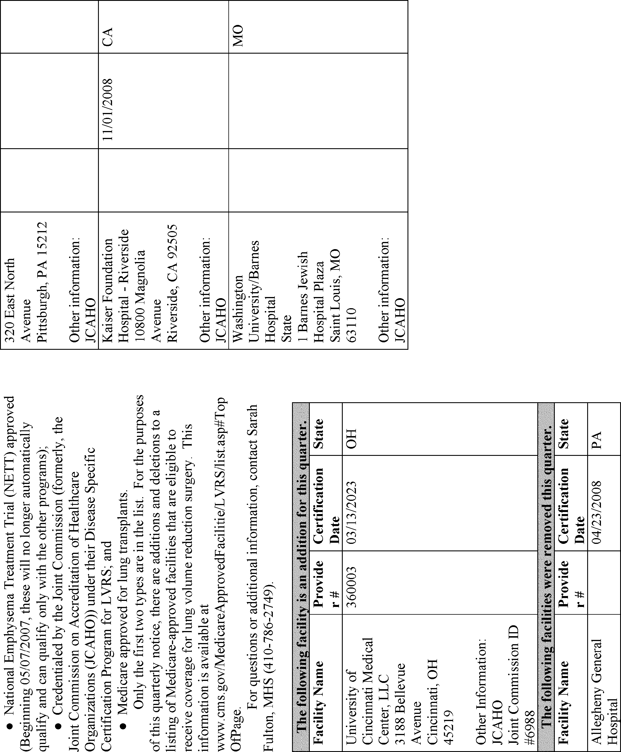 | XIII Medicare-Approved Lung Volume Reduction Surgery Facilities | Sarah Fulton, MHS | (410) 786-2749 |
