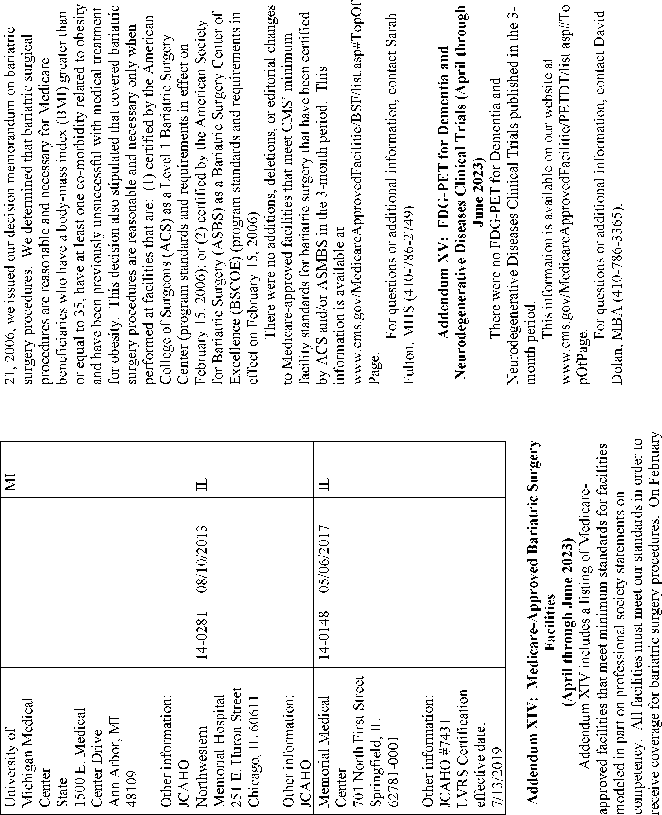 | XIV Medicare-Approved Bariatric Surgery Facilities | Sarah Fulton, MHS | (410) 786-2749 |