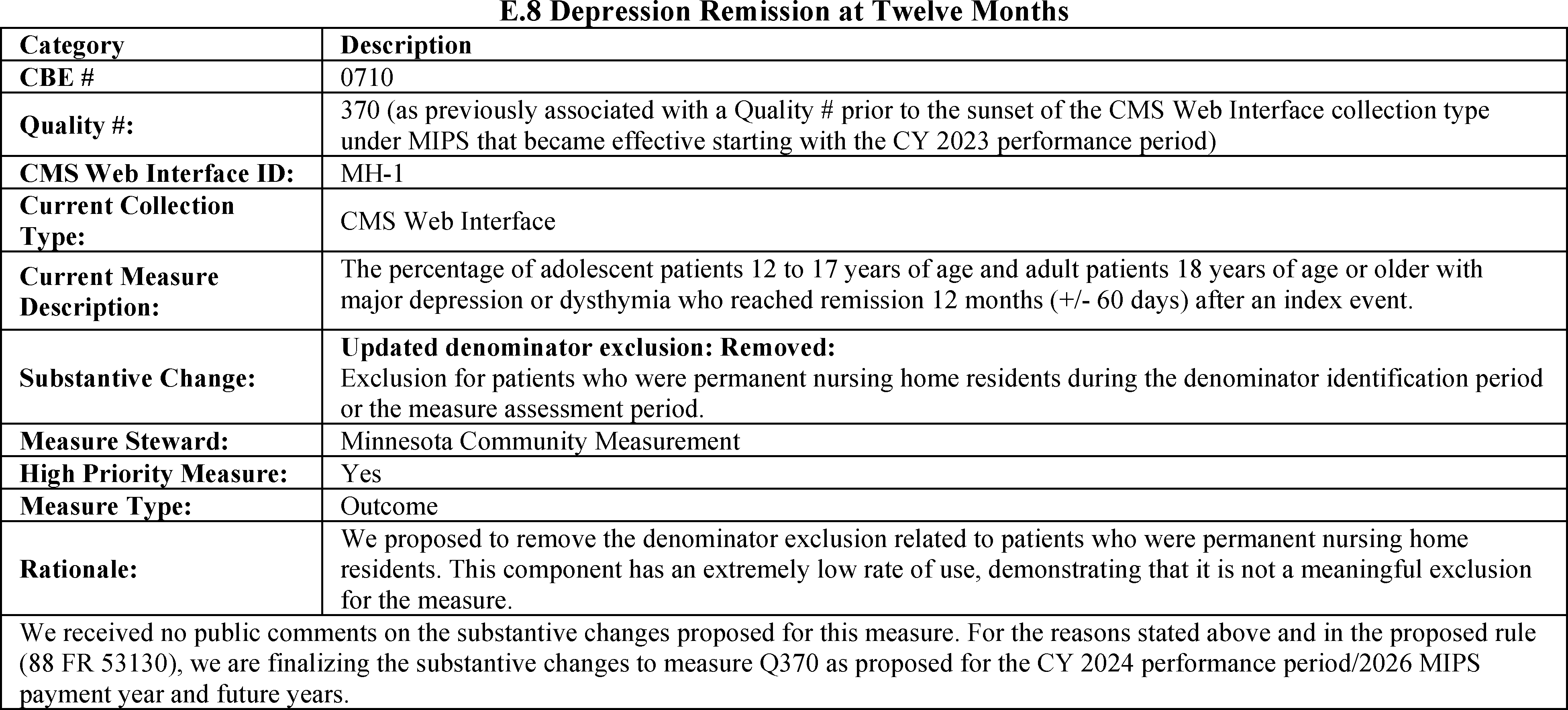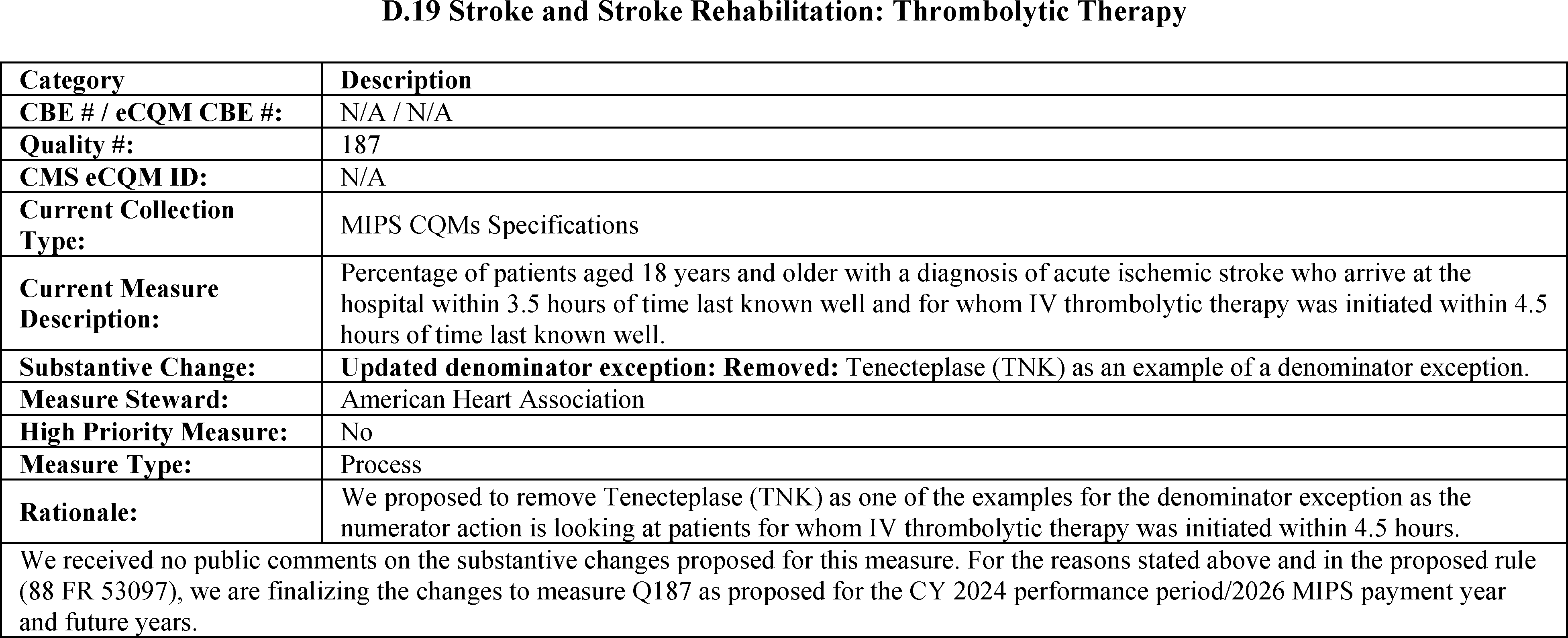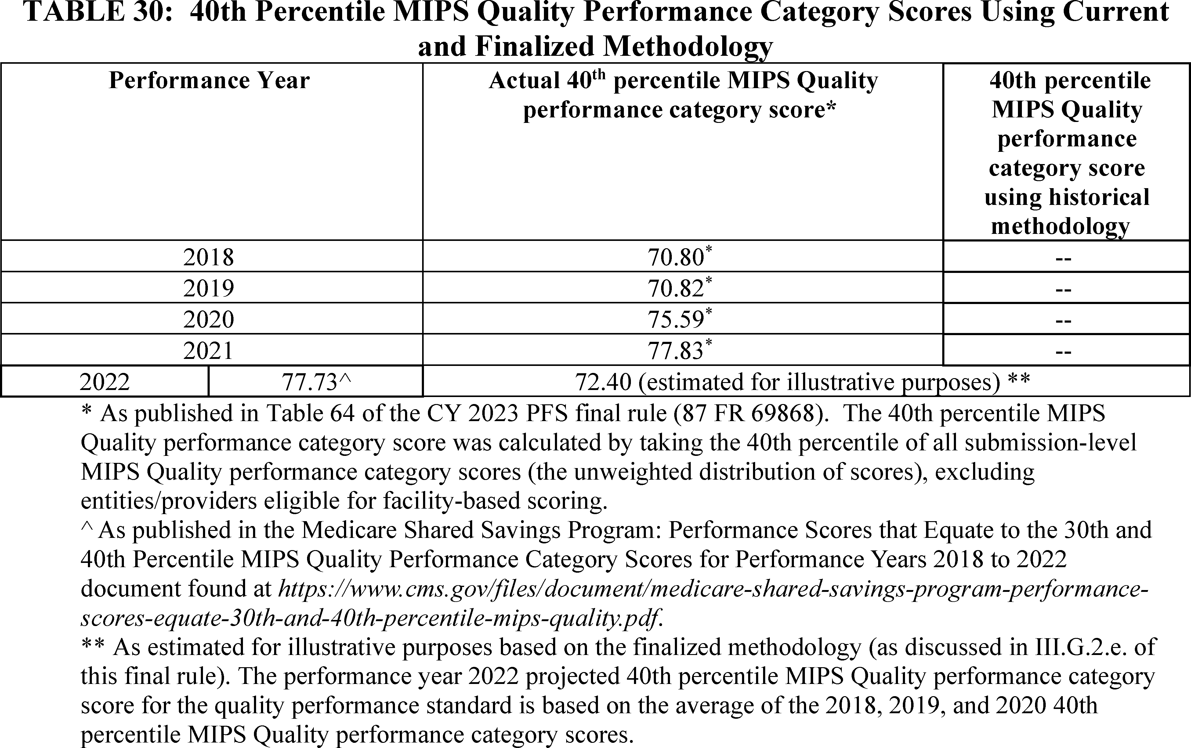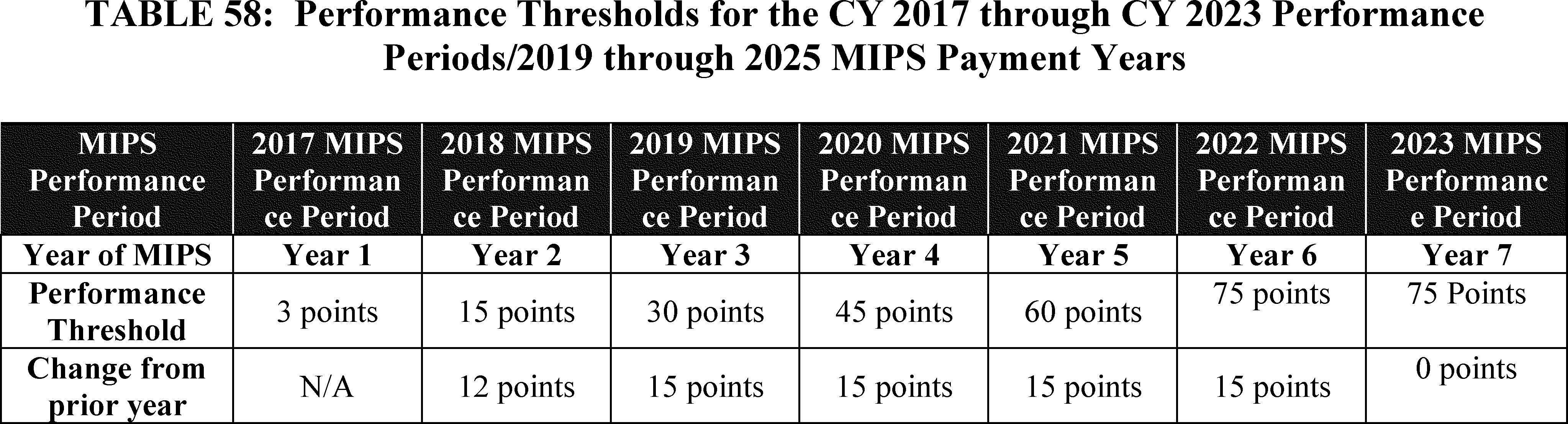 Section 1848(q)(6)(D)(iv) of the Act is a special rule applicable to establishing the performance threshold for the third, fourth, and fifth years of MIPS. As we are entering the eighth year of MIPS, the requirements of section 1848(q)(6)(D)(iv) of the Act no longer apply.