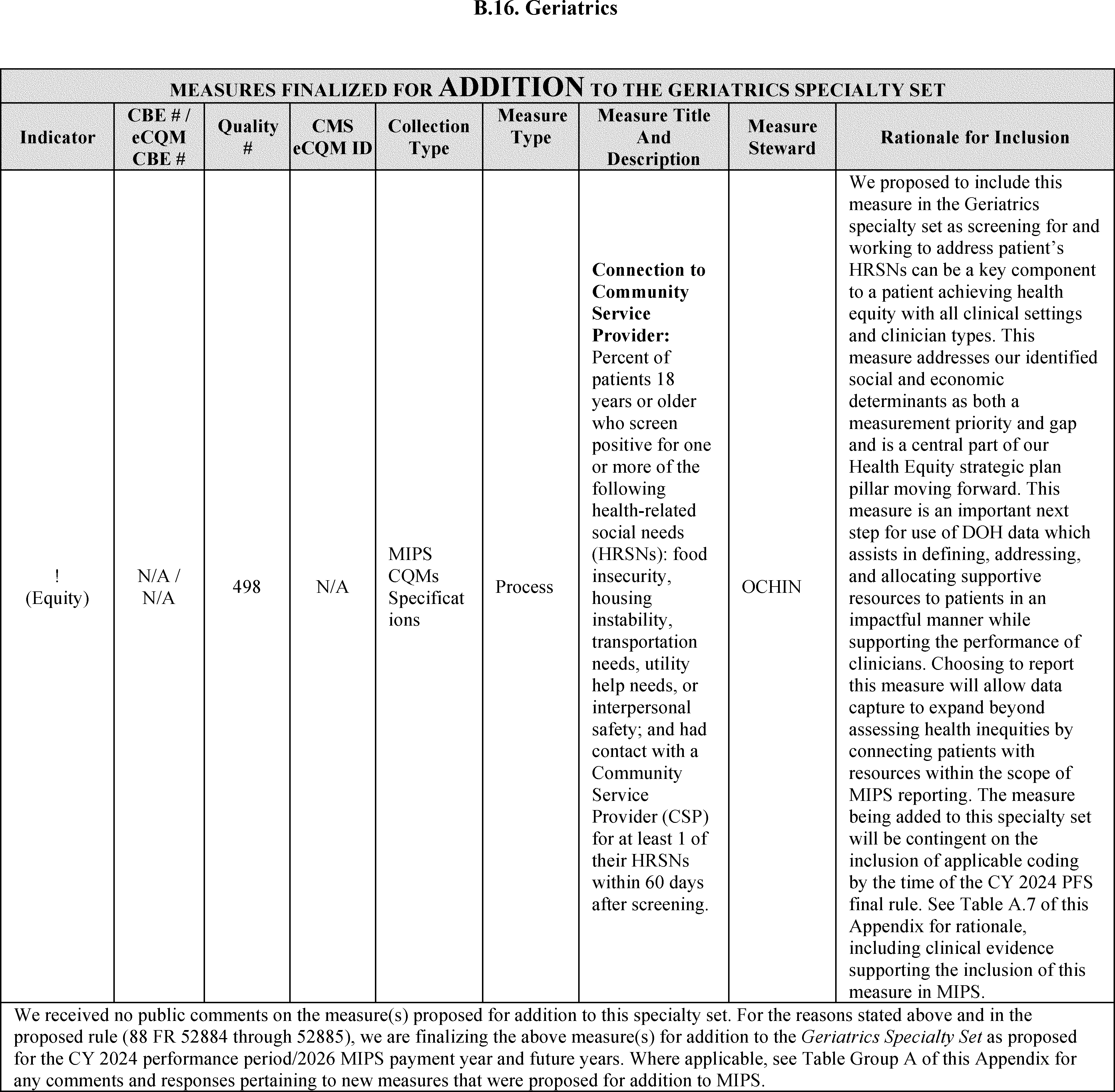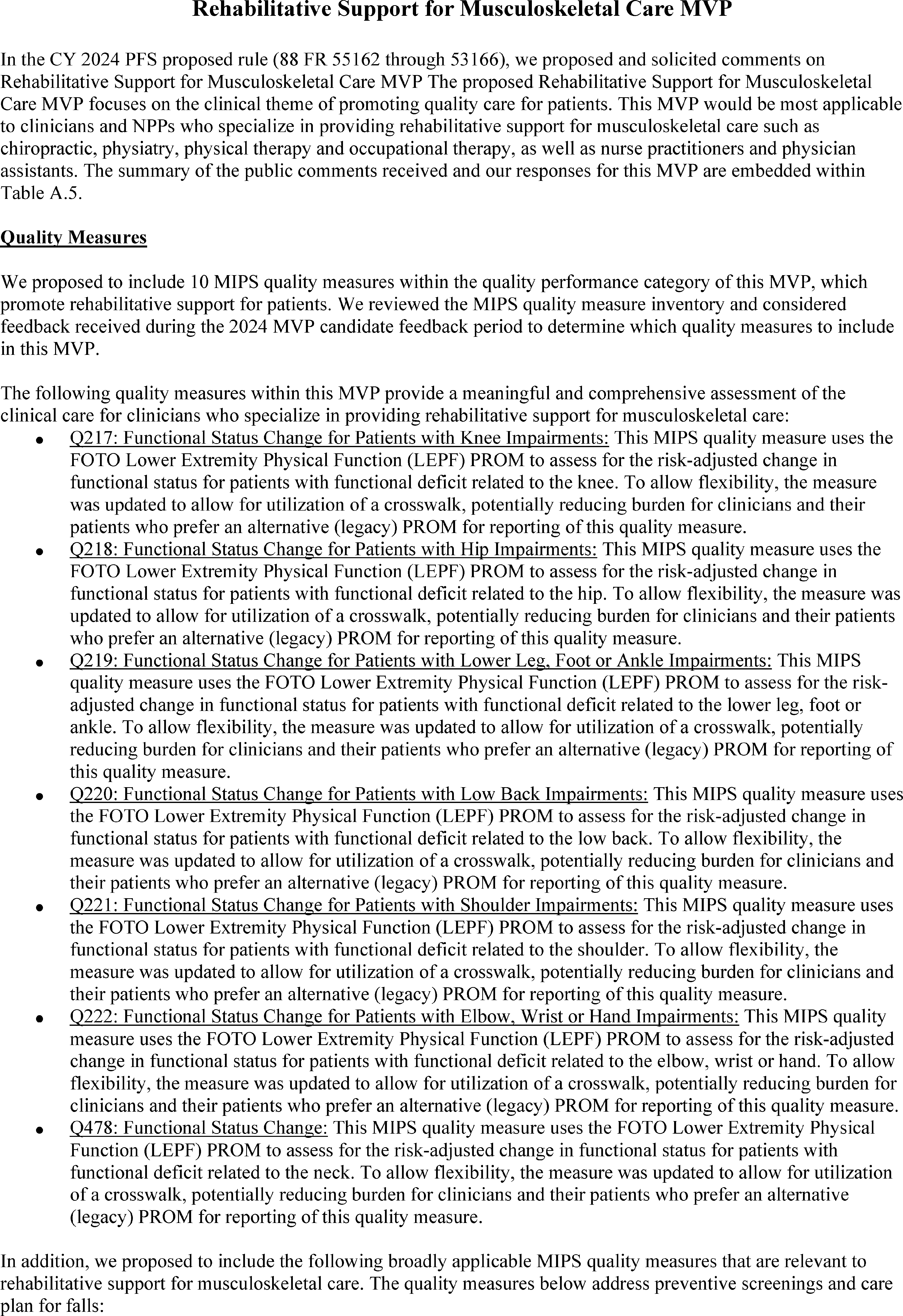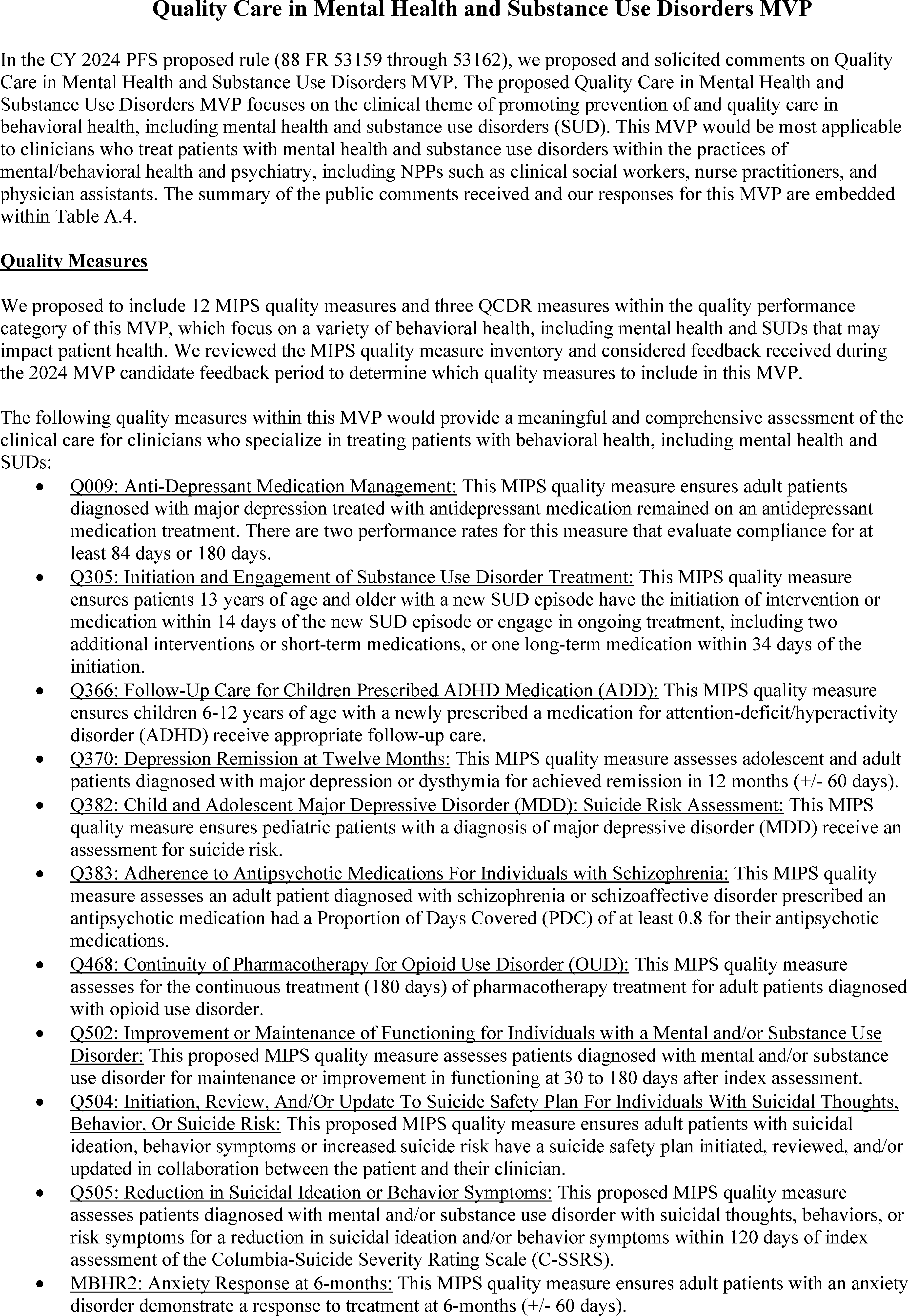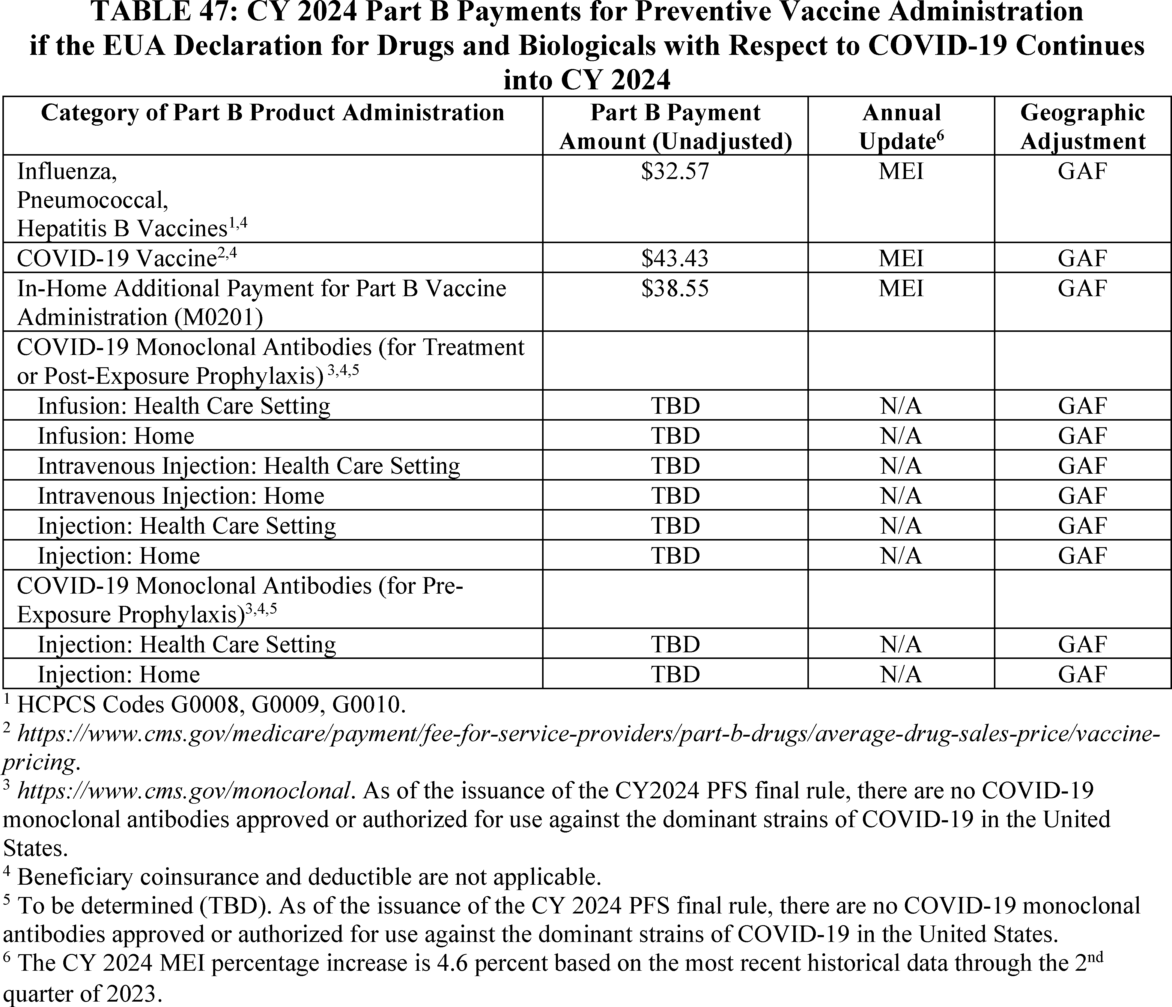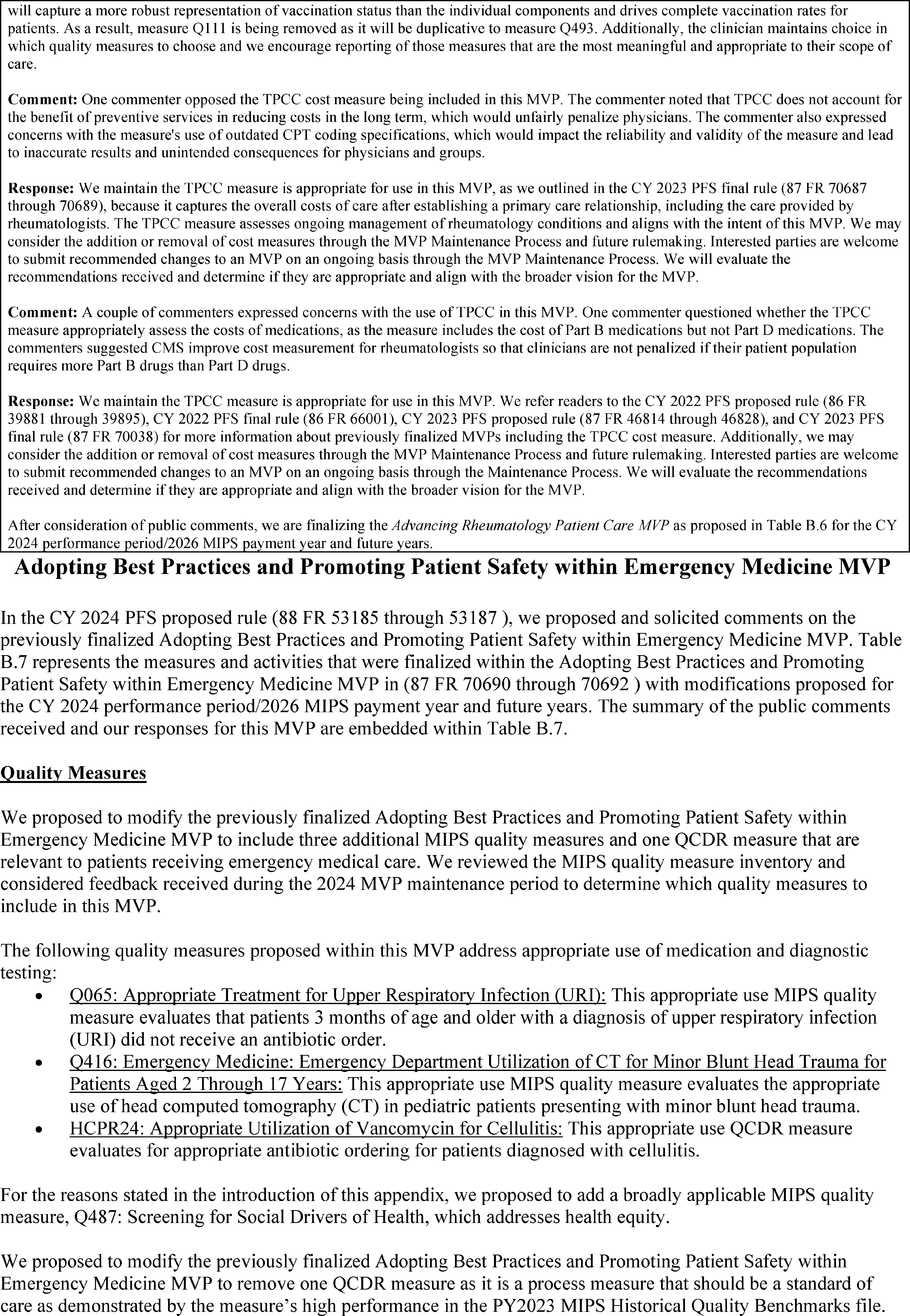 “Medicare and Medicaid Programs; CY 2024 Payment Policies Under the Physician Fee Schedule and Other Changes to Part B Payment and Coverage Policies; Medicare Shared Savings Program Requirements; Medicare Advantage; Medicare and Medicaid Provider and Supplier Enrollment Policies; and Basic Health Program,” thefederalregister.org (November 16, 2023), https://thefederalregister.org/documents/2023-24184/medicare-and-medicaid-programs-cy-2024-payment-policies-under-the-physician-fee-schedule-and-other-changes-to-part-b-pay.