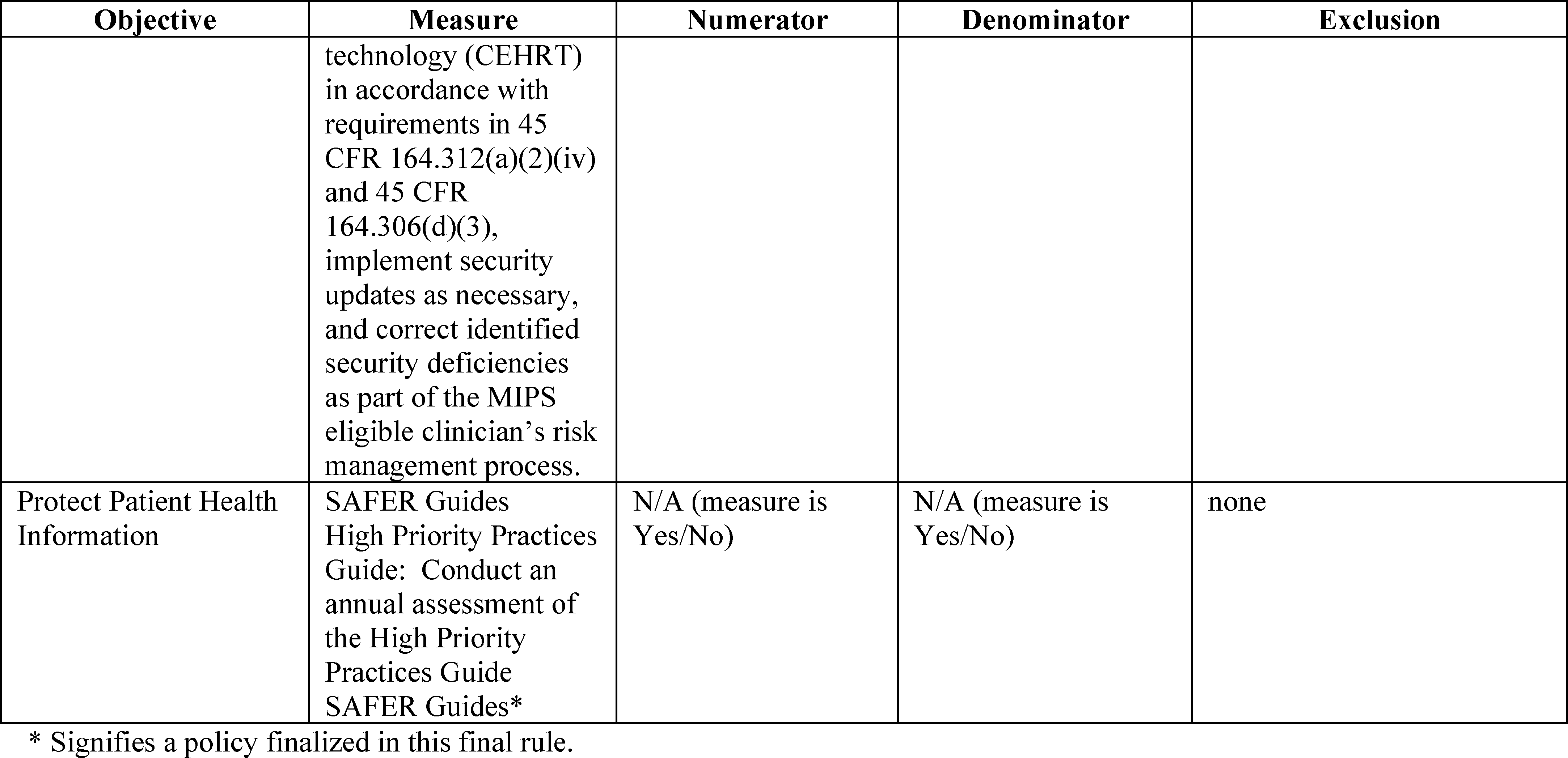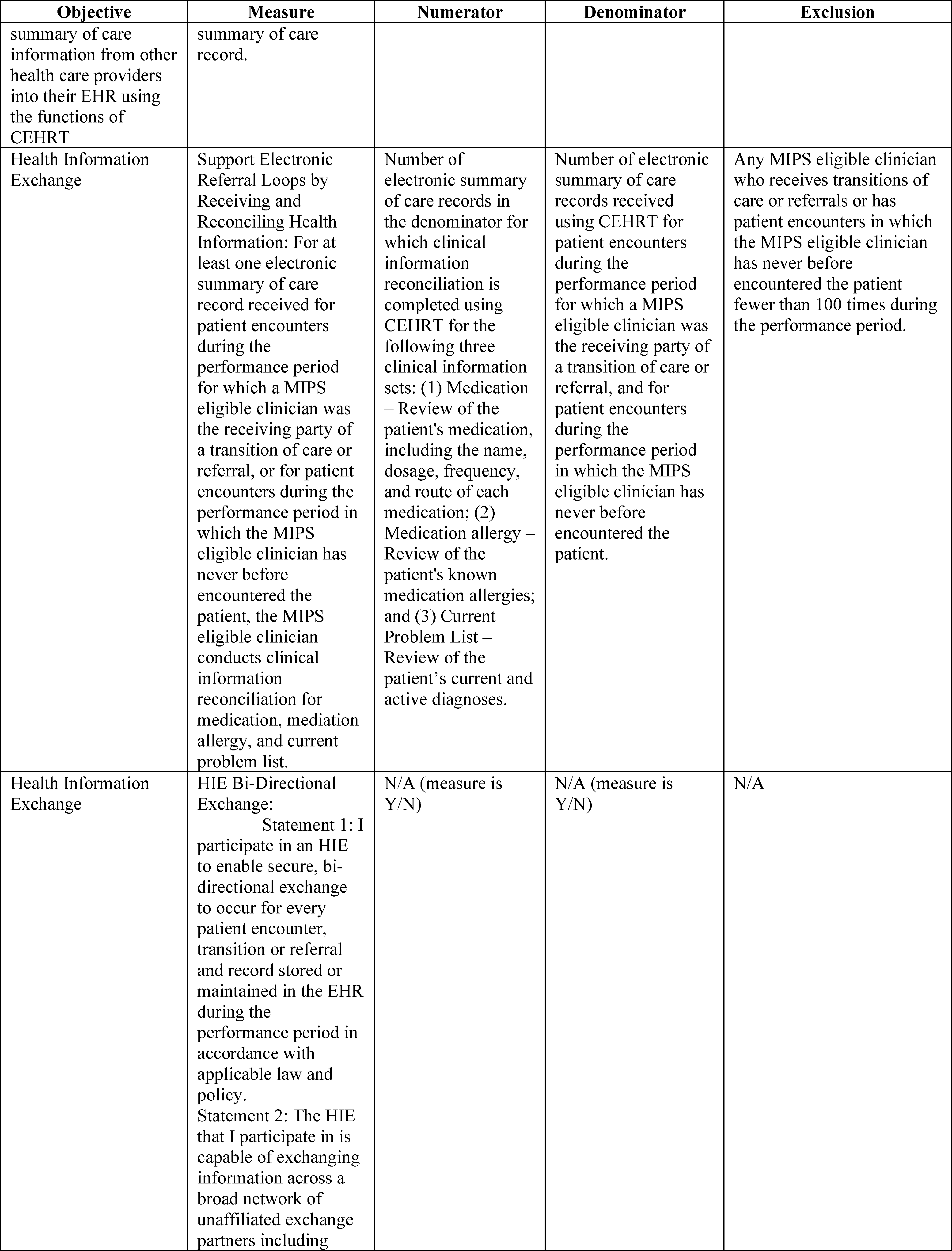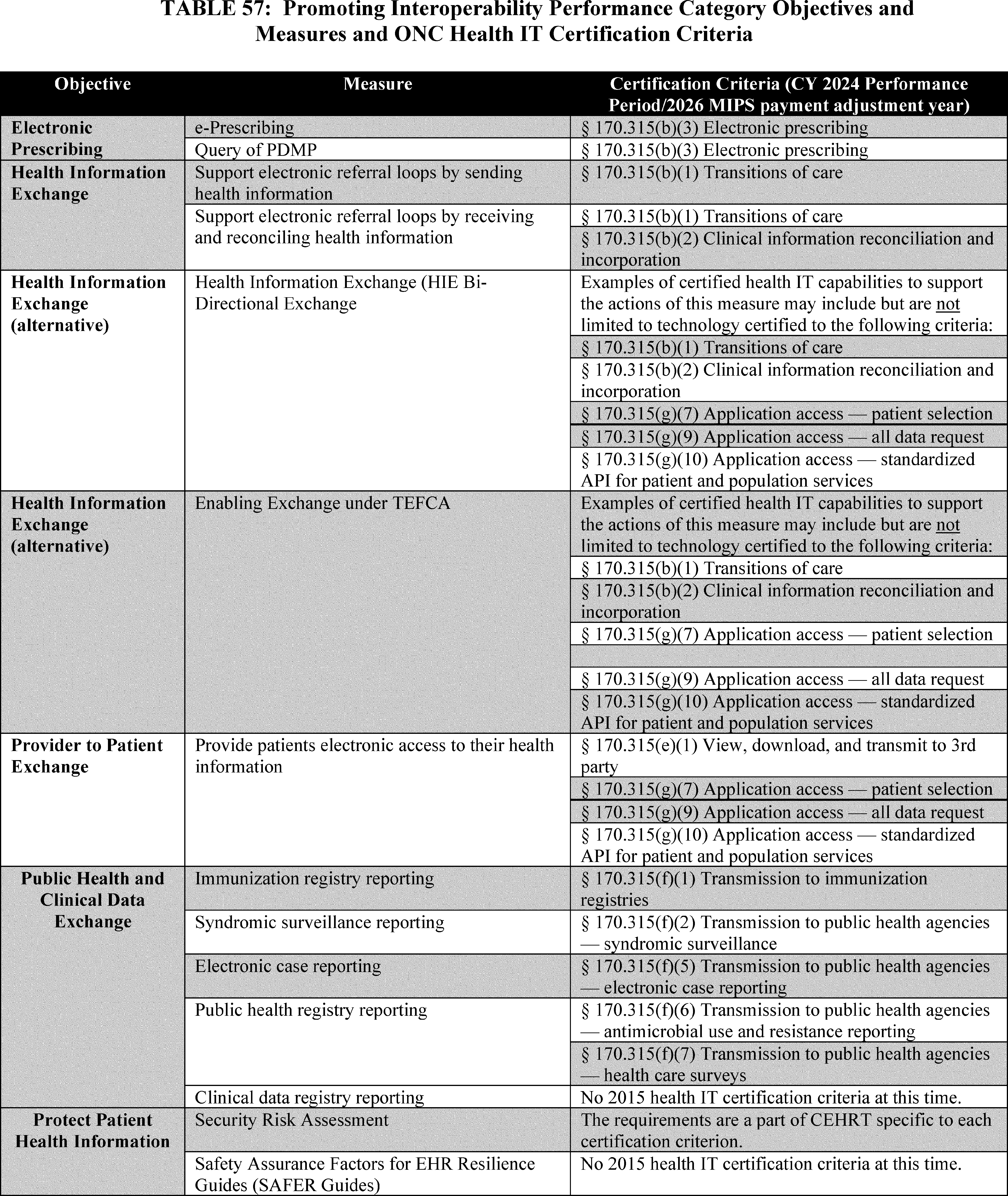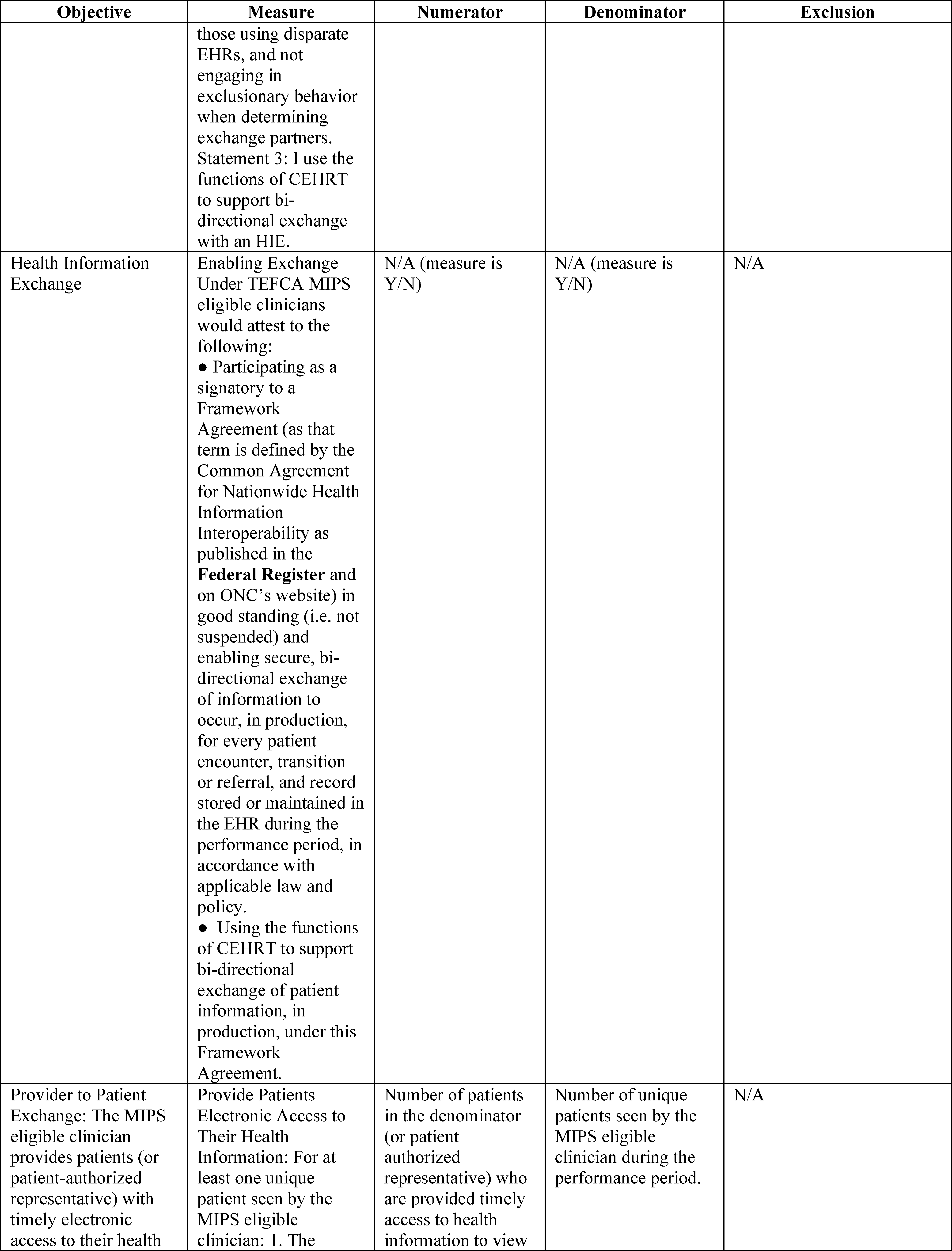 Section 1848(q)(2)(A)(iv) and (B)(iv) of the Act requires that the Secretary assess MIPS eligible clinicians' performance with respect to the “meaningful use of certified EHR technology” in accordance with the requirements set forth at section 1848(o)(2) of the Act as one of the four performance categories for MIPS. In the CY 2017 Quality Payment Program final rule, we named this required MIPS performance category the “advancing care information performance category.” (81 FR 77010). We have since renamed this MIPS performance category, requiring the meaningful use of CEHRT, as the “Promoting Interoperability performance category.” (85 FR 84820 through 84821).