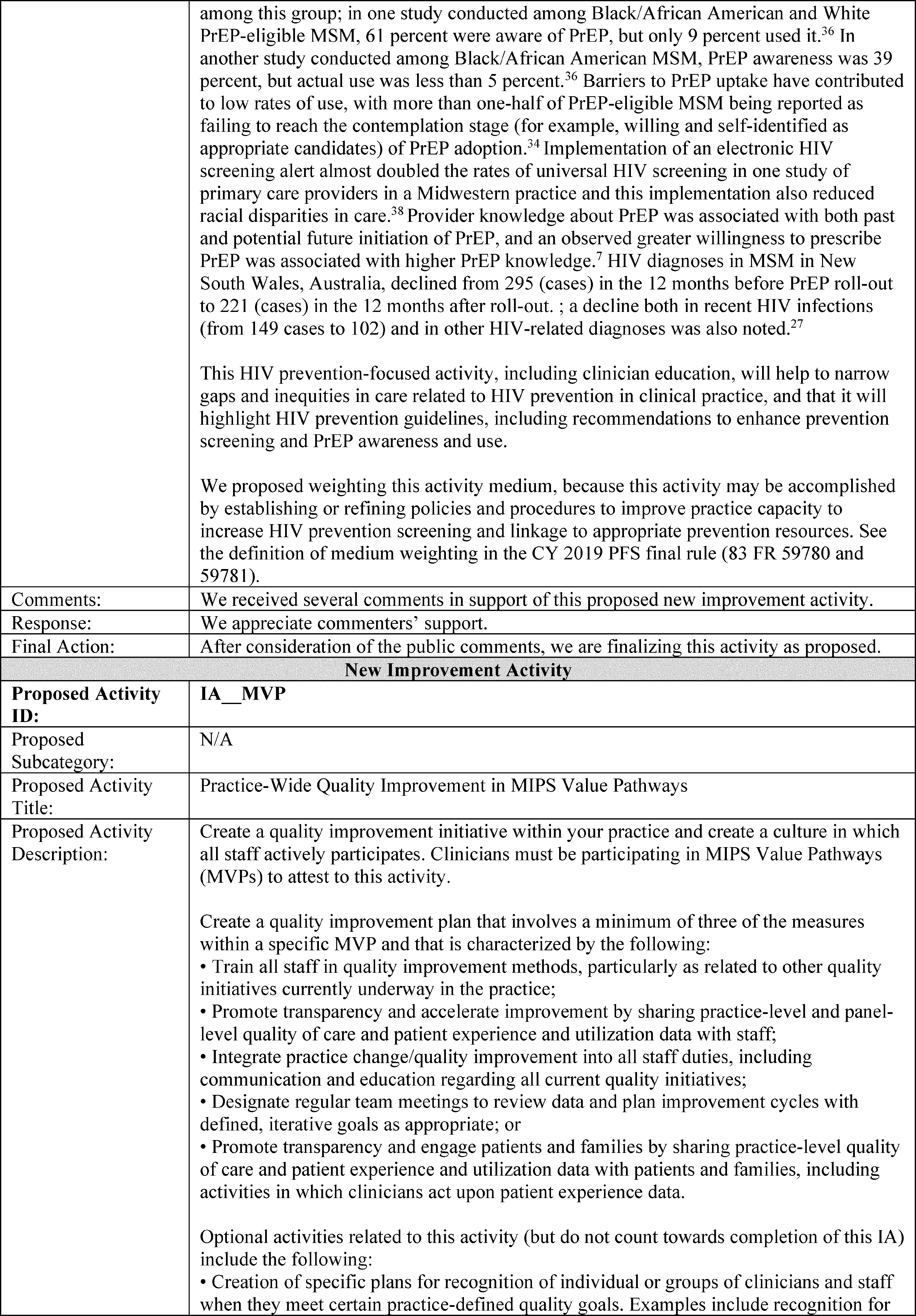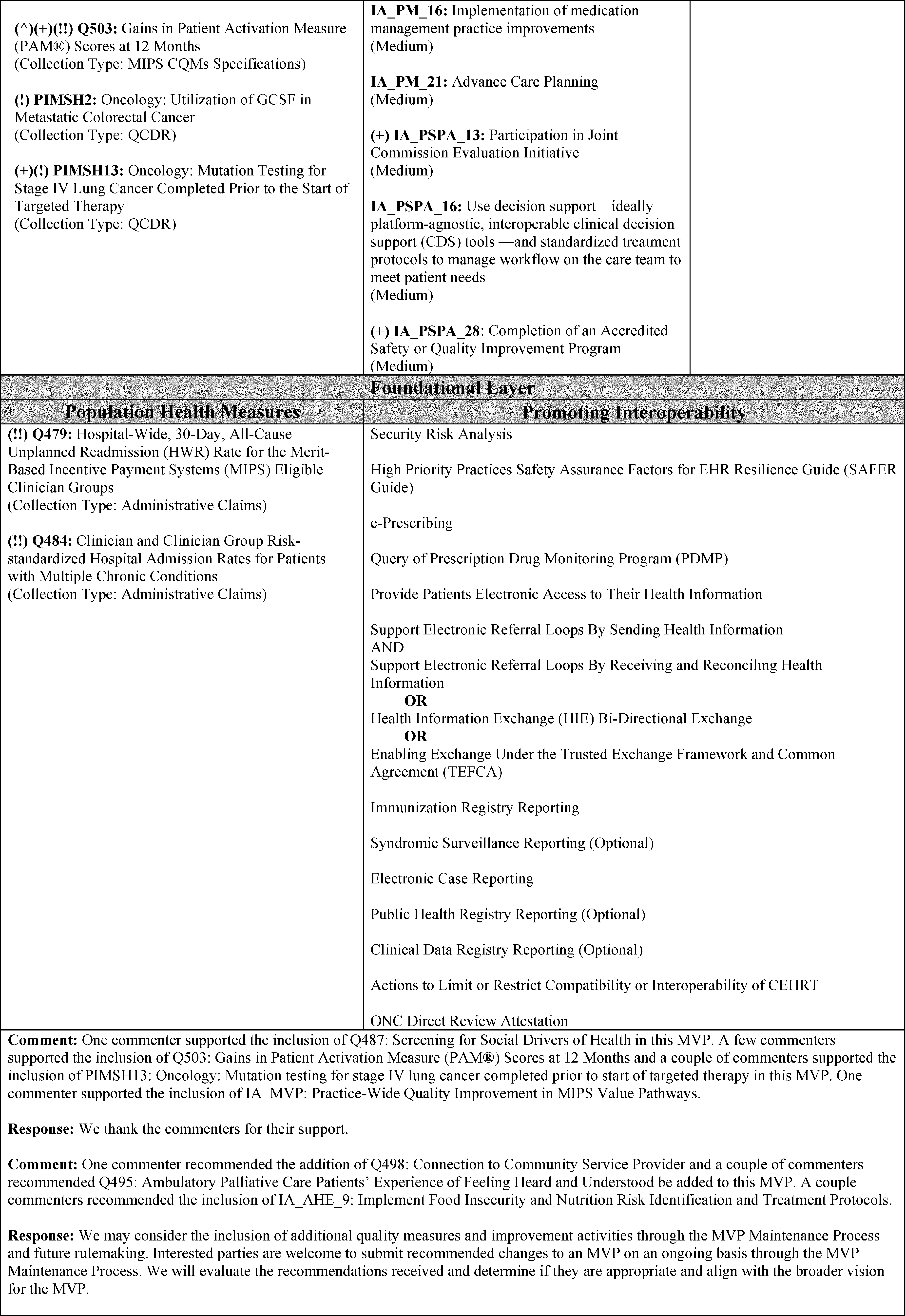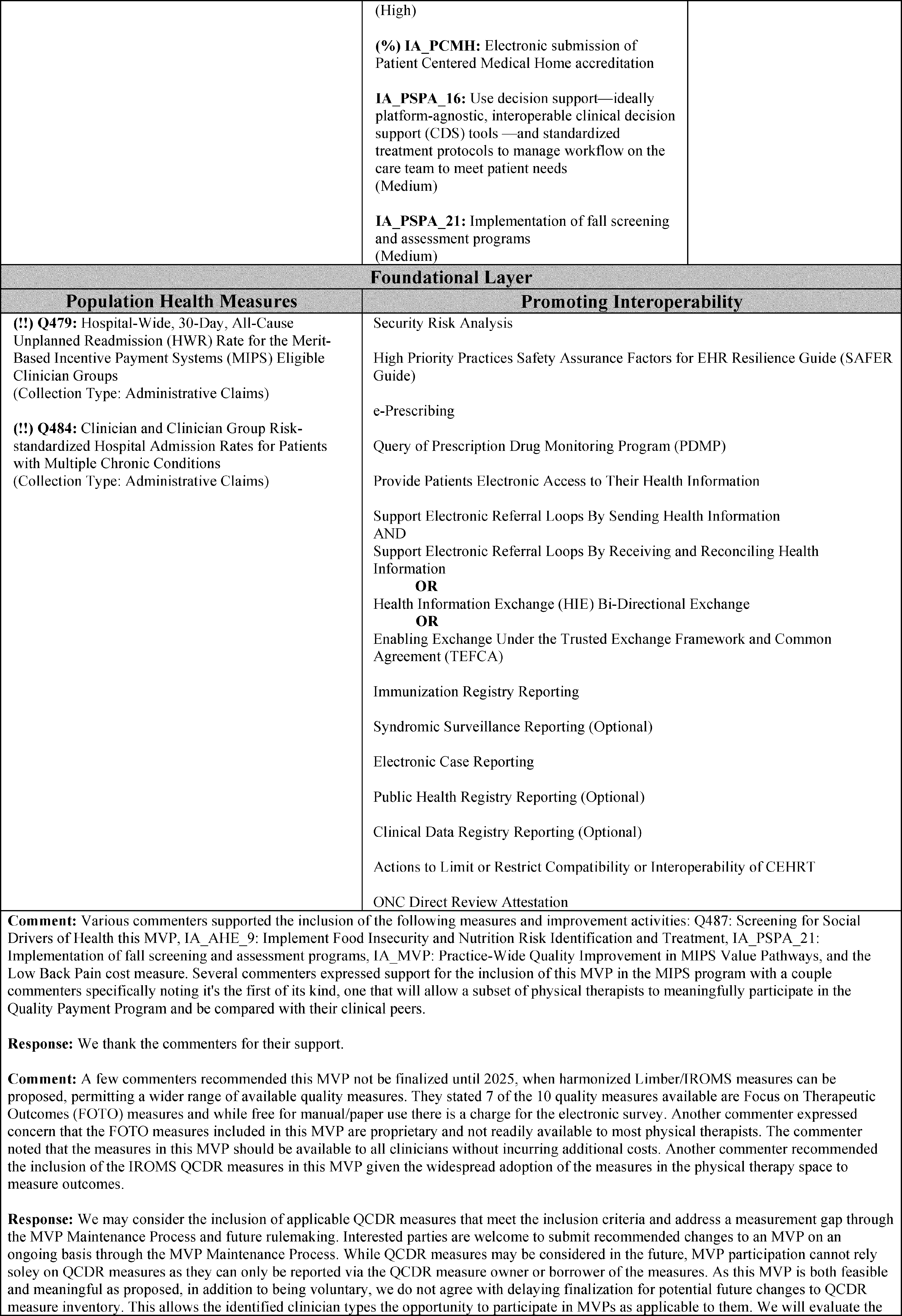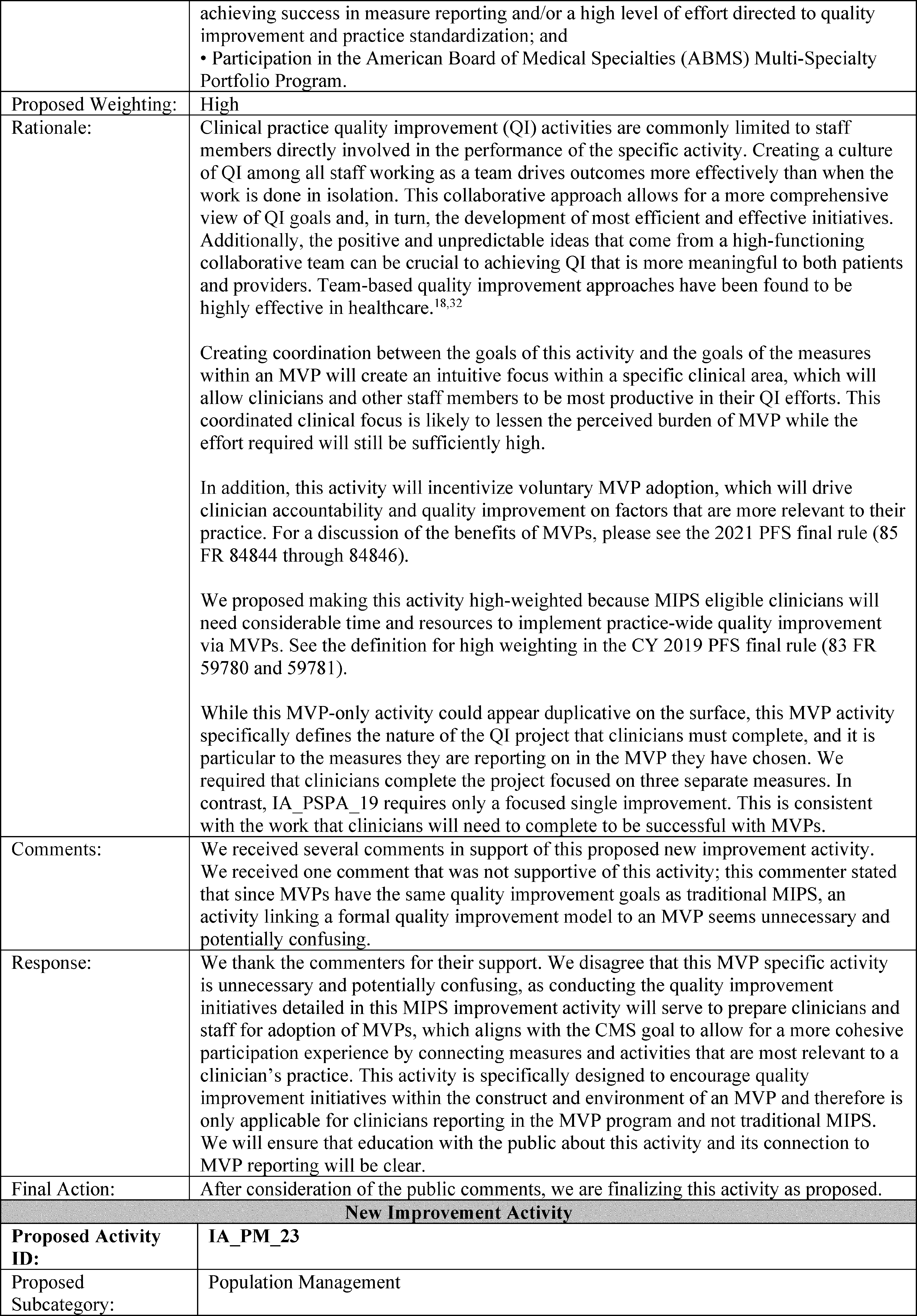 Similarly, in the CY 2021 PFS final rule, we finalized a proposal to modify § 414.1380(b)(3)(ii) to make clear that the baseline score provided by section 1848(q)(5)(C)(i) of the Act for the improvement activities performance category is not automatically granted for clinicians participating in patient-centered medical homes and comparable specialty practices (83 FR 59868).