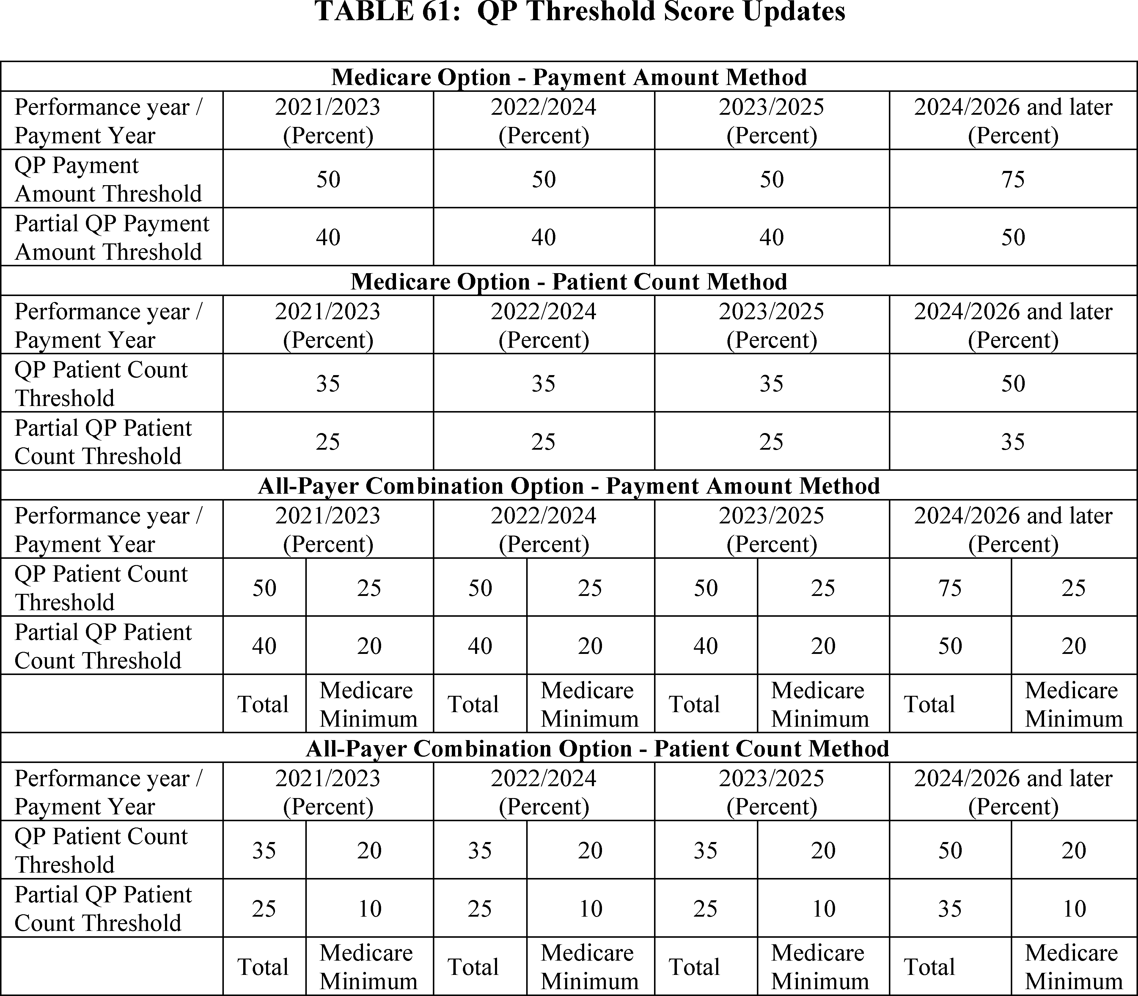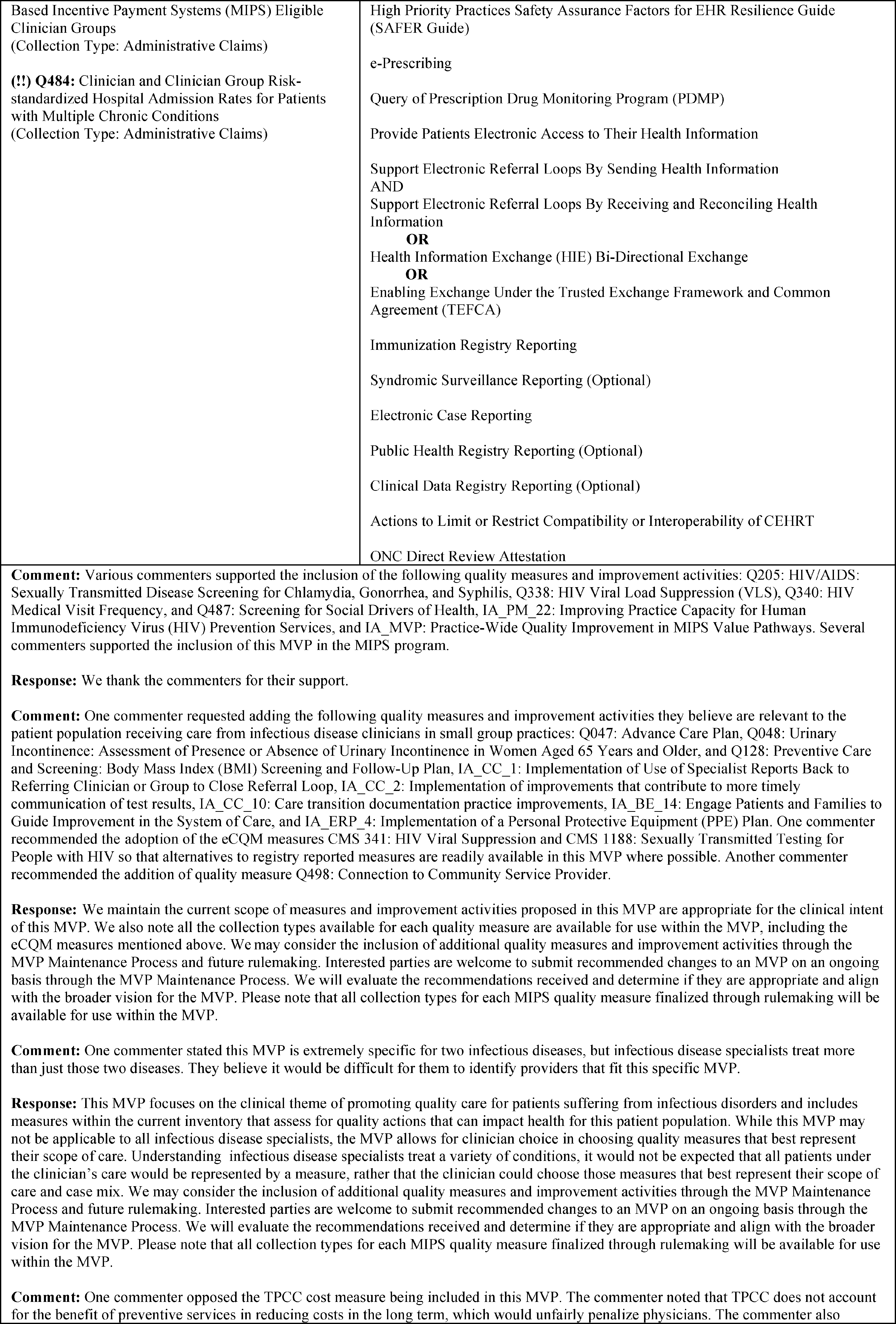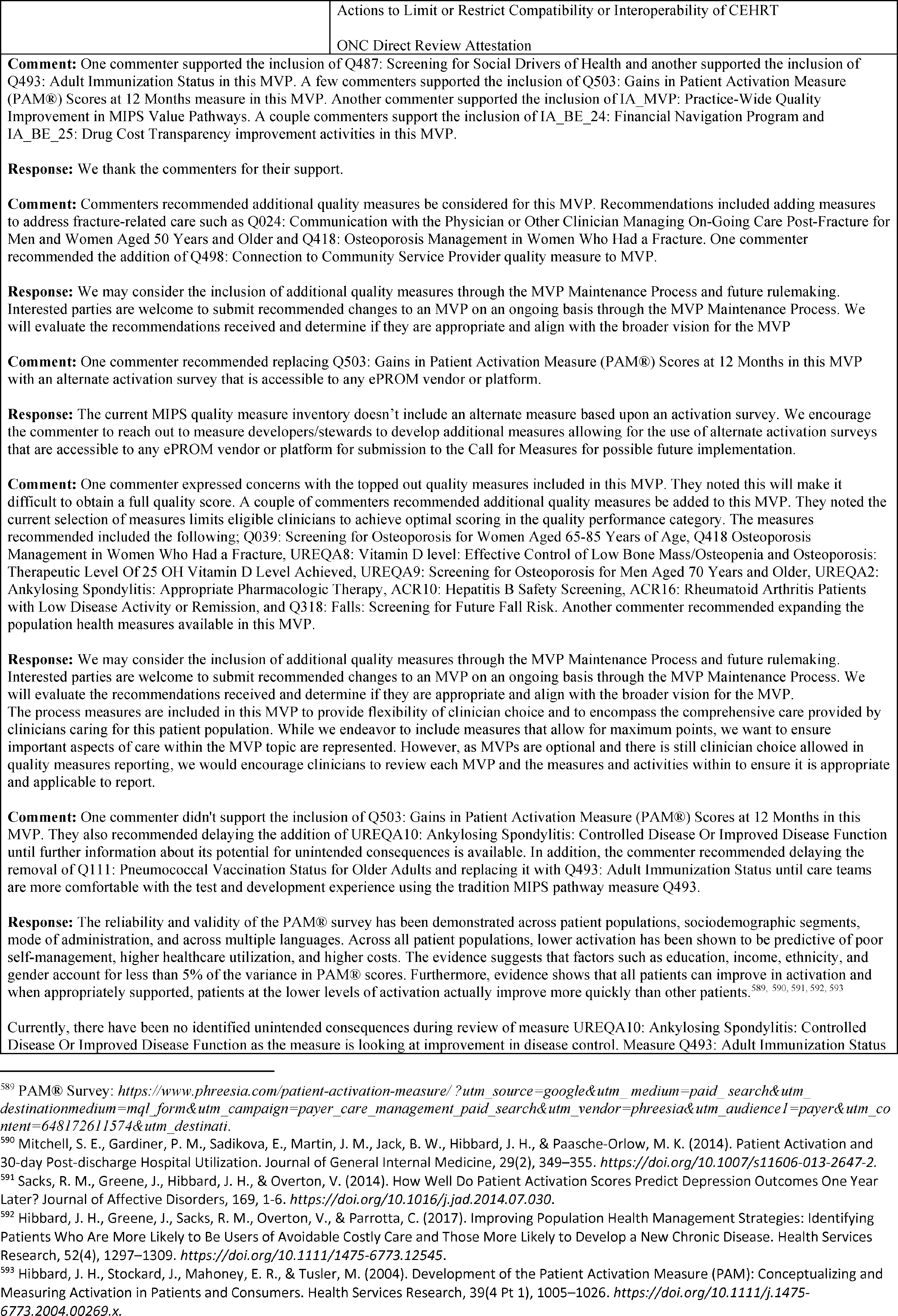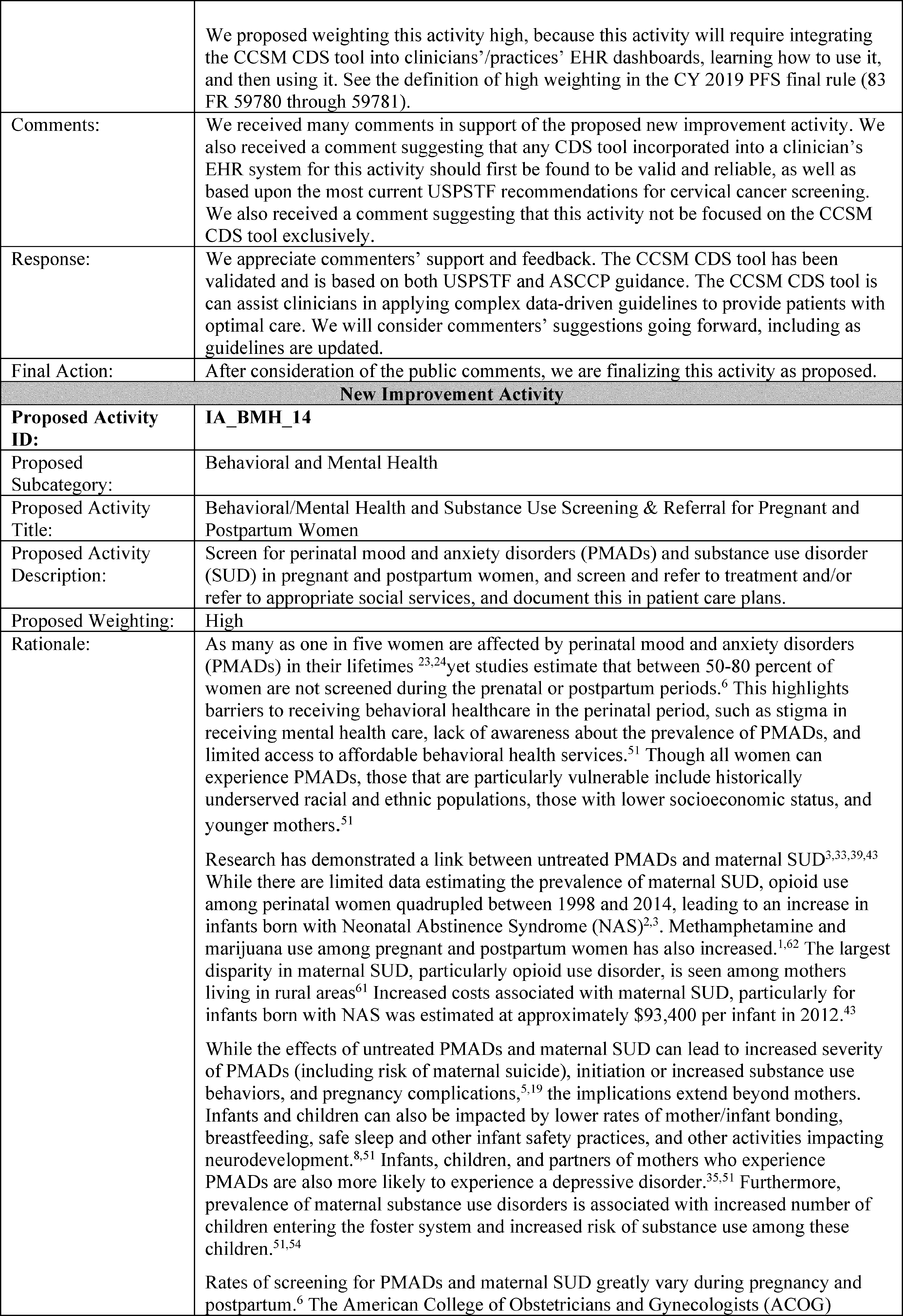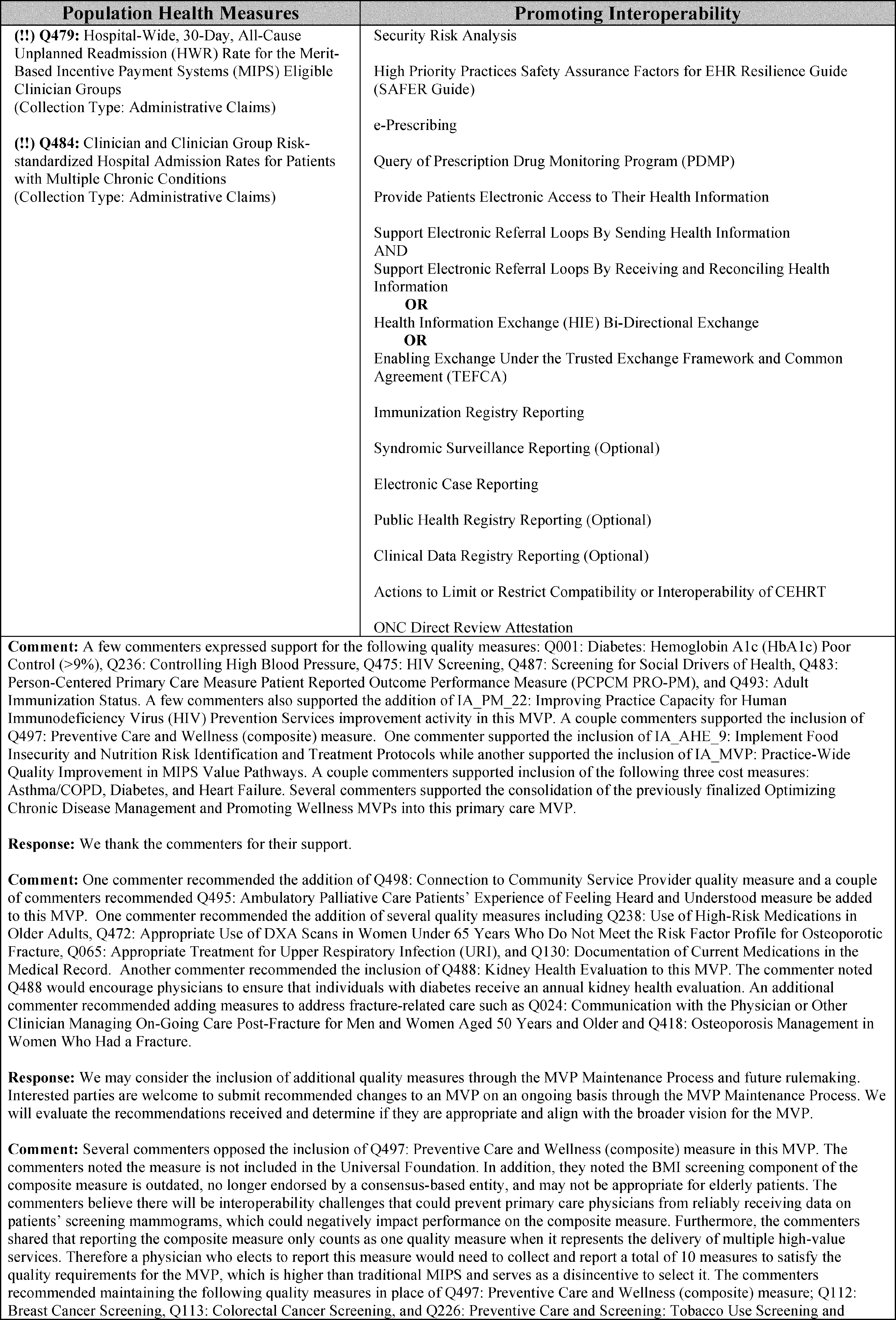 Similarly, in the CY 2021 PFS final rule, we finalized a proposal to modify § 414.1380(b)(3)(ii) to make clear that the baseline score provided by section 1848(q)(5)(C)(i) of the Act for the improvement activities performance category is not automatically granted for clinicians participating in patient-centered medical homes and comparable specialty practices (83 FR 59868).