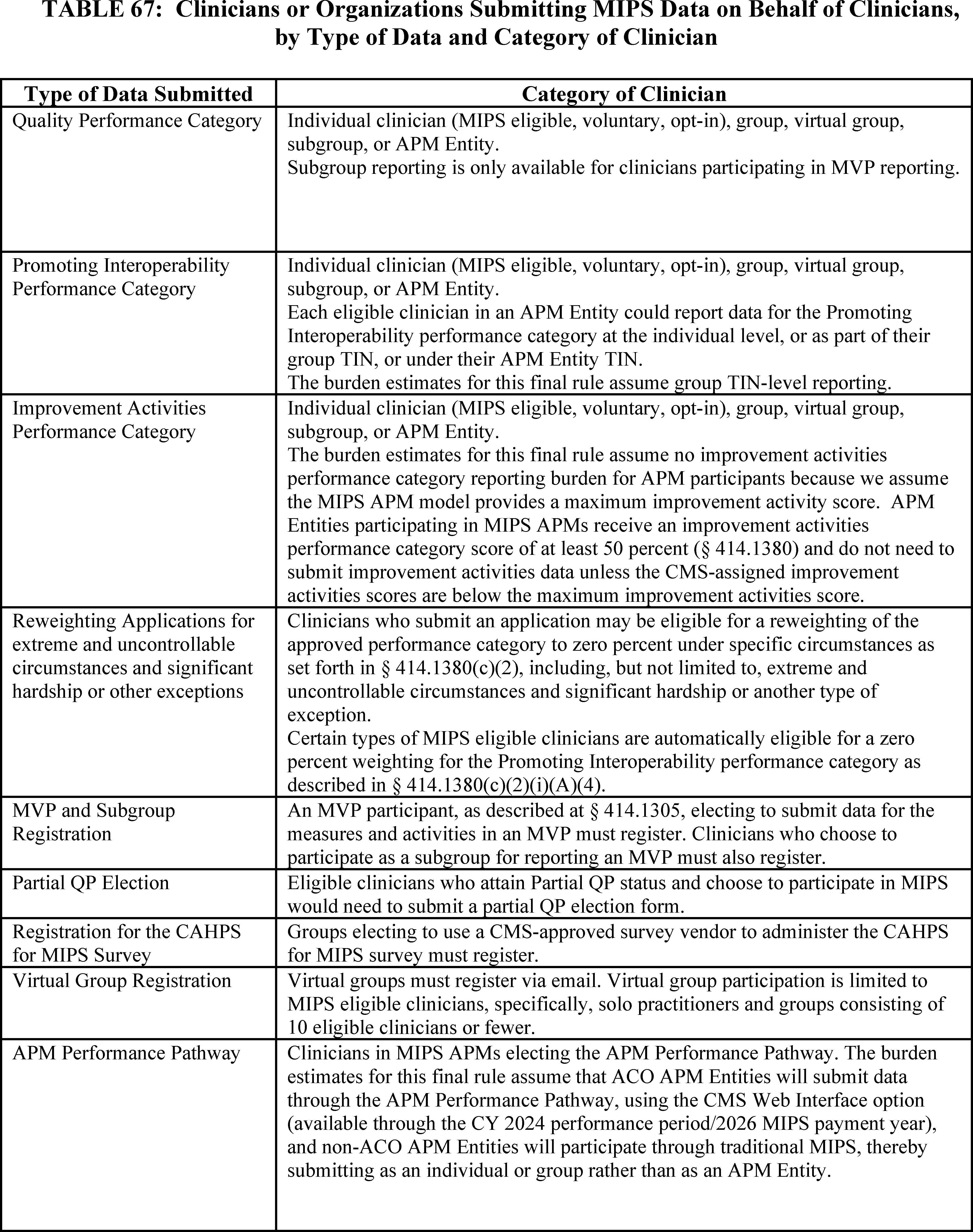 Our estimates do reflect the burden on MIPS APM participants of submitting Promoting Interoperability performance category data, which is outside the requirements of their APMs.