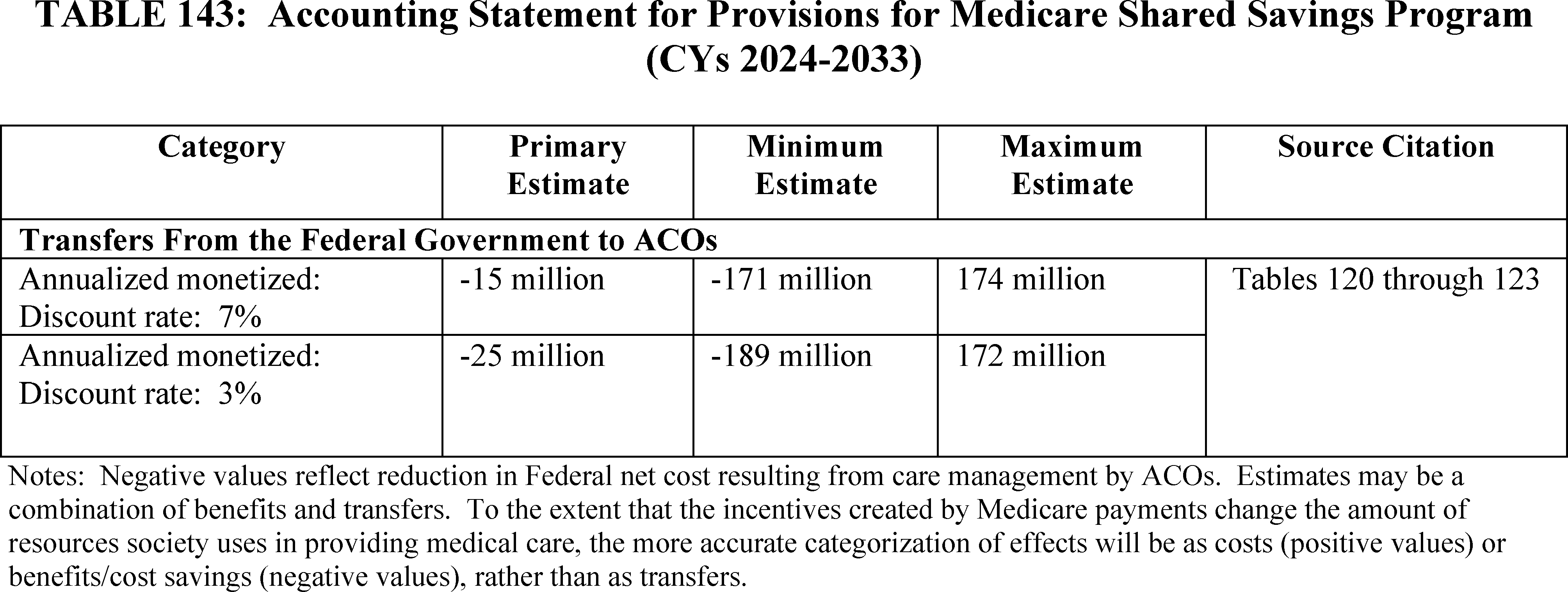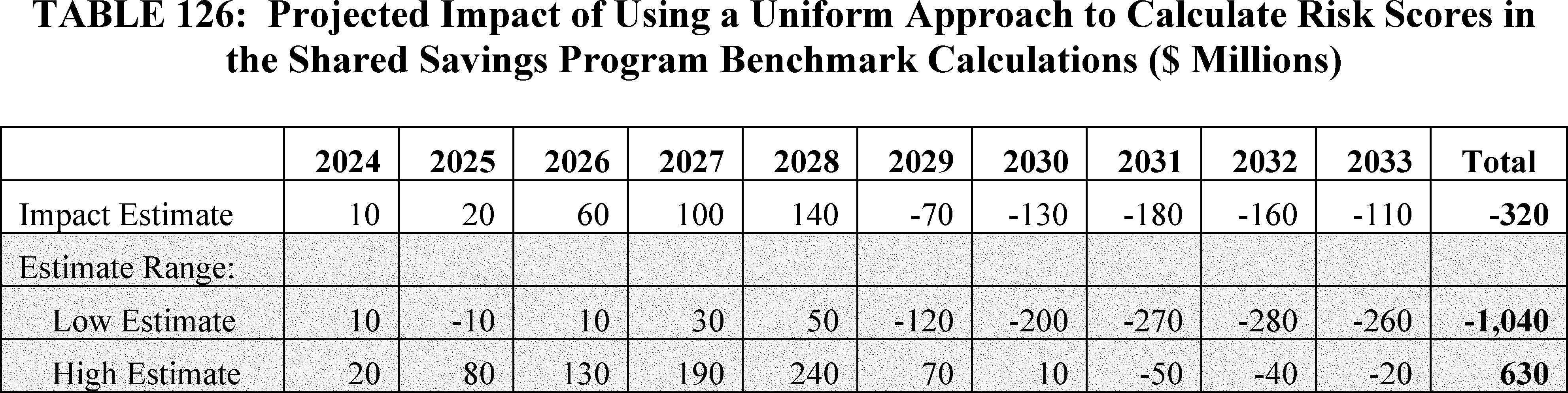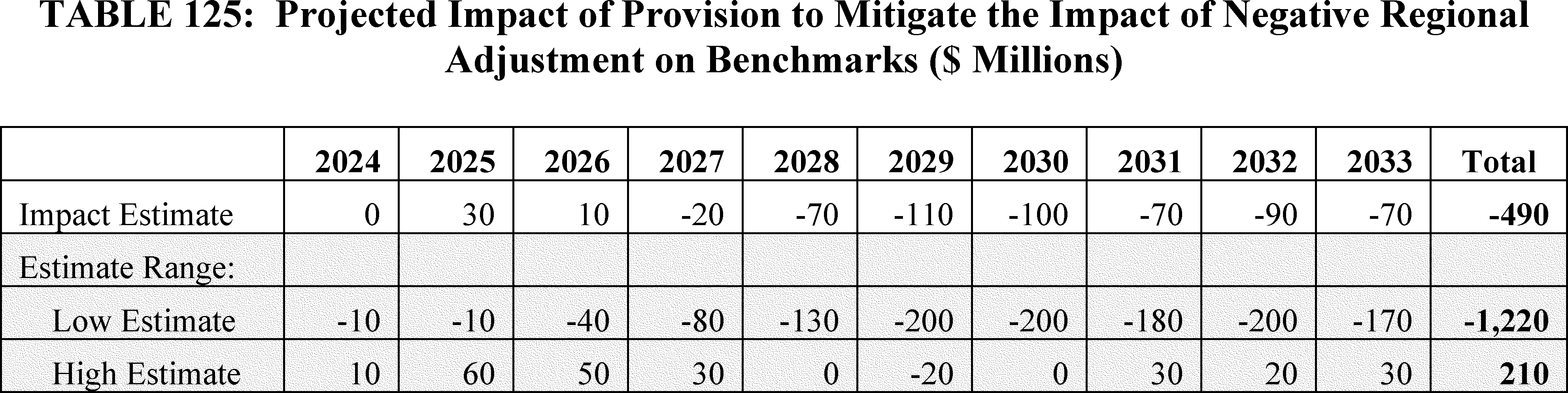 Elimination of overall negative regional adjustments would likely generate participation growth from ACOs that would have faced significant negative adjustments despite the changes from the CY 2023 PFS final rule to reduce the impact of the negative regional adjustment, but also from other prospective high spending ACOs that may have difficulty estimating the relief they will ultimately receive from the offsets applicable to agreement periods beginning on January 1, 2024, and in subsequent years. Eliminating the overall negative regional adjustment entirely will materially improve the business case for participation from ACOs in the former category and may at least optically improve the business case for ACOs in the latter category without actually incurring cost to the program by increasing their benchmarks.