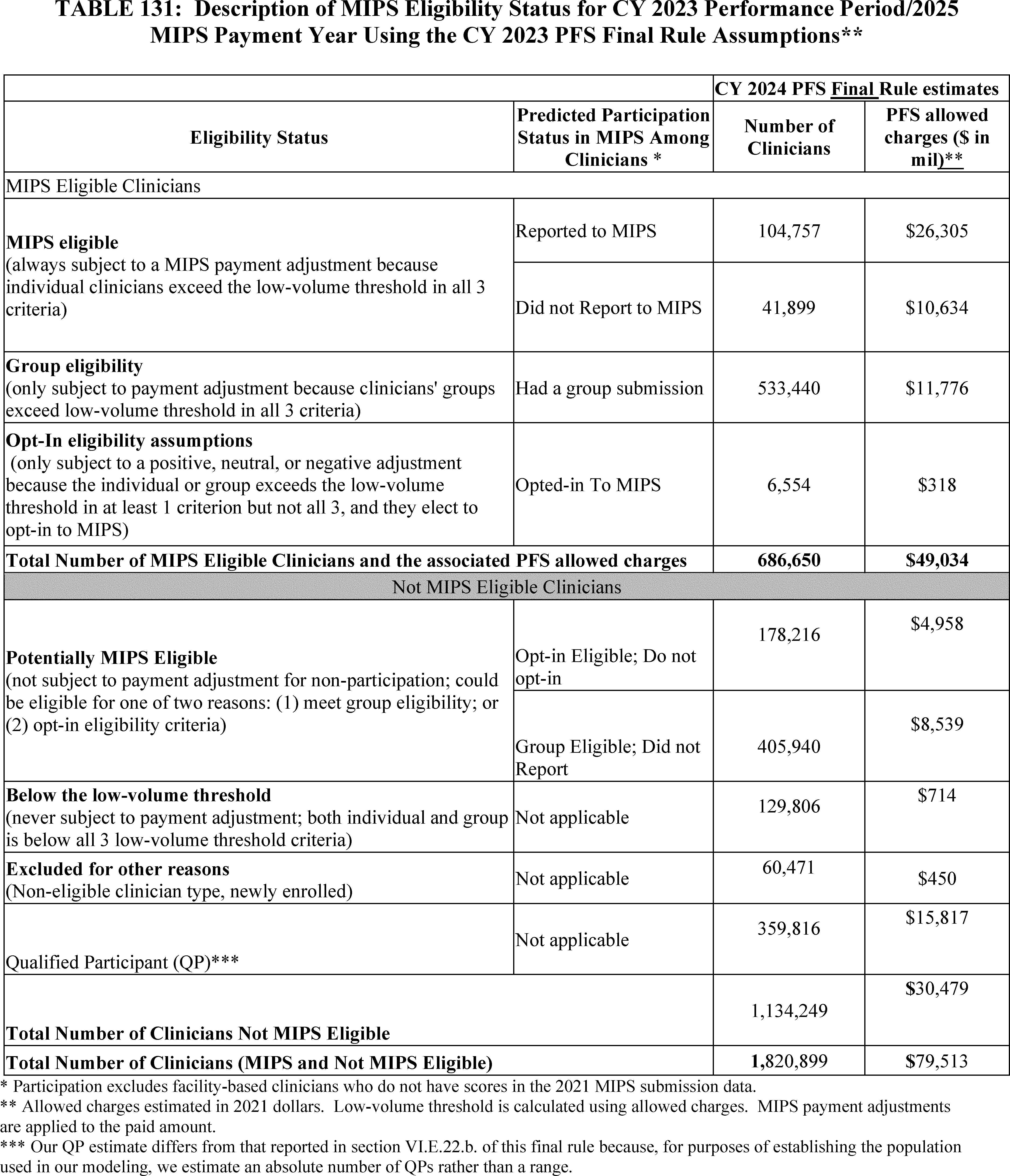 We define potentially MIPS eligible clinicians as those clinicians who are not required to participate in MIPS but