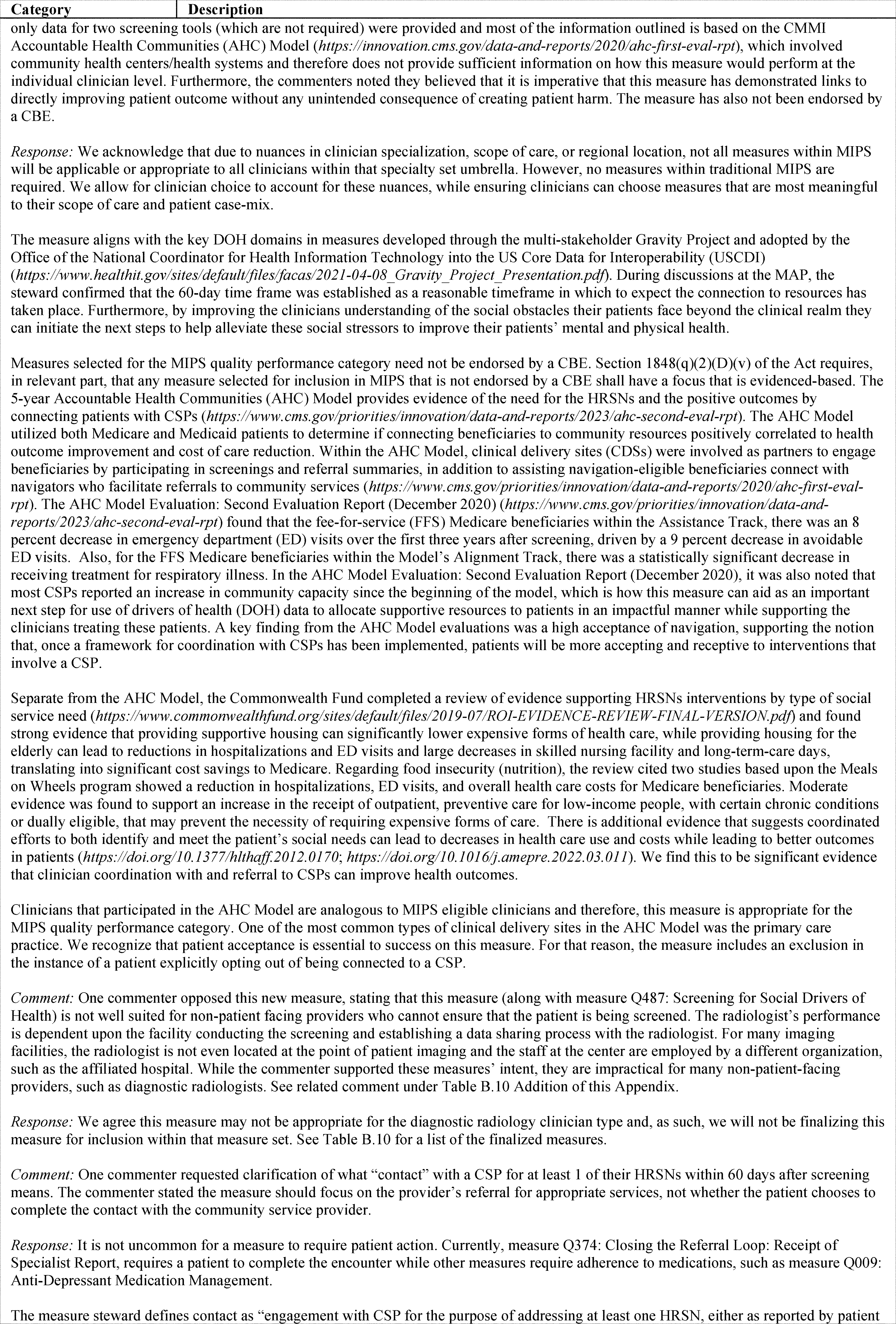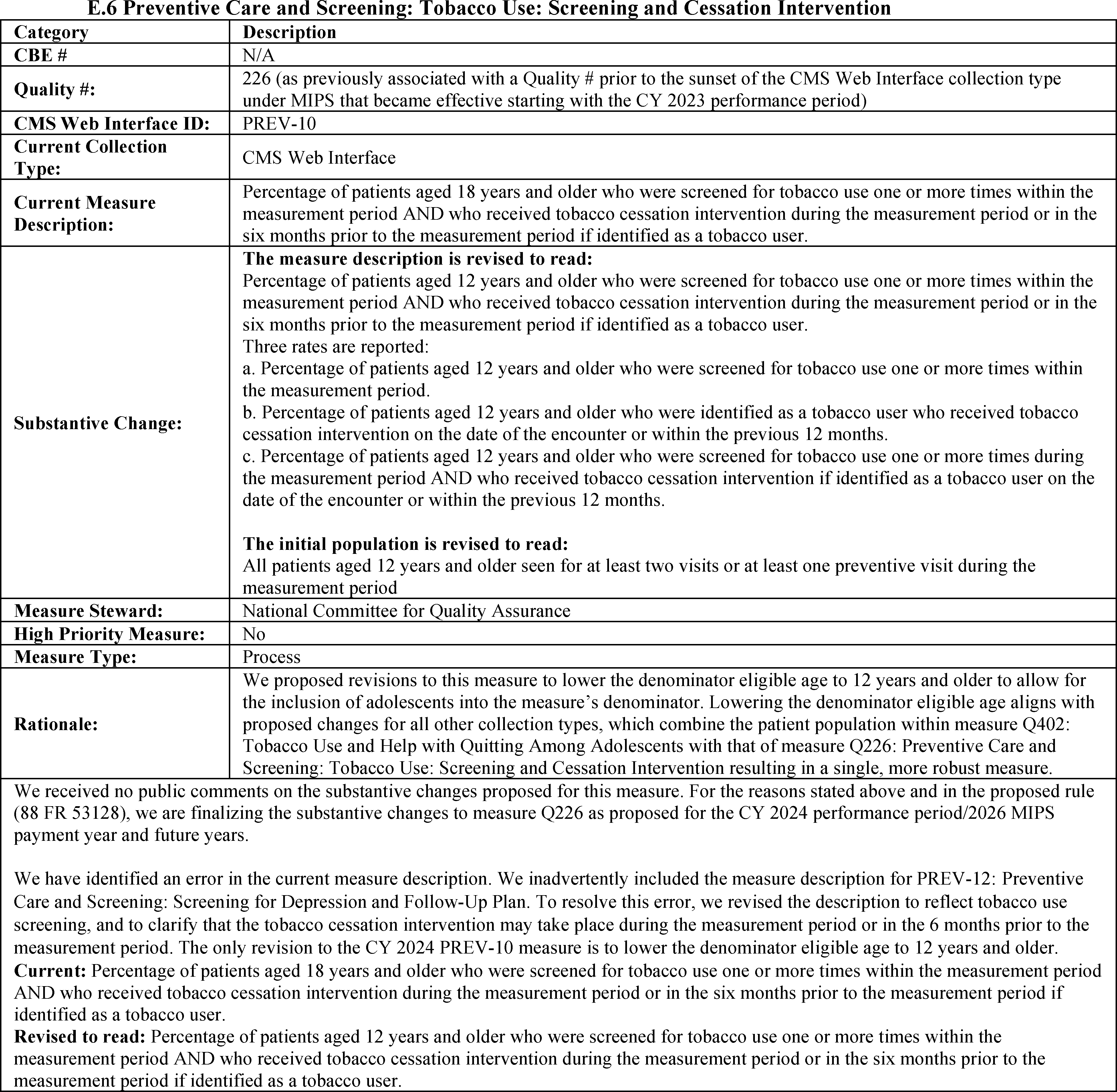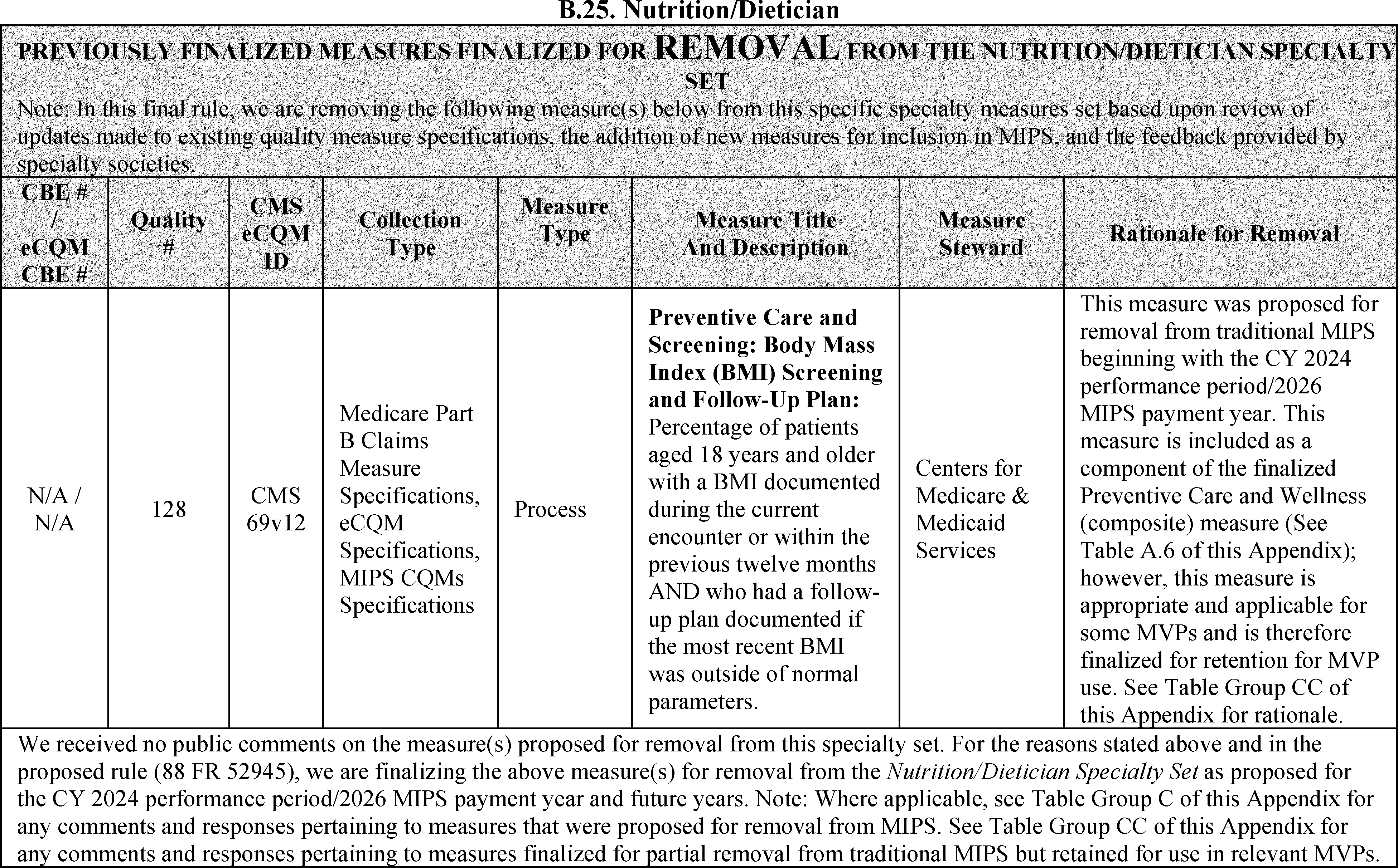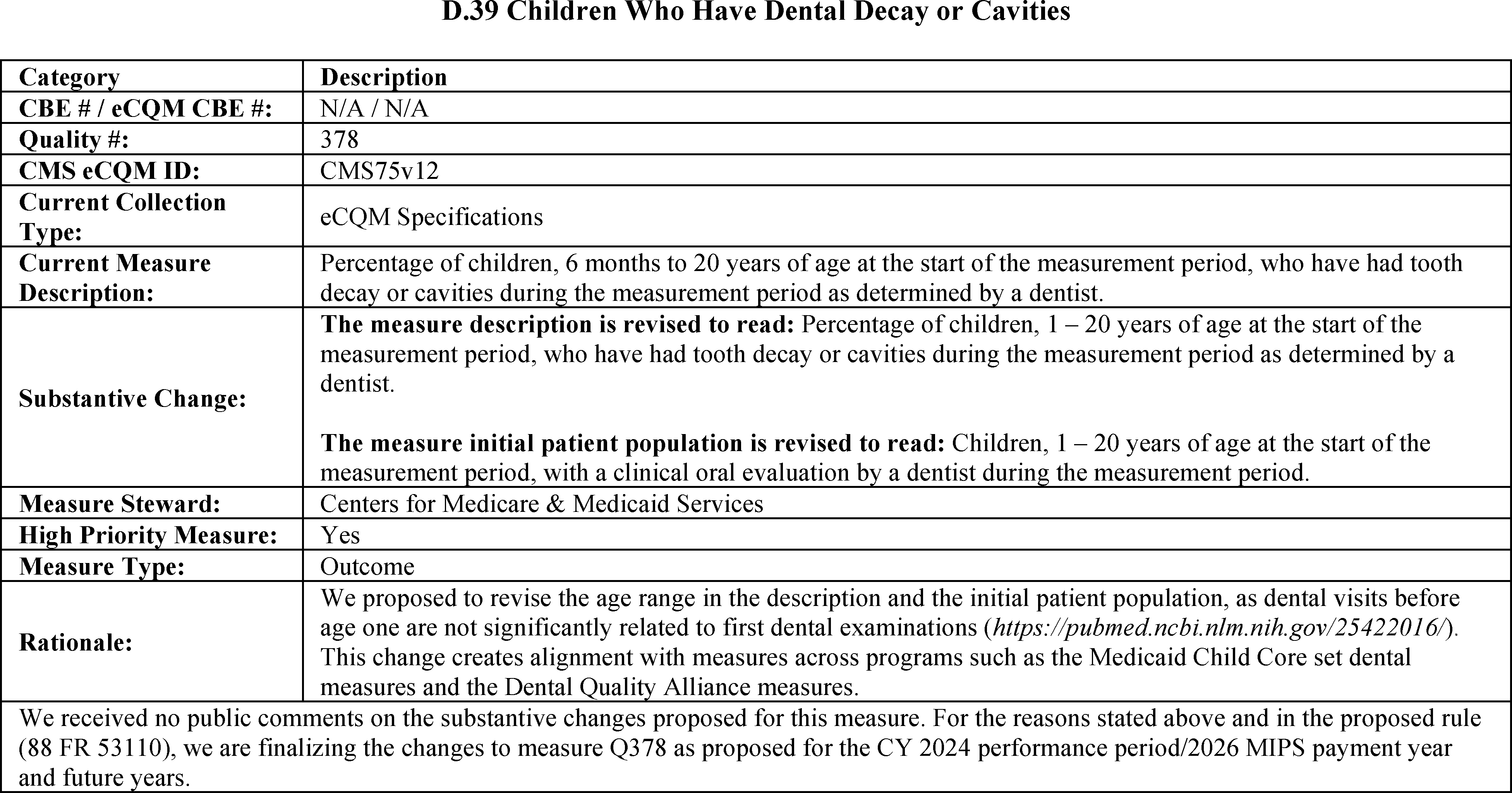 This major final rule addresses: changes to the physician fee schedule (PFS); other changes to Medicare Part B payment policies to ensure that payment systems are updated to reflect changes in medical practice, relative value of services, and changes in the statute; payment for dental services inextricably linked to specific covered medical services; Medicare Shared Savings Program requirements; updates to the Quality Payment Program; Medicare coverage of opioid use disorder services furnished by opioid treatment programs; updates to certain Medicare and Medicaid provider and supplier enrollment policies, electronic prescribing for controlled substances for a covered Part D drug under a prescription drug plan or an MA-PD plan under the Substance Use-Disorder Prevention that Promotes Opioid Recovery and Treatment for Patients and Communities Act (SUPPORT Act); updates to the Ambulance Fee Schedule regulations and the Medicare Ground Ambulance Data Collection System; codification of the Inflation Reduction Act and Consolidated Appropriations Act, 2023 provisions; expansion of the diabetes screening and diabetes definitions; pulmonary rehabilitation, cardiac rehabilitation and intensive cardiac rehabilitation expansion of supervising practitioners; appropriate use criteria for advanced diagnostic imaging; early release of Medicare Advantage risk adjustment data; a social determinants of health risk assessment in the annual wellness visit and Basic Health Program.