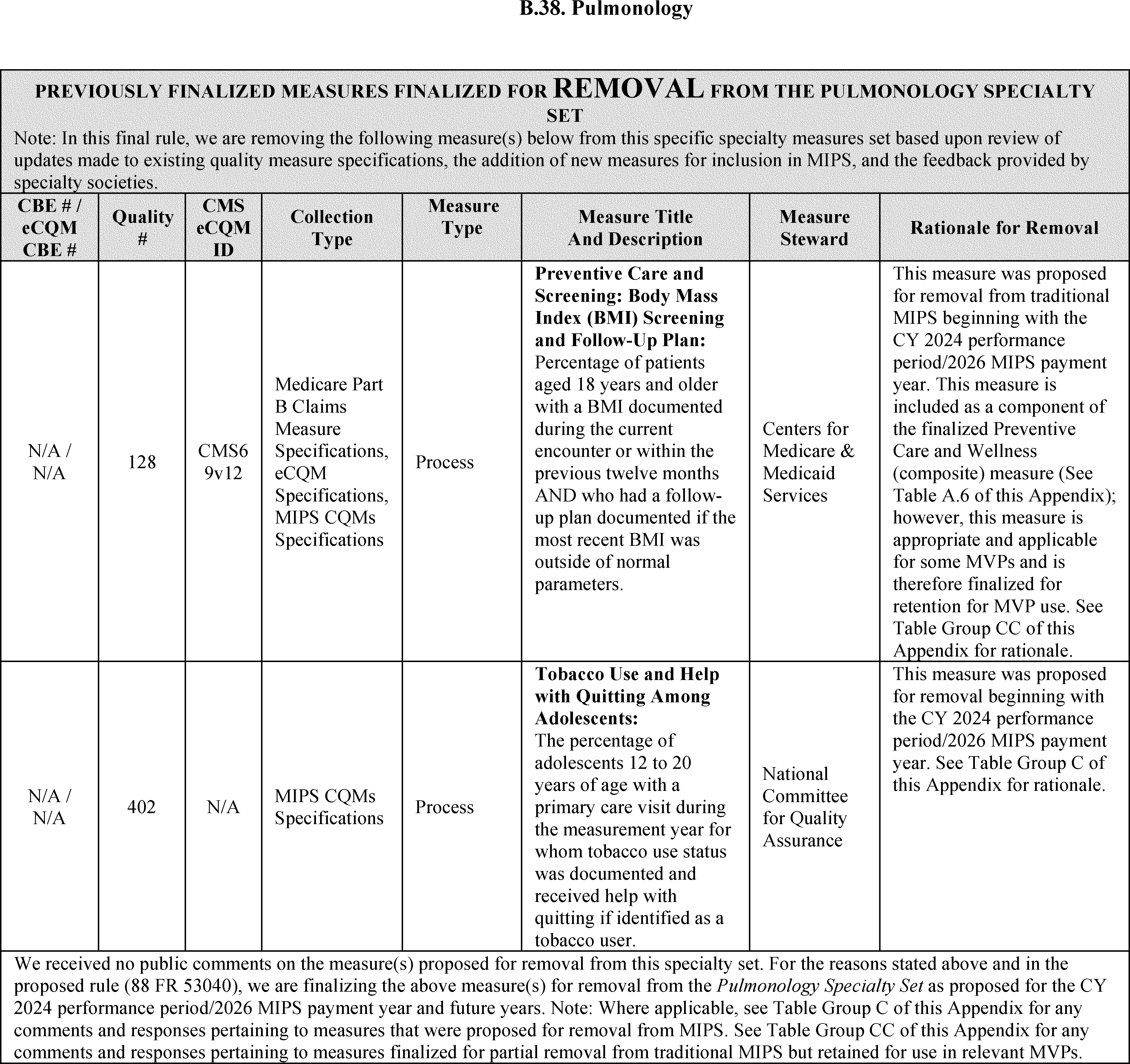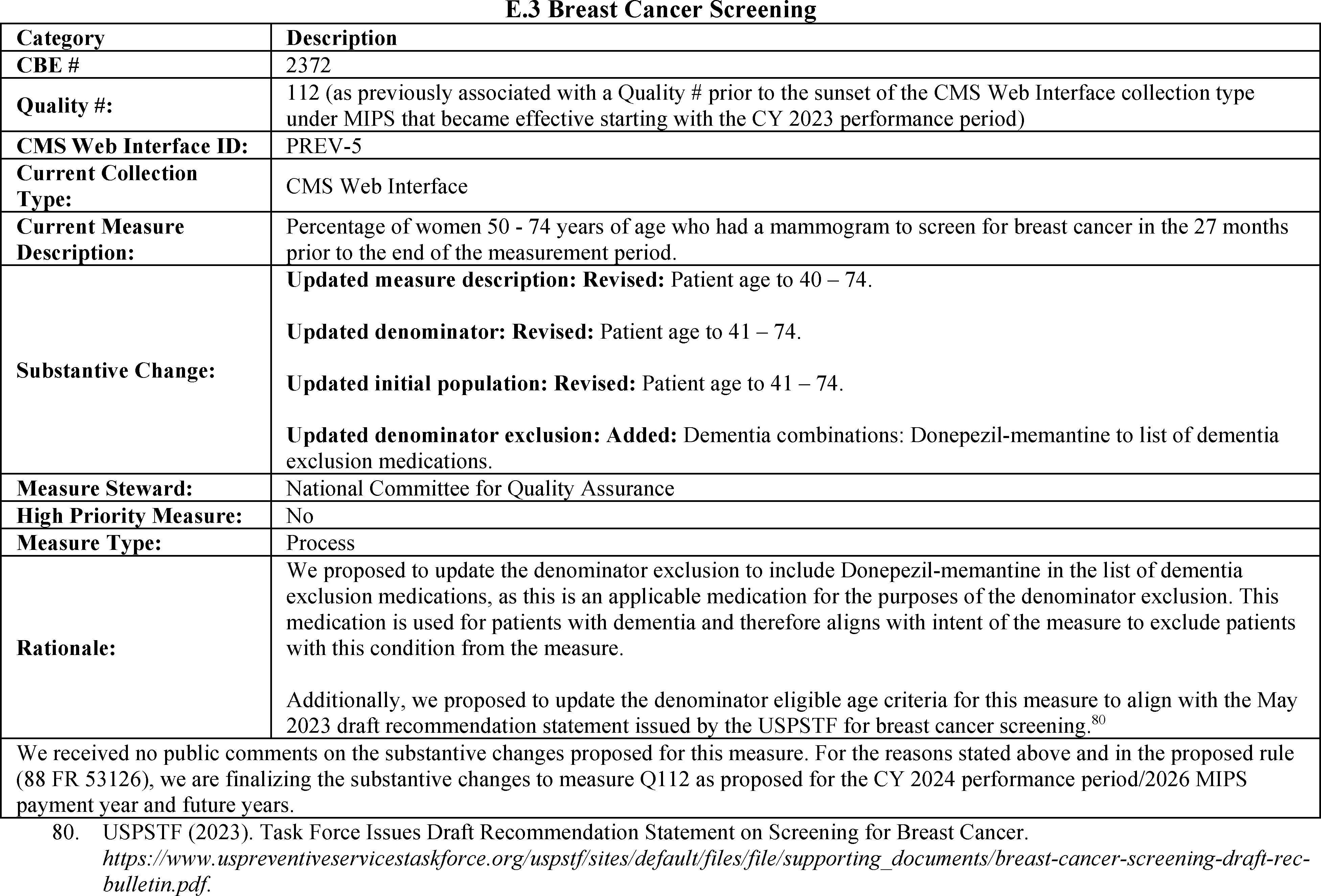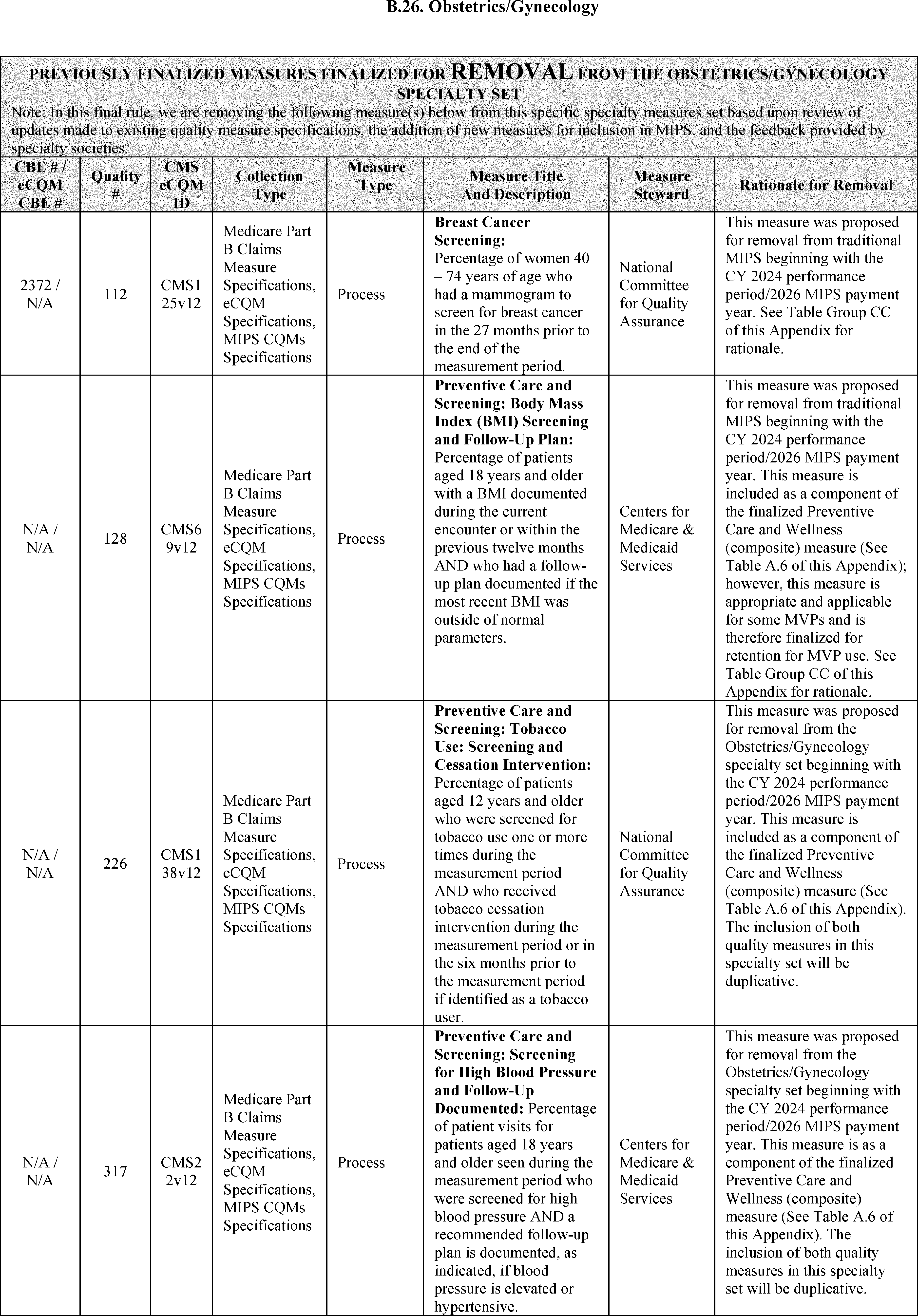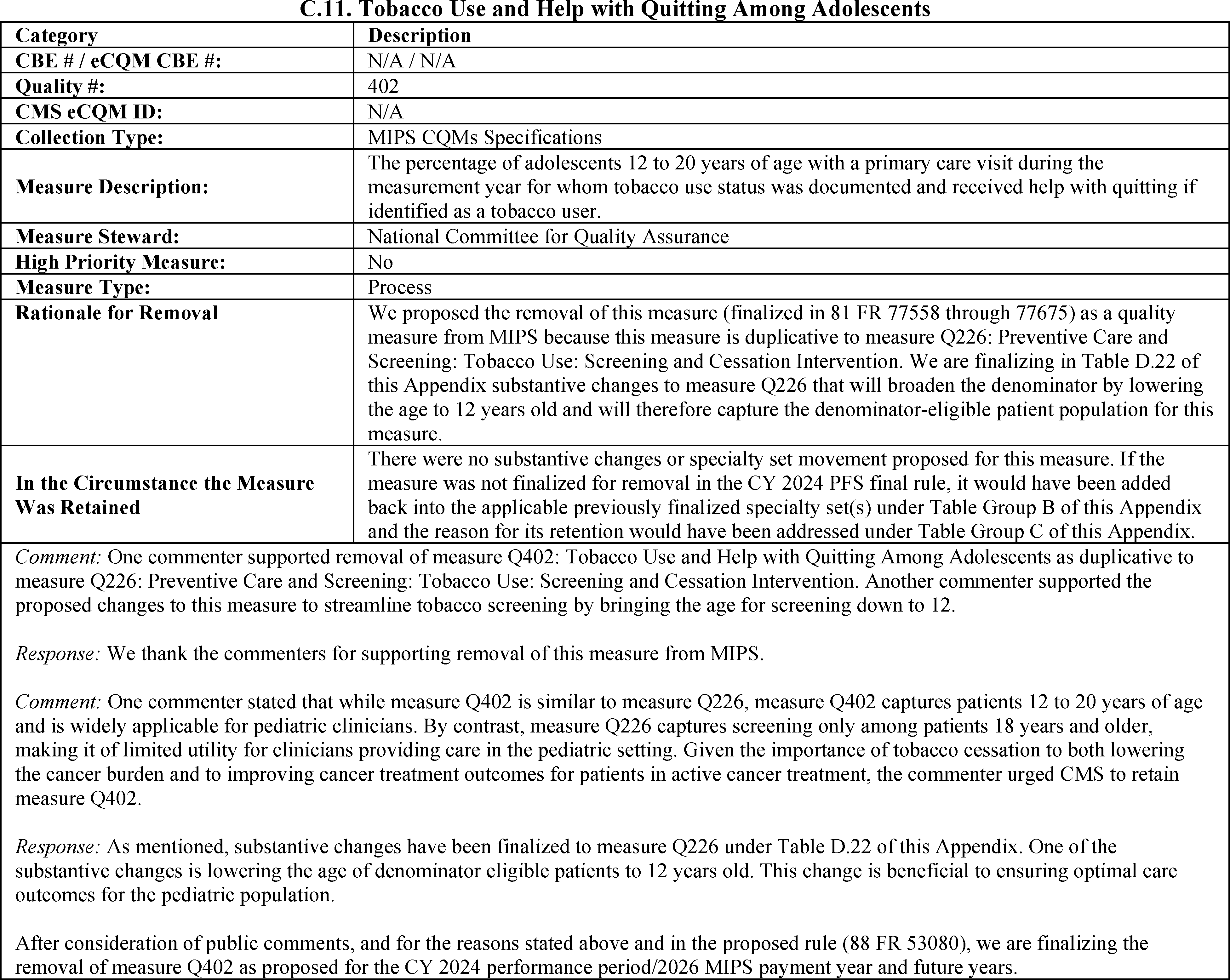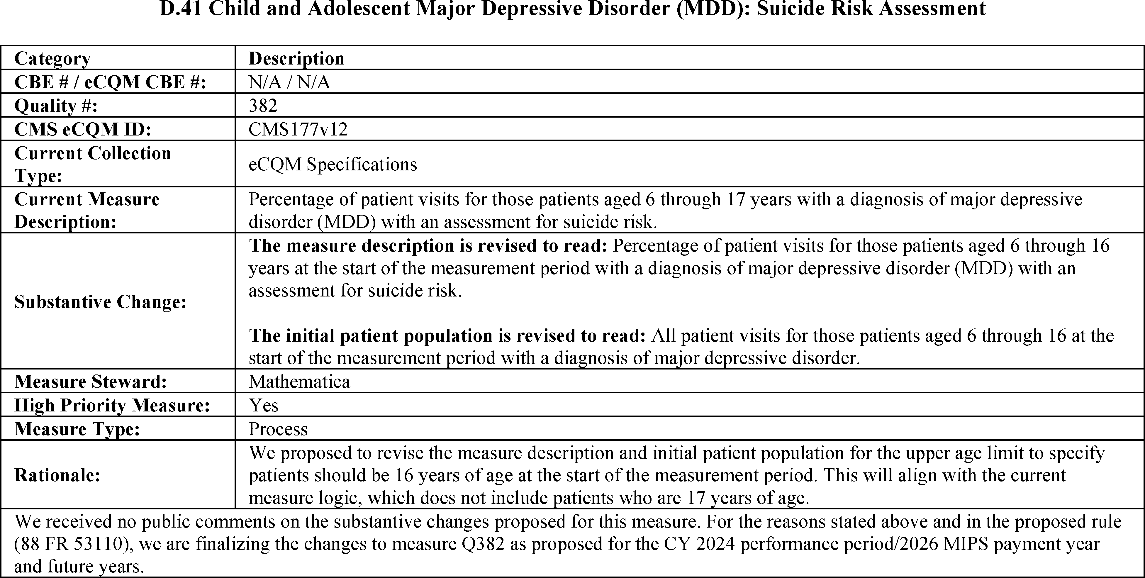 This major final rule addresses: changes to the physician fee schedule (PFS); other changes to Medicare Part B payment policies to ensure that payment systems are updated to reflect changes in medical practice, relative value of services, and changes in the statute; payment for dental services inextricably linked to specific covered medical services; Medicare Shared Savings Program requirements; updates to the Quality Payment Program; Medicare coverage of opioid use disorder services furnished by opioid treatment programs; updates to certain Medicare and Medicaid provider and supplier enrollment policies, electronic prescribing for controlled substances for a covered Part D drug under a prescription drug plan or an MA-PD plan under the Substance Use-Disorder Prevention that Promotes Opioid Recovery and Treatment for Patients and Communities Act (SUPPORT Act); updates to the Ambulance Fee Schedule regulations and the Medicare Ground Ambulance Data Collection System; codification of the Inflation Reduction Act and Consolidated Appropriations Act, 2023 provisions; expansion of the diabetes screening and diabetes definitions; pulmonary rehabilitation, cardiac rehabilitation and intensive cardiac rehabilitation expansion of supervising practitioners; appropriate use criteria for advanced diagnostic imaging; early release of Medicare Advantage risk adjustment data; a social determinants of health risk assessment in the annual wellness visit and Basic Health Program.