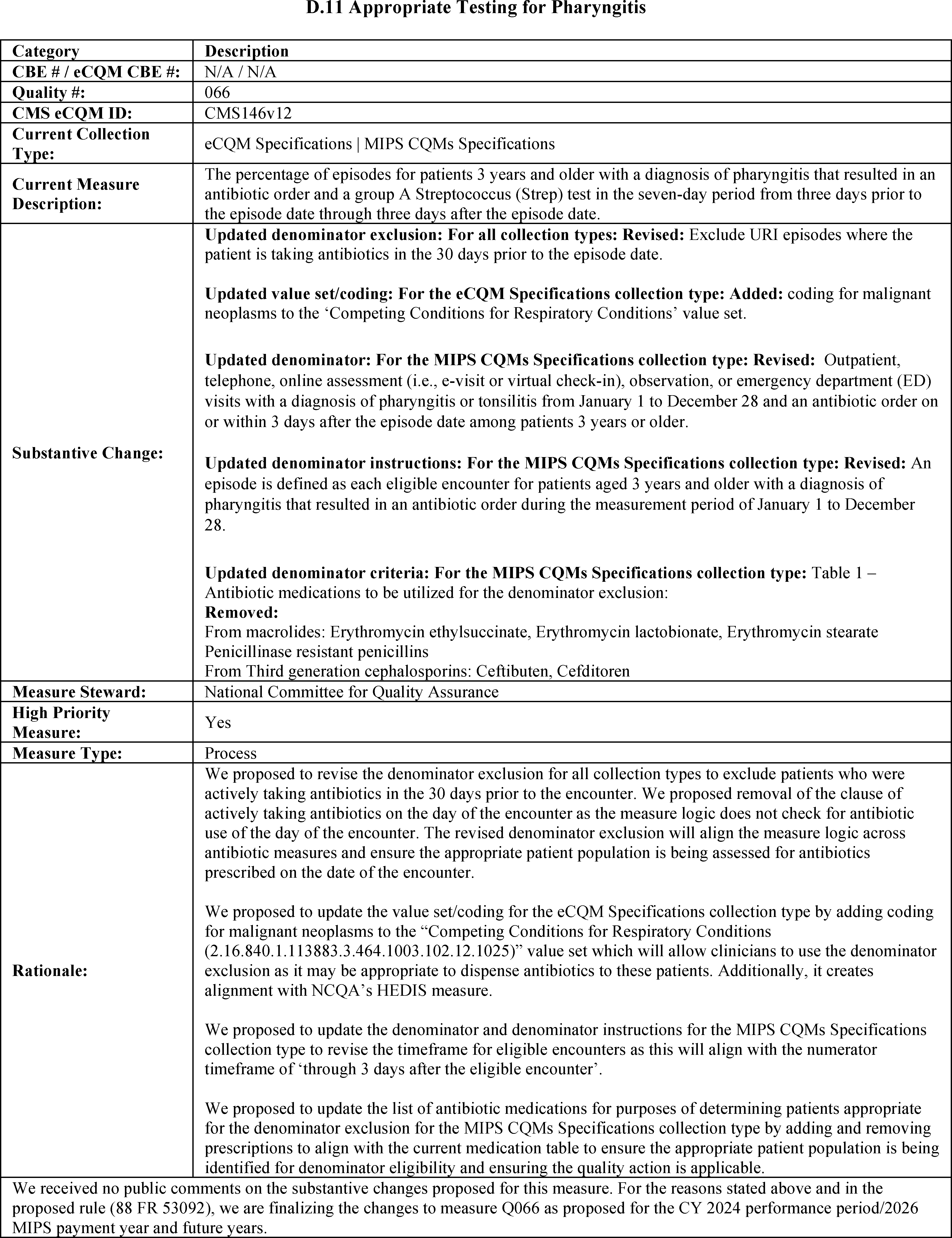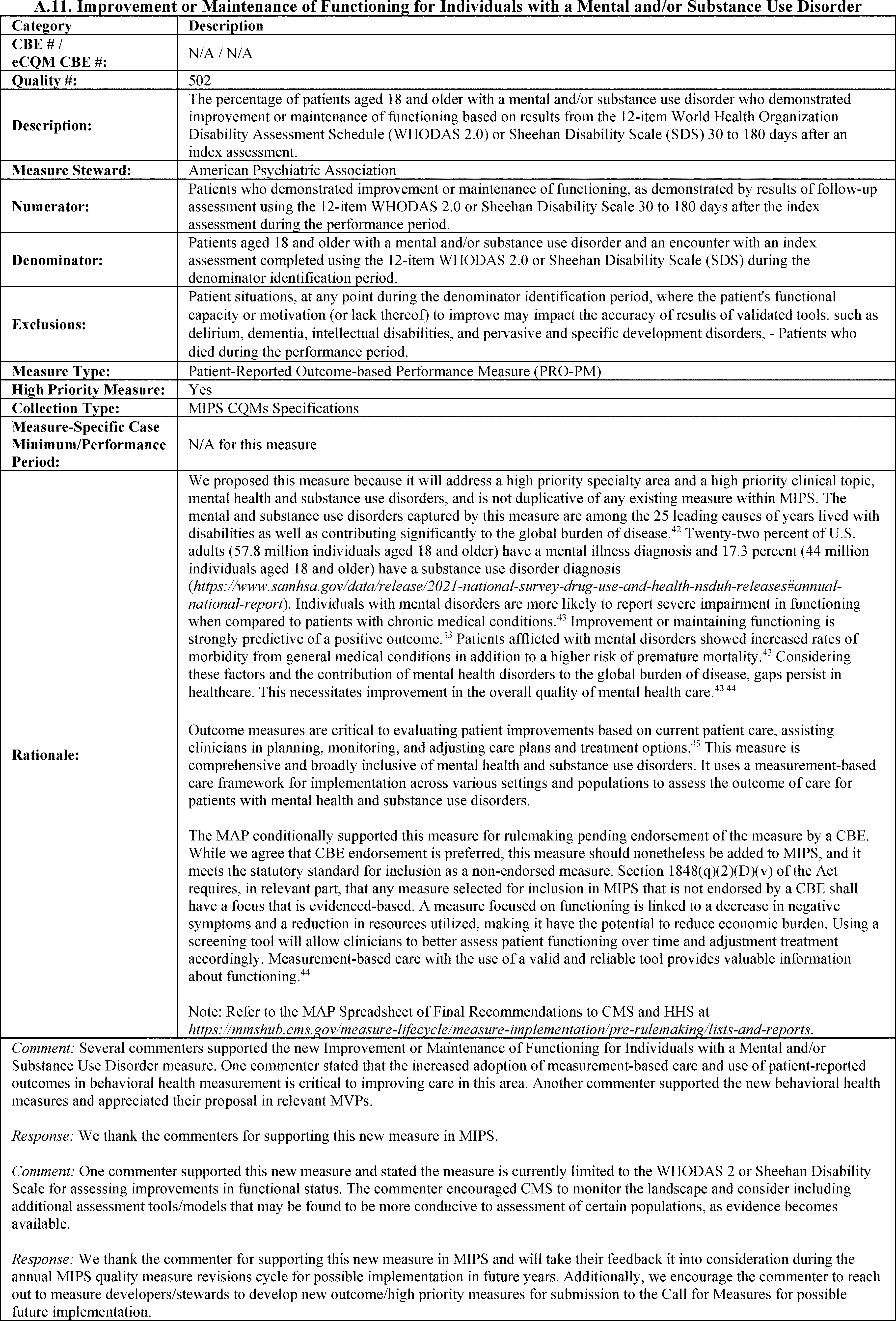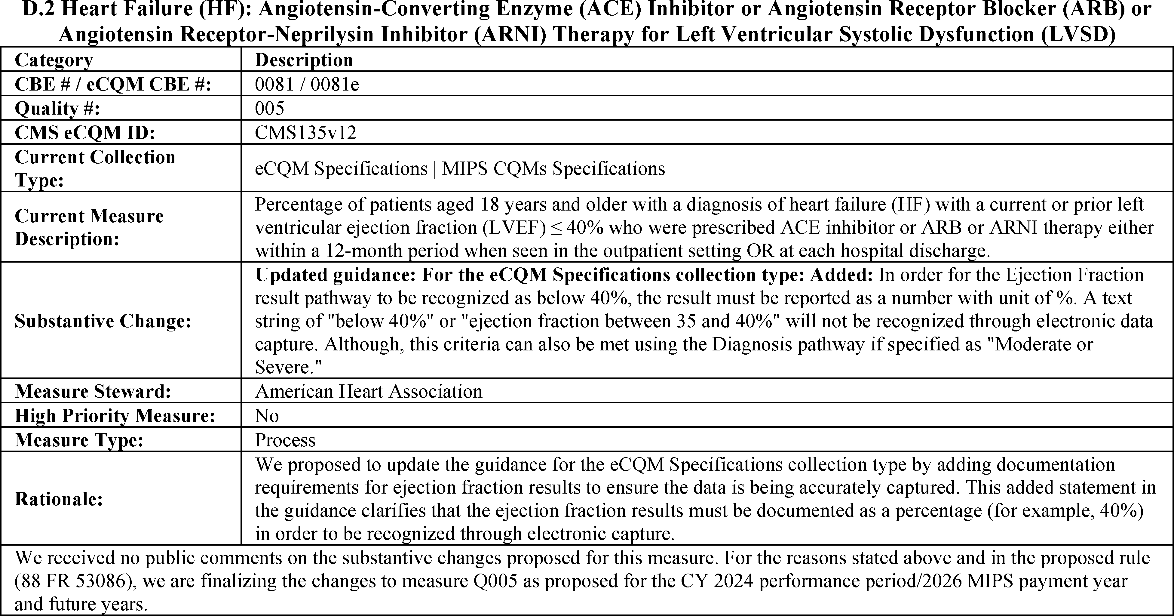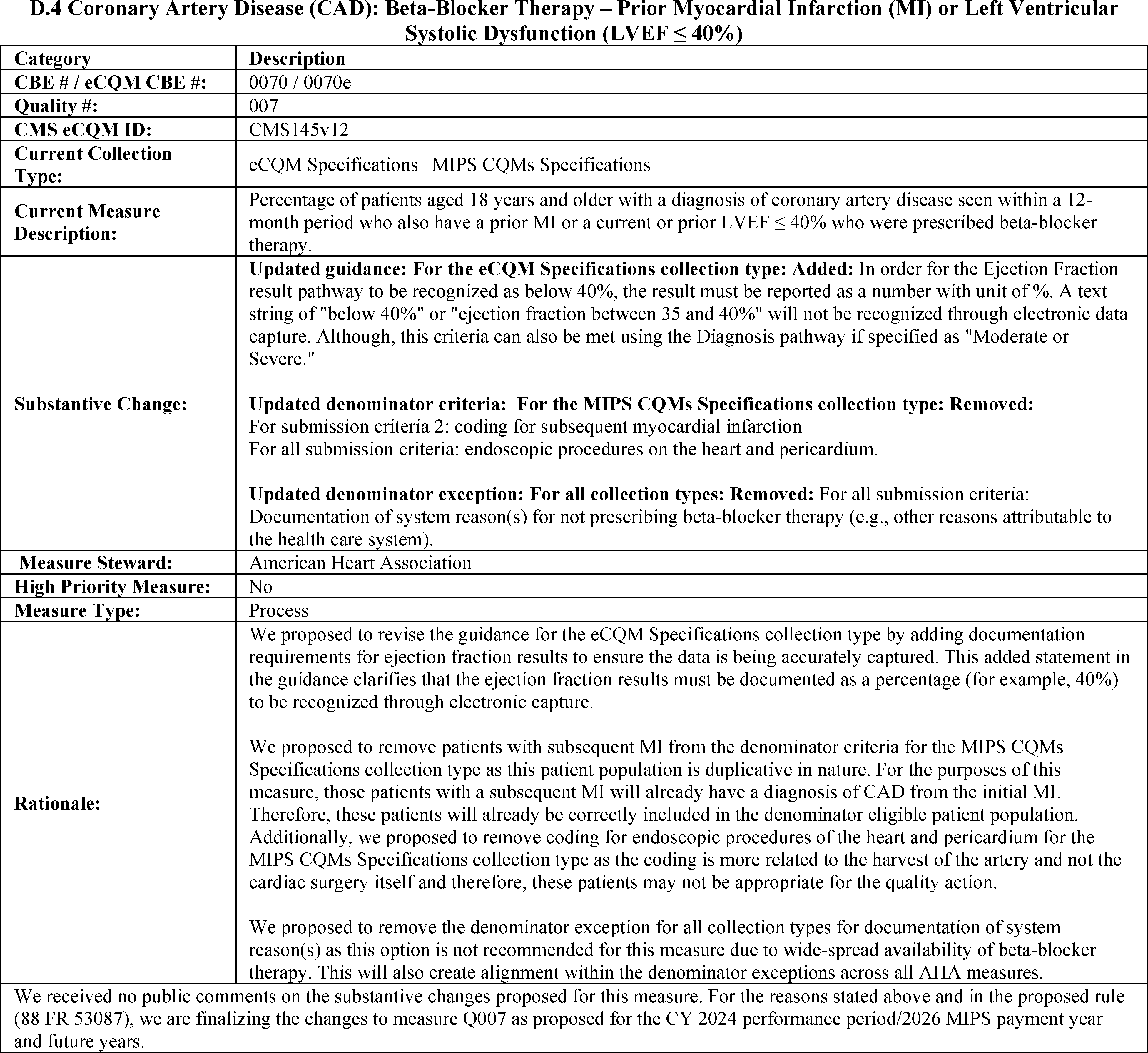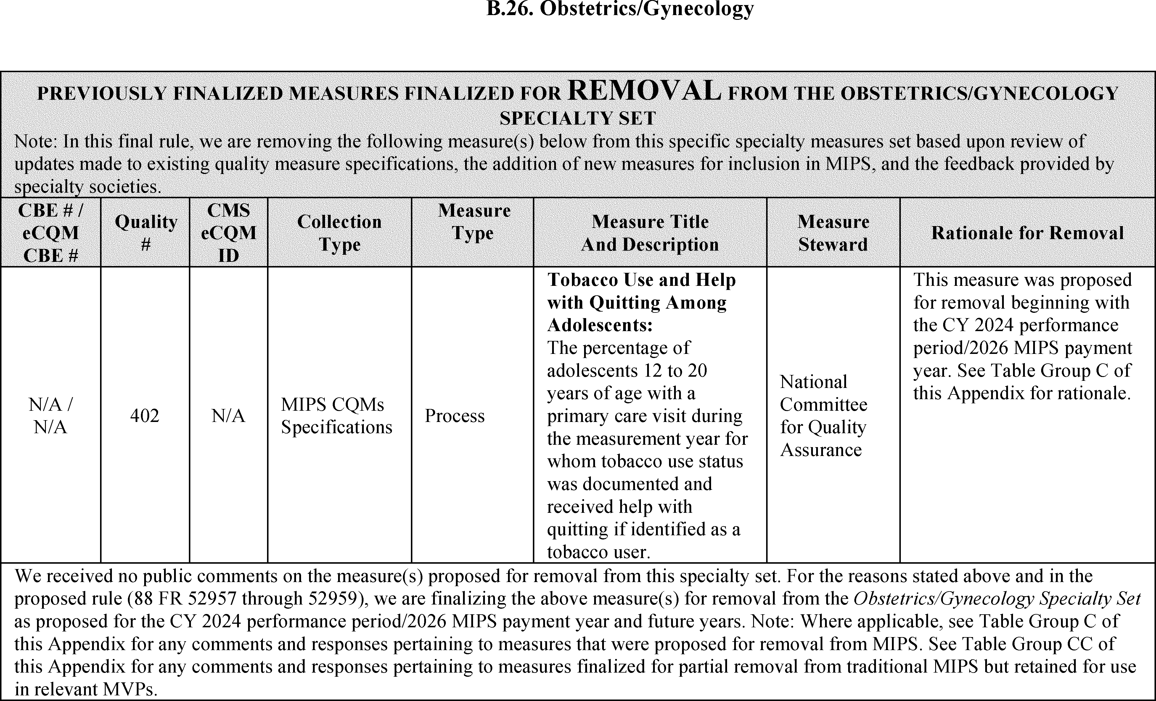 This major final rule addresses: changes to the physician fee schedule (PFS); other changes to Medicare Part B payment policies to ensure that payment systems are updated to reflect changes in medical practice, relative value of services, and changes in the statute; payment for dental services inextricably linked to specific covered medical services; Medicare Shared Savings Program requirements; updates to the Quality Payment Program; Medicare coverage of opioid use disorder services furnished by opioid treatment programs; updates to certain Medicare and Medicaid provider and supplier enrollment policies, electronic prescribing for controlled substances for a covered Part D drug under a prescription drug plan or an MA-PD plan under the Substance Use-Disorder Prevention that Promotes Opioid Recovery and Treatment for Patients and Communities Act (SUPPORT Act); updates to the Ambulance Fee Schedule regulations and the Medicare Ground Ambulance Data Collection System; codification of the Inflation Reduction Act and Consolidated Appropriations Act, 2023 provisions; expansion of the diabetes screening and diabetes definitions; pulmonary rehabilitation, cardiac rehabilitation and intensive cardiac rehabilitation expansion of supervising practitioners; appropriate use criteria for advanced diagnostic imaging; early release of Medicare Advantage risk adjustment data; a social determinants of health risk assessment in the annual wellness visit and Basic Health Program.