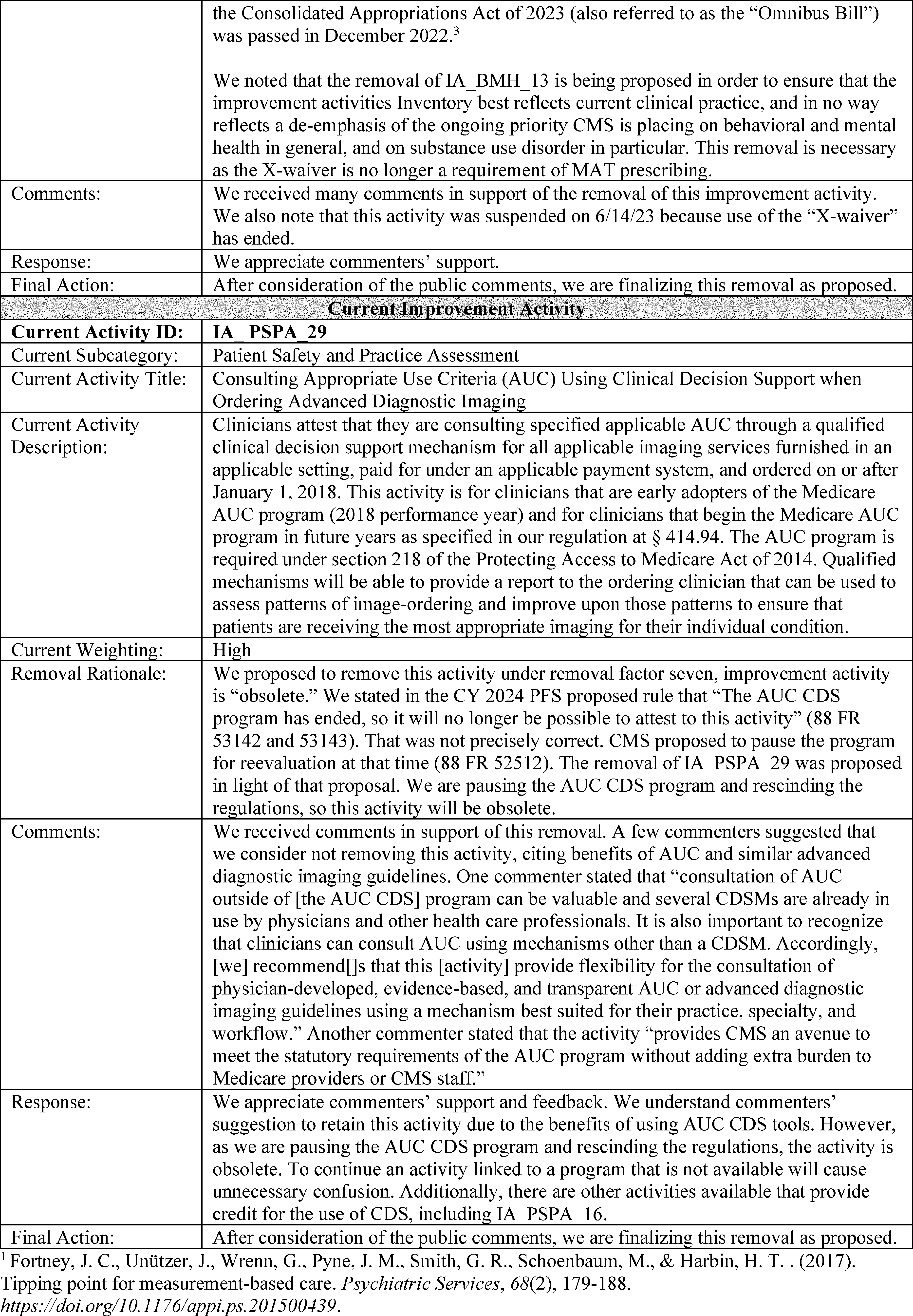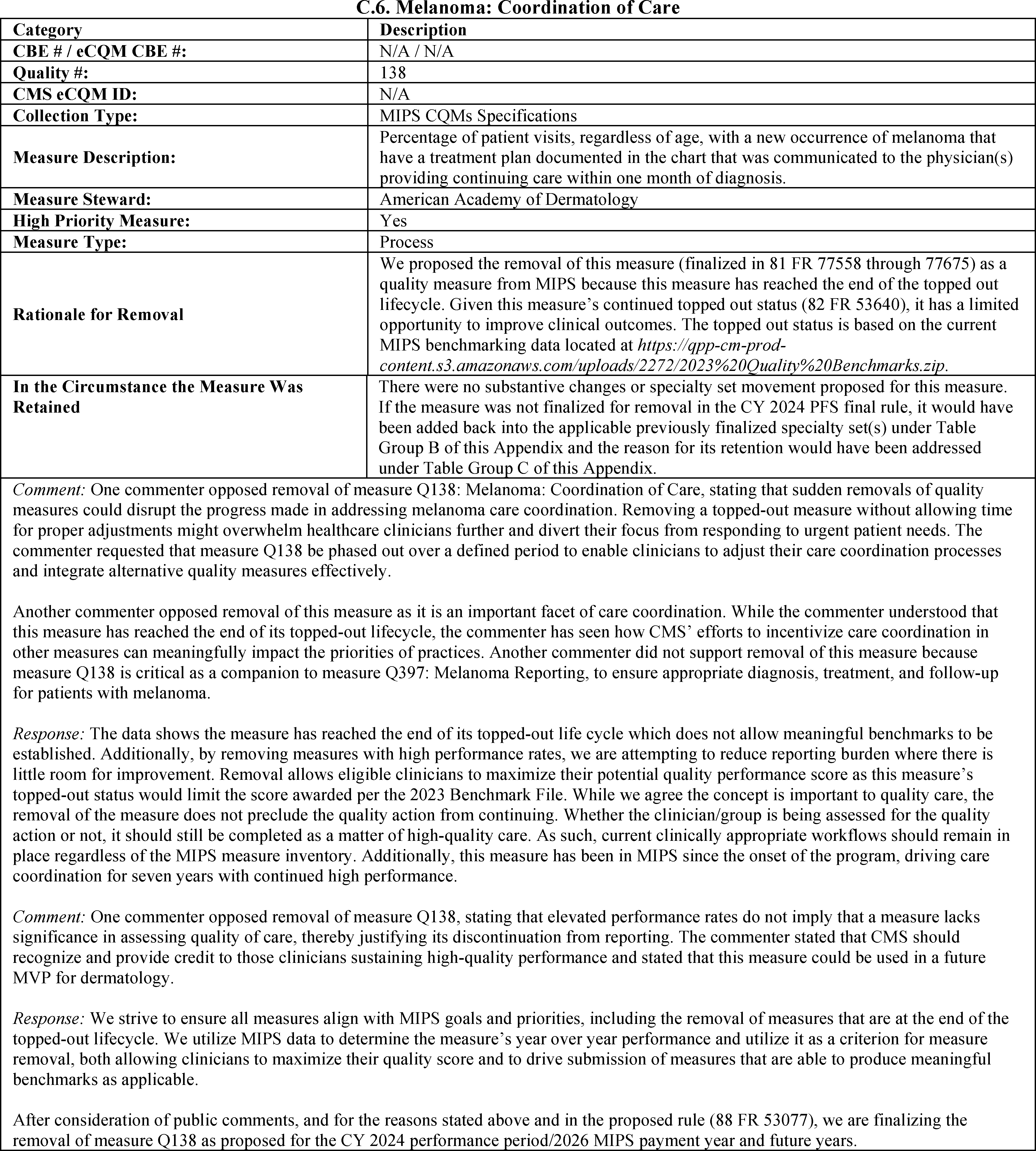 and other related documents. For the CY 2024 PFS final rule, refer to item CMS-1784-F. Readers with questions related to accessing any of the Addenda or other supporting documents referenced in this final rule and posted on the CMS website identified above should contact
