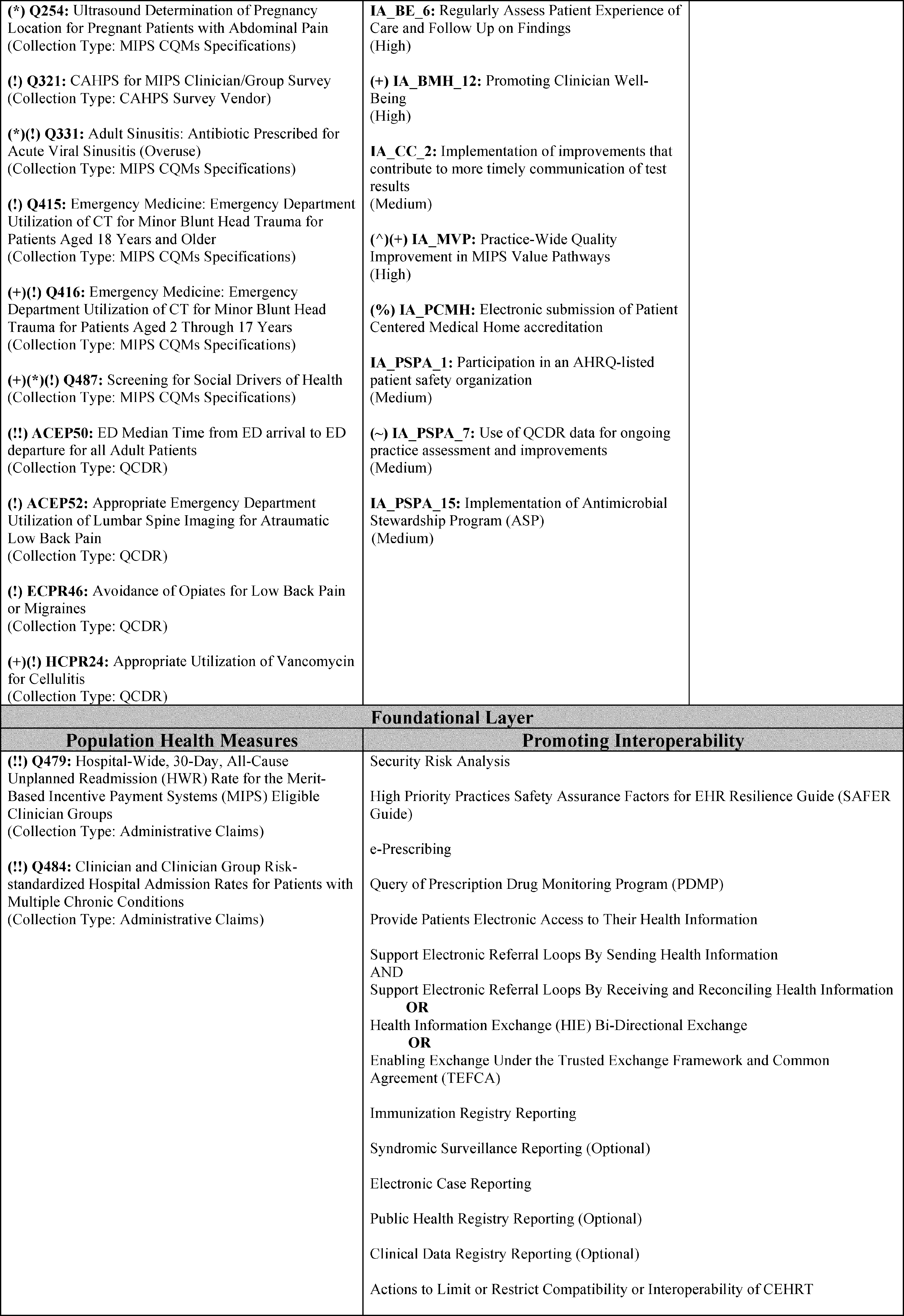 There is no data submission requirement for the quality and cost performance categories for a MIPS eligible clinician assessed under the facility-based measurement scoring methodology described in § 414.1380(e). Therefore, we would require that such clinicians report data on the Promoting Interoperability performance category (or attest to having completed an improvement activity) to prompt the baseline score for the improvement activities performance category.