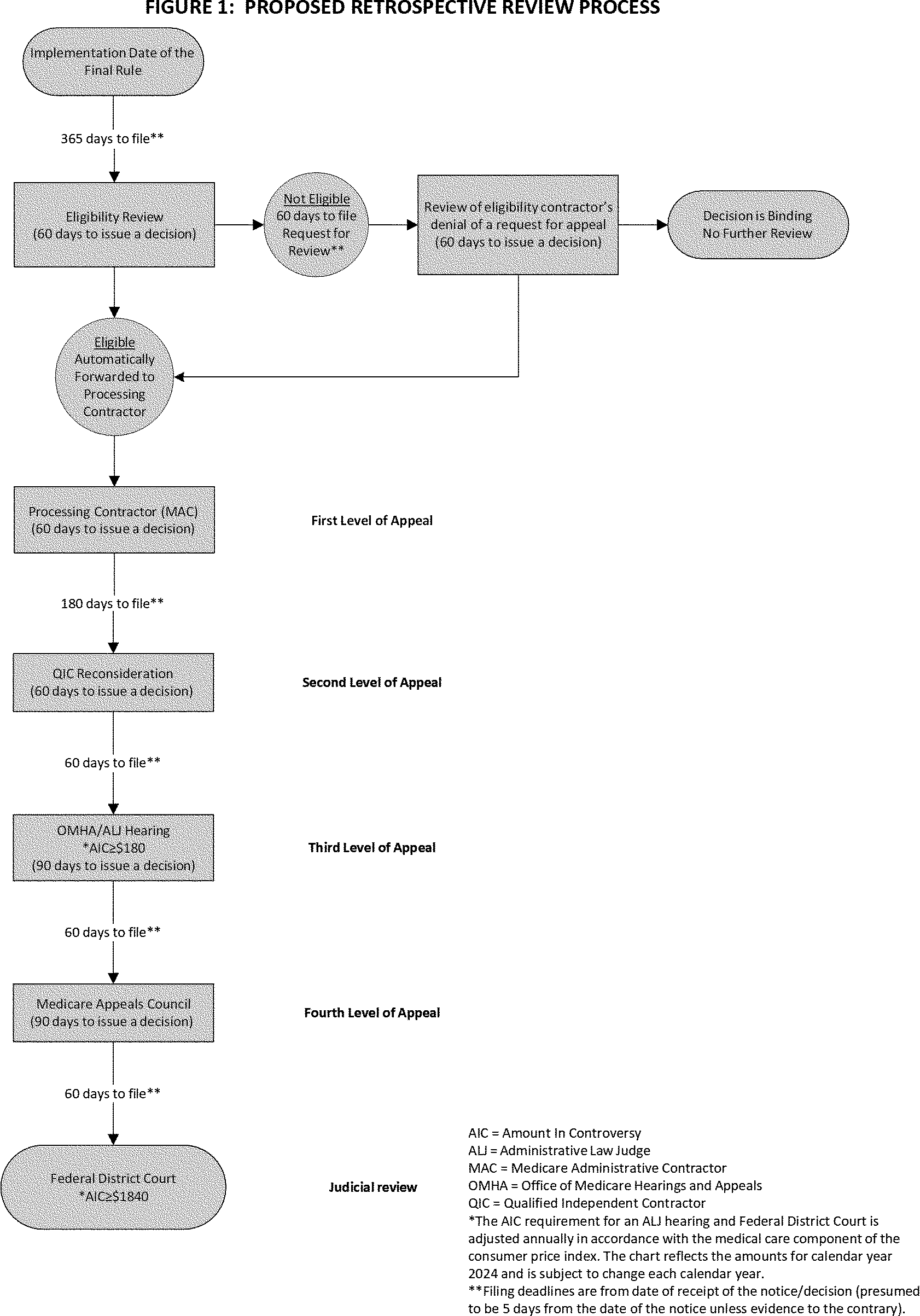 We provide more detail about the proposed procedures at each level of the administrative appeals process following this overview, and we have included flowcharts to depict the overall proposed appeals process for retrospective reviews (in Figure 1) and prospective reviews (in Figure 2).