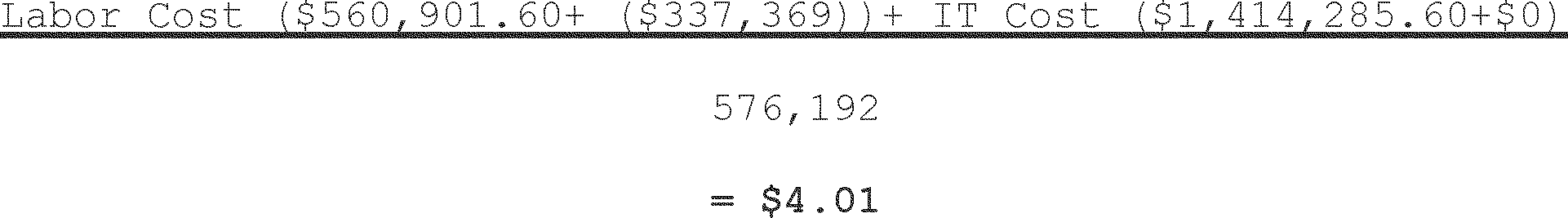 [FY 2023 Total Direct Travel and Operating Costs/(Total Regular hours + Total Overtime hours + Total Holiday hours) ($50,219,960/18,687,290)] = $2.69 + ($2.69 * 2.3% (2024 Inflation) = $2.75.