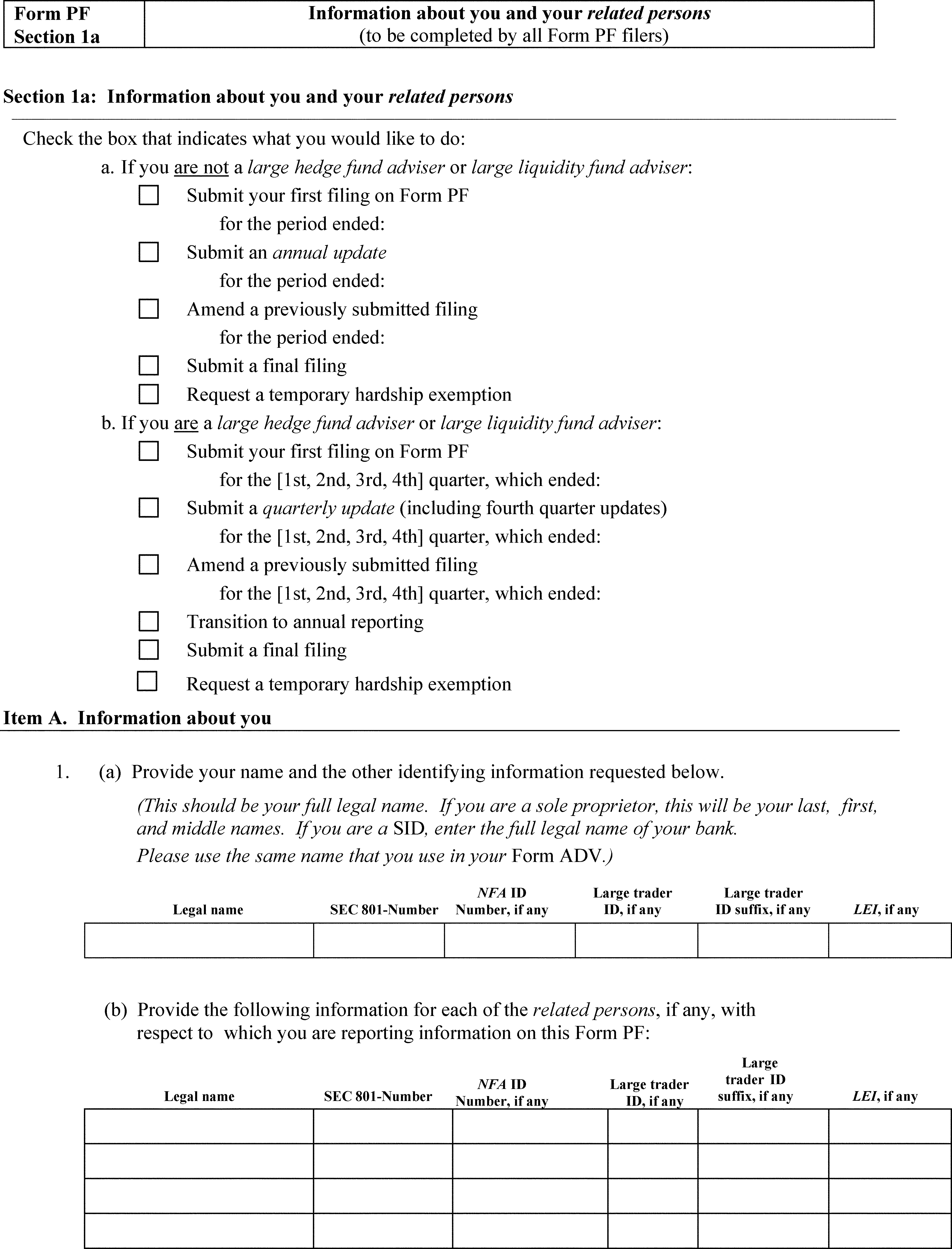 1. Amendments to Section 1a of Form PF—Identifying Information