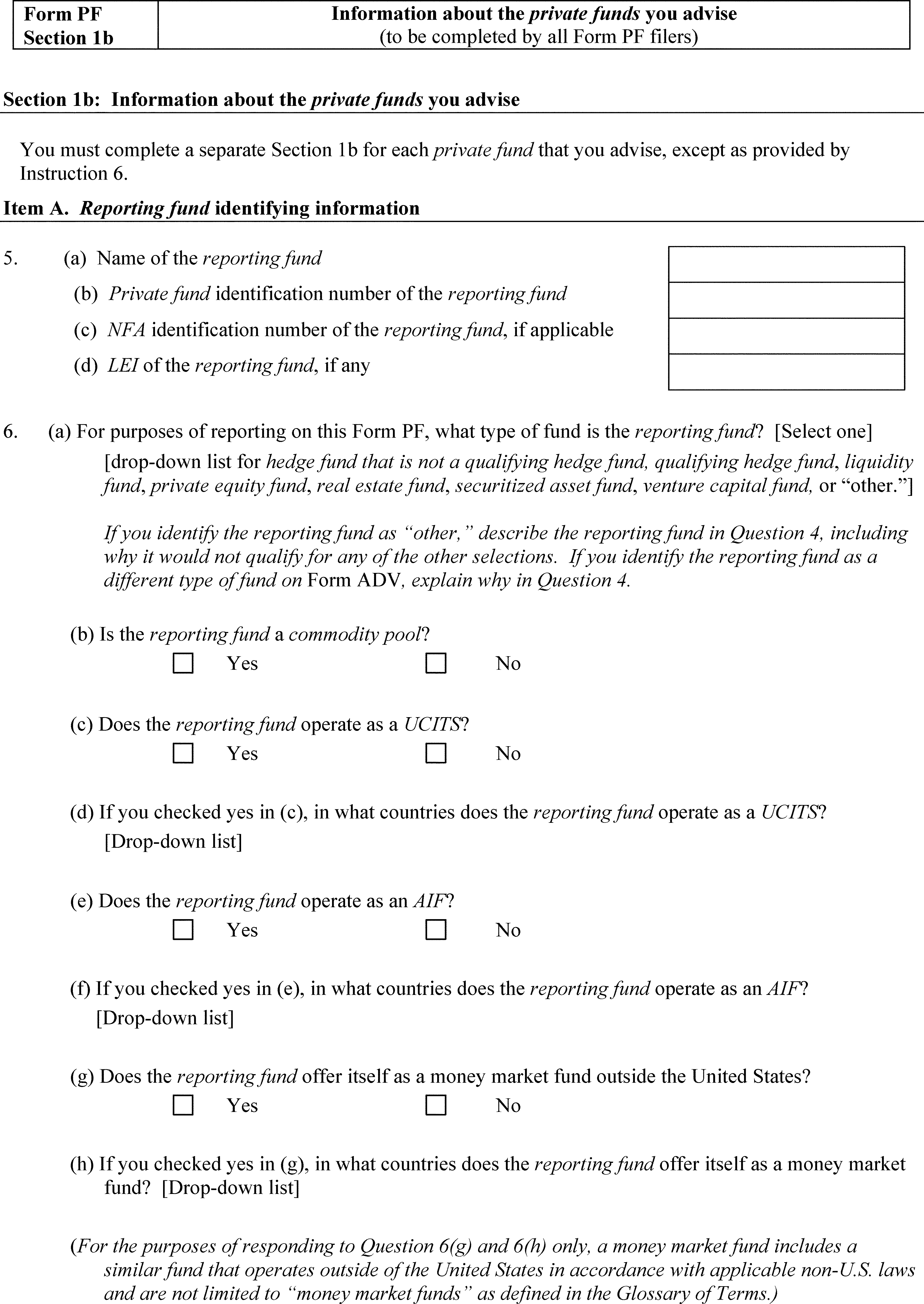2. Amendments to Section 1b of Form PF—Concerning All Private Funds