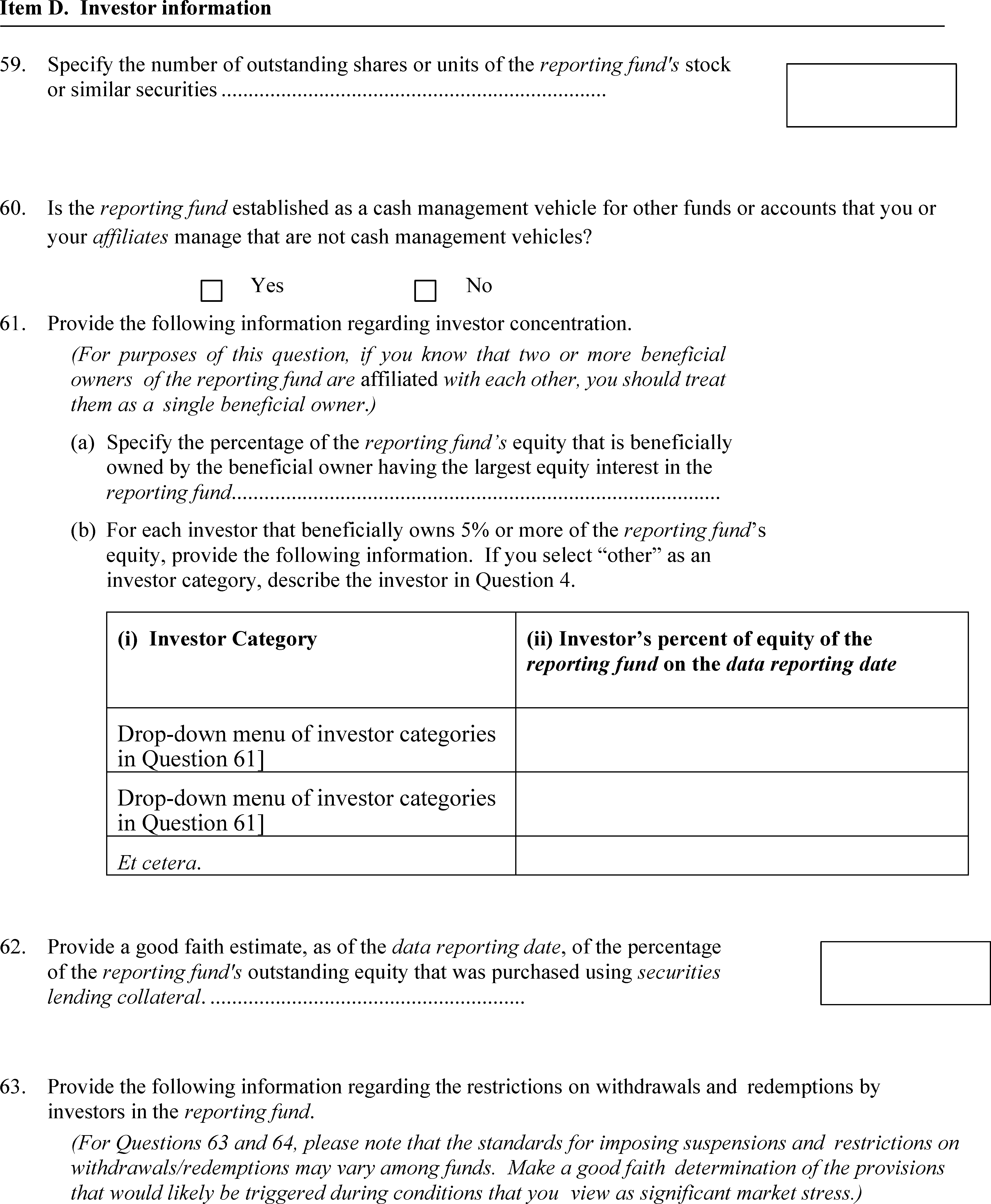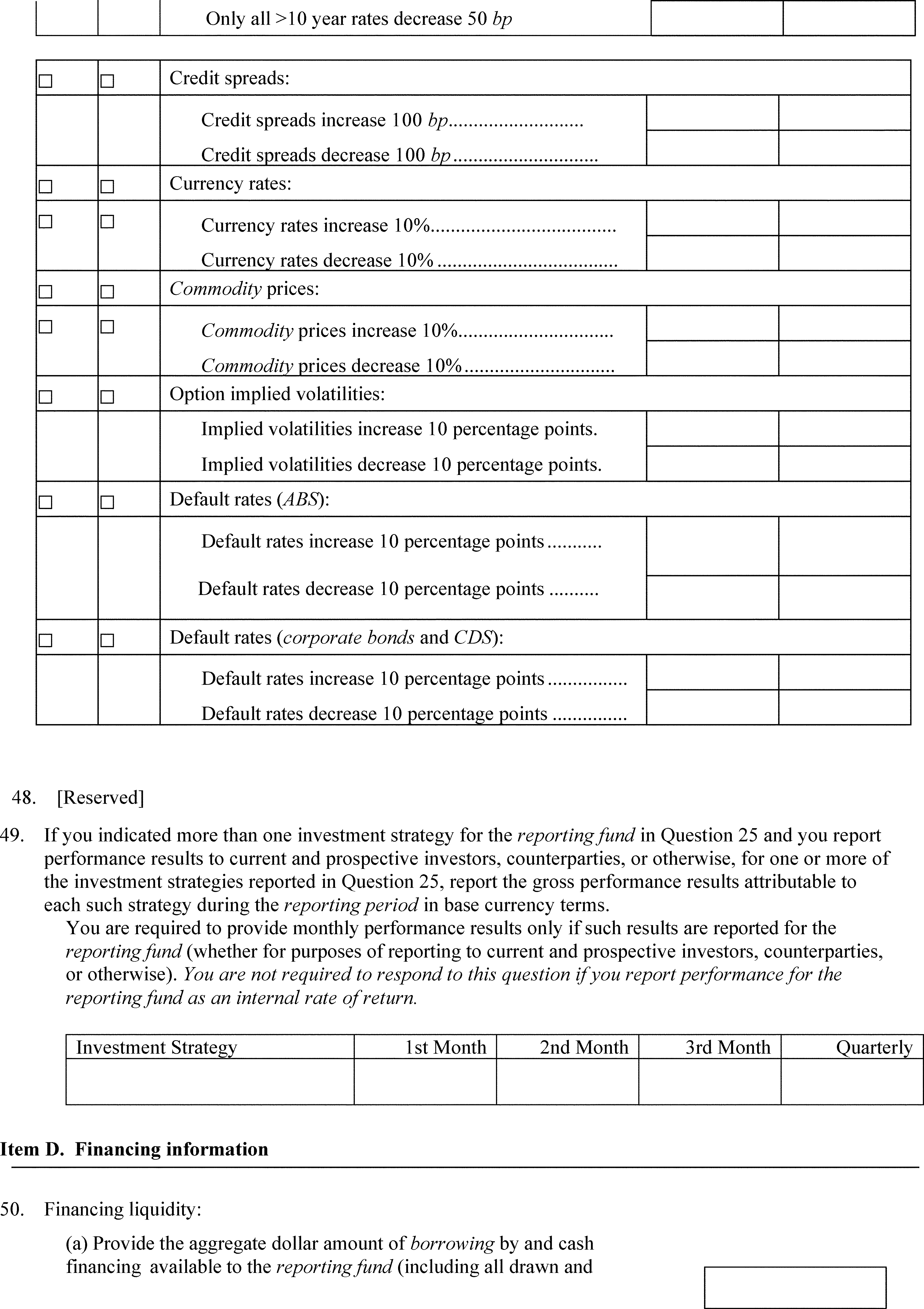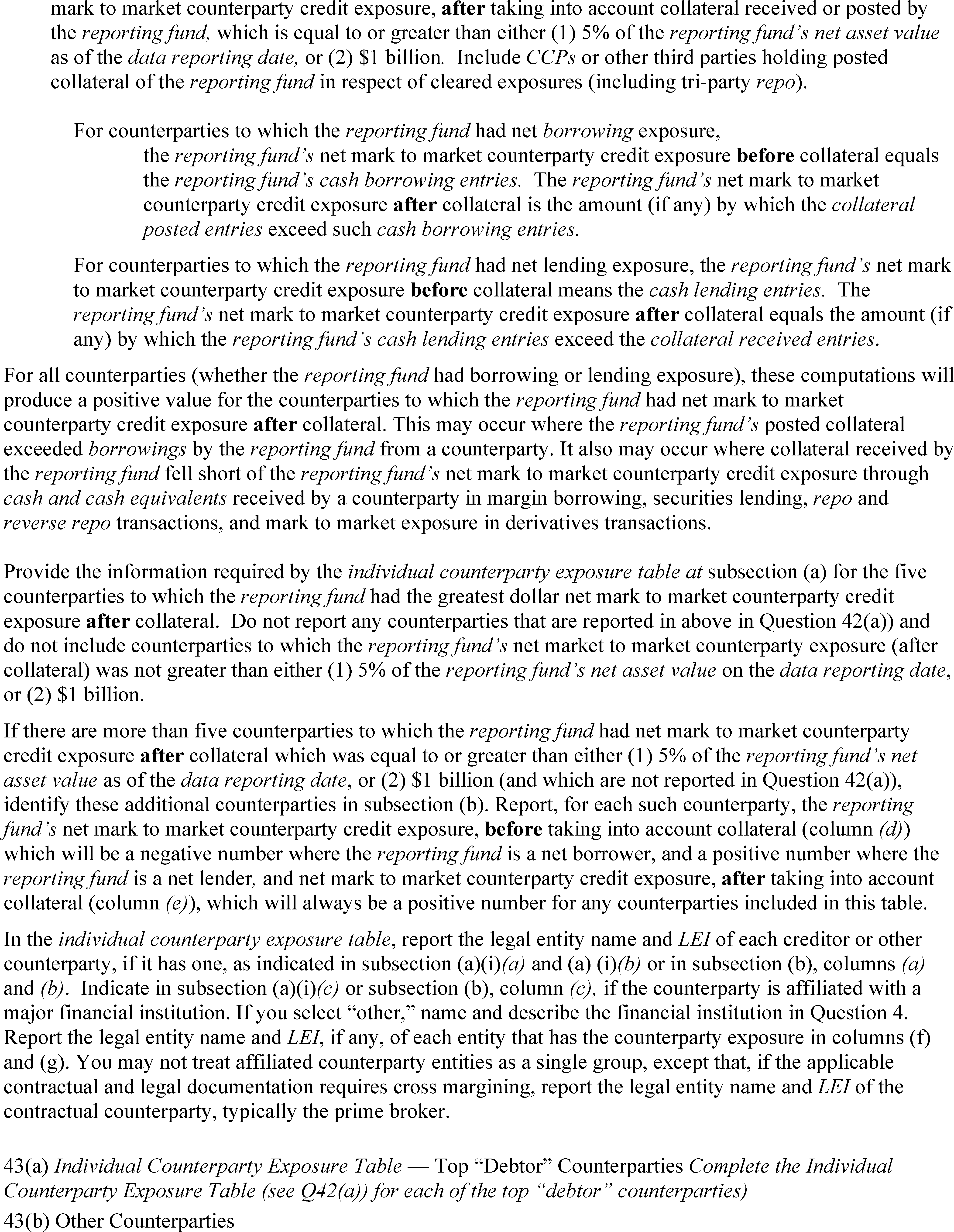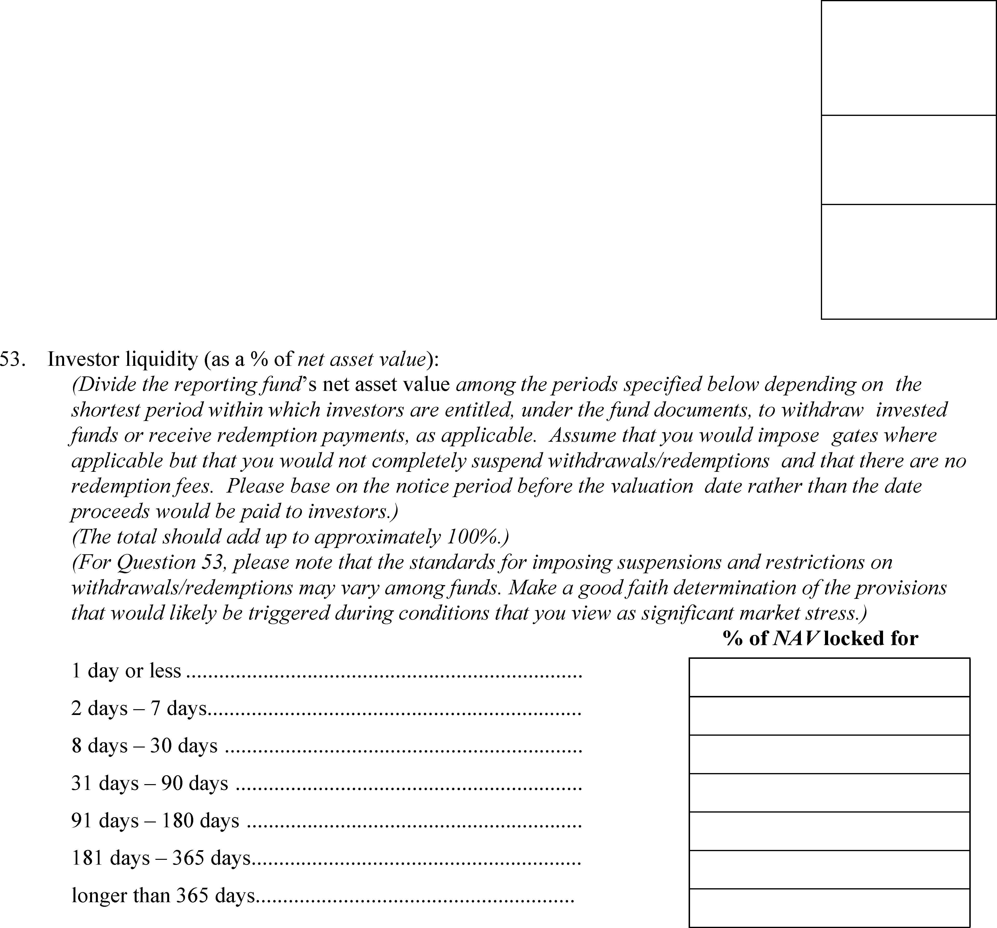 Other revisions that will provide this benefit include the reporting of withdrawal and redemption rights; reporting of other inflows and outflows; more granular reporting of hedge fund strategies; more granular reporting of hedge fund counterparty exposures including identification of counterparties representing a fund's greatest exposure; and more granular reporting of hedge fund trading and clearing mechanisms.