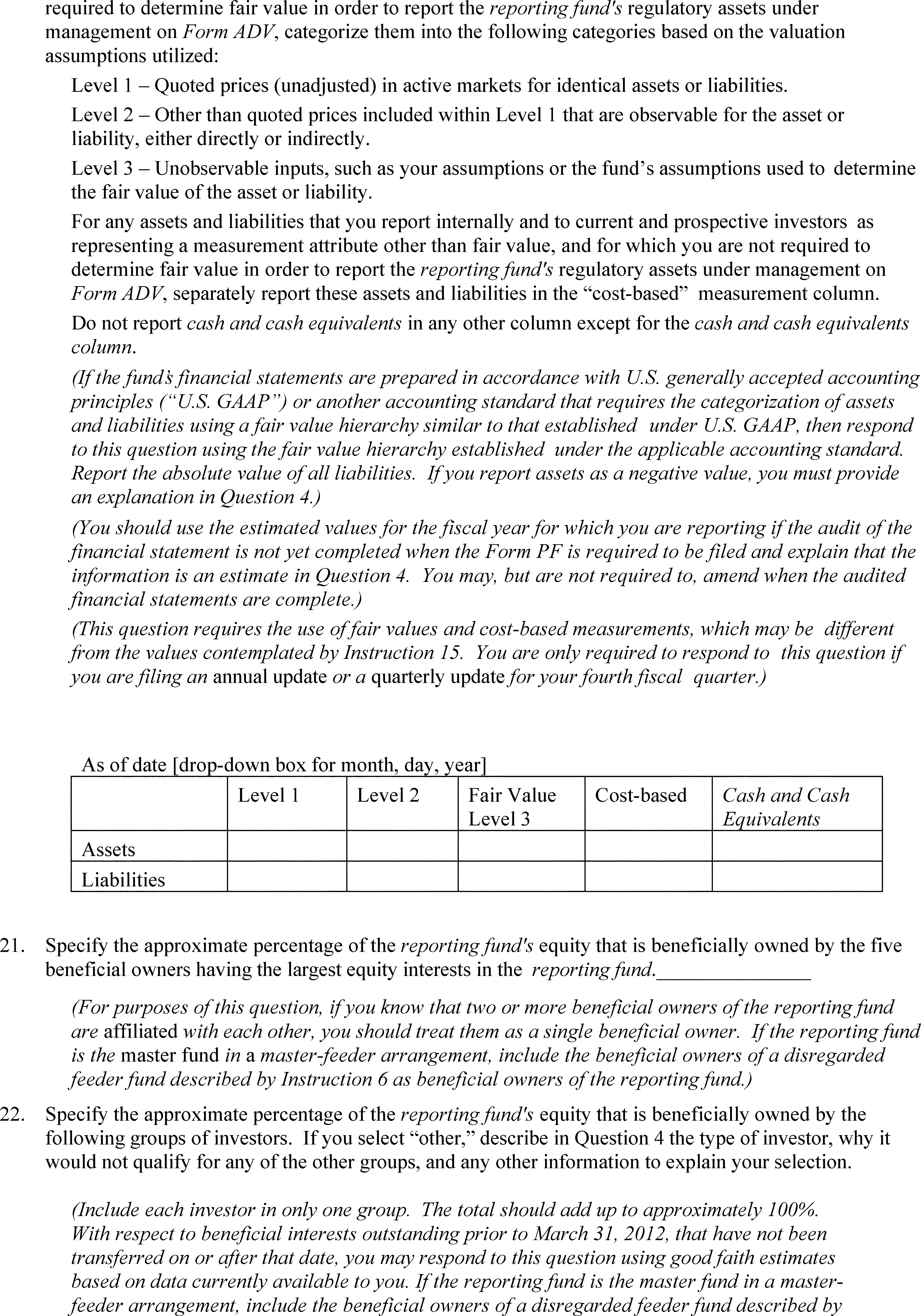 ). In a change from the proposal, we are modifying the instructions to specify how a feeder fund is required to treat its equity in the master fund for the purpose of determining its reporting threshold and responding to certain questions.