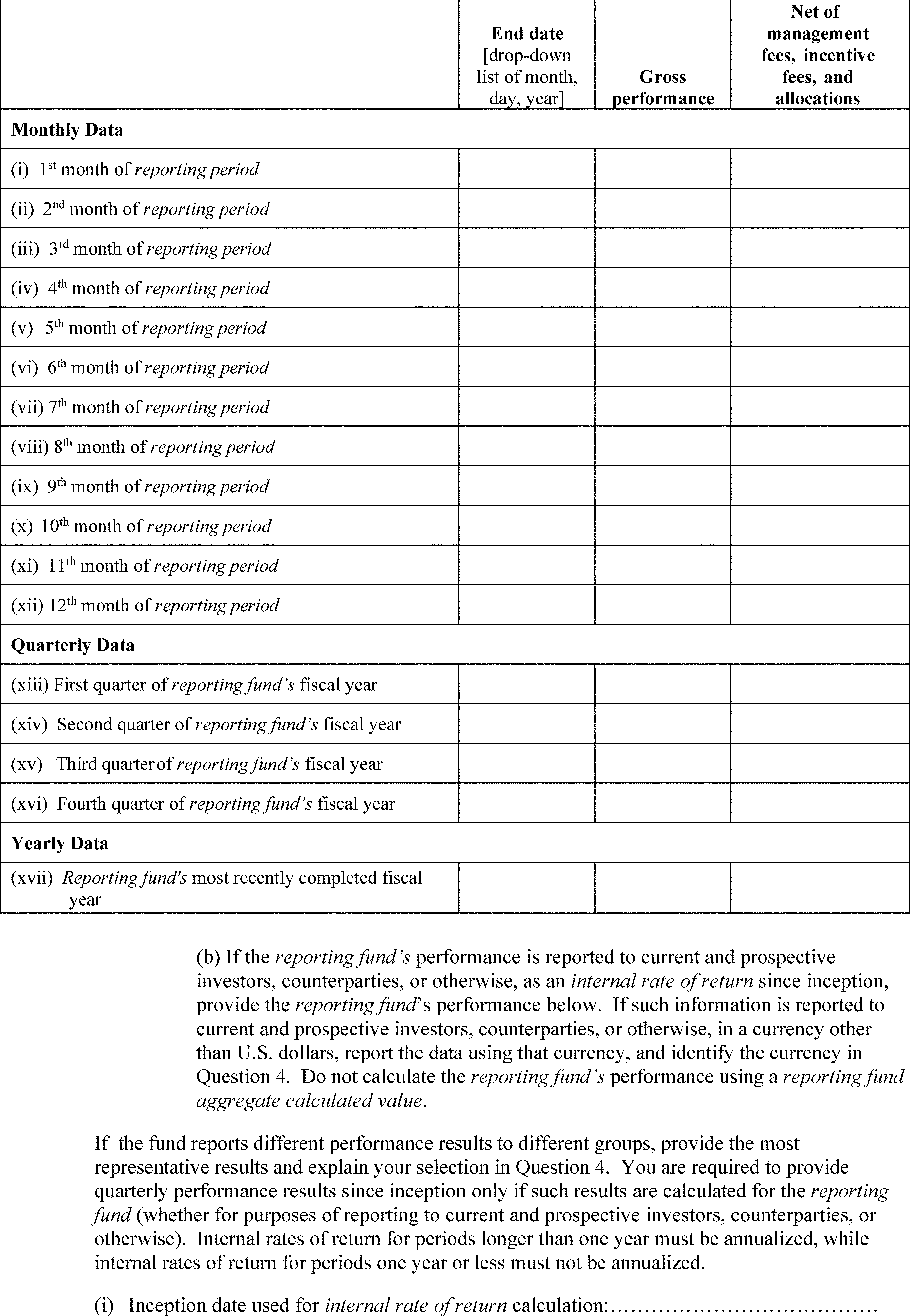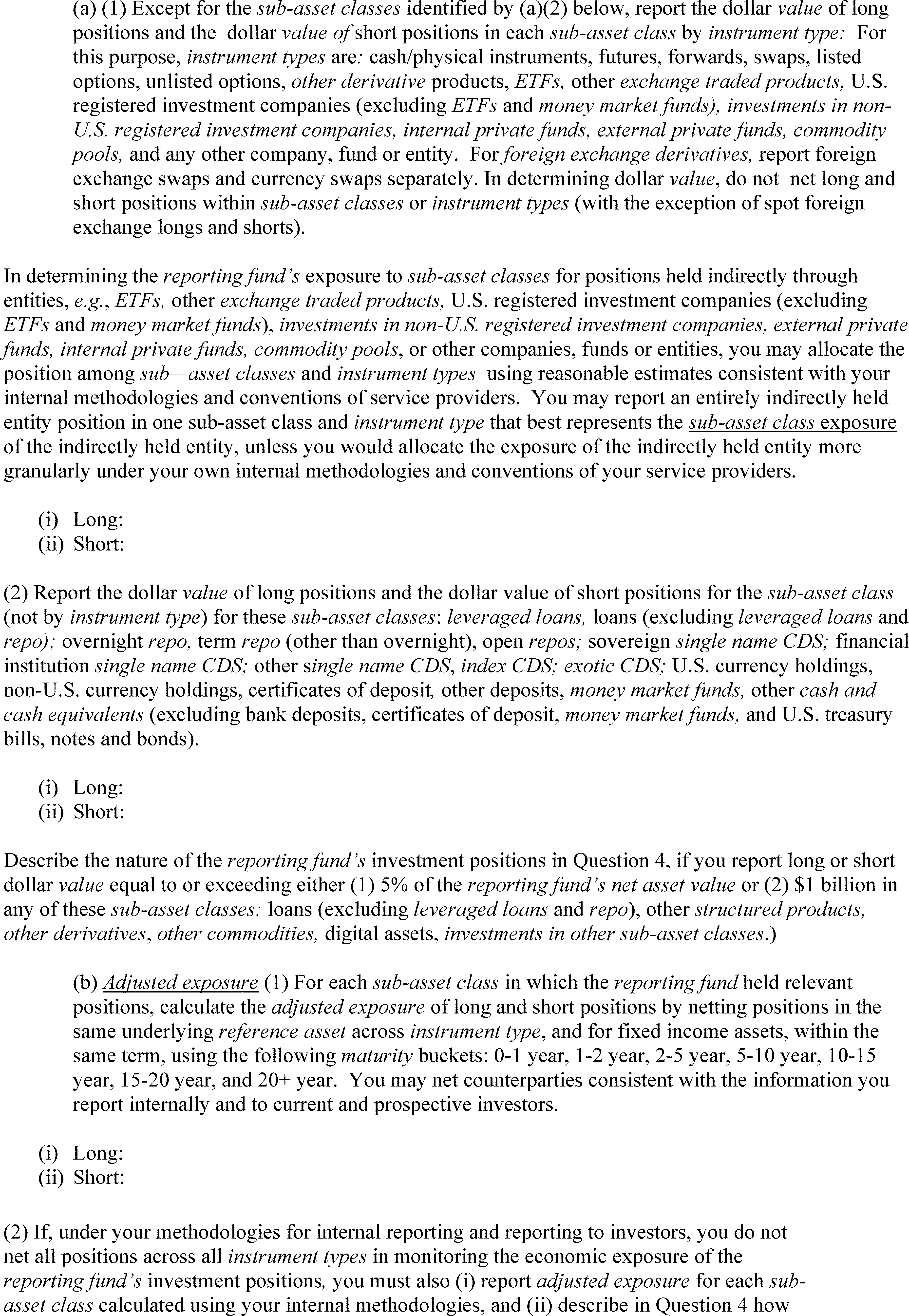 We are adopting, largely as proposed, amendments to require large hedge fund advisers to report more granular information about the reporting fund's investment exposure, open and large position reporting, borrowing and counterparty exposure, and market factor effects. In a change from the proposal, we are not adopting a proposed question about investment performance by portfolio correlation.