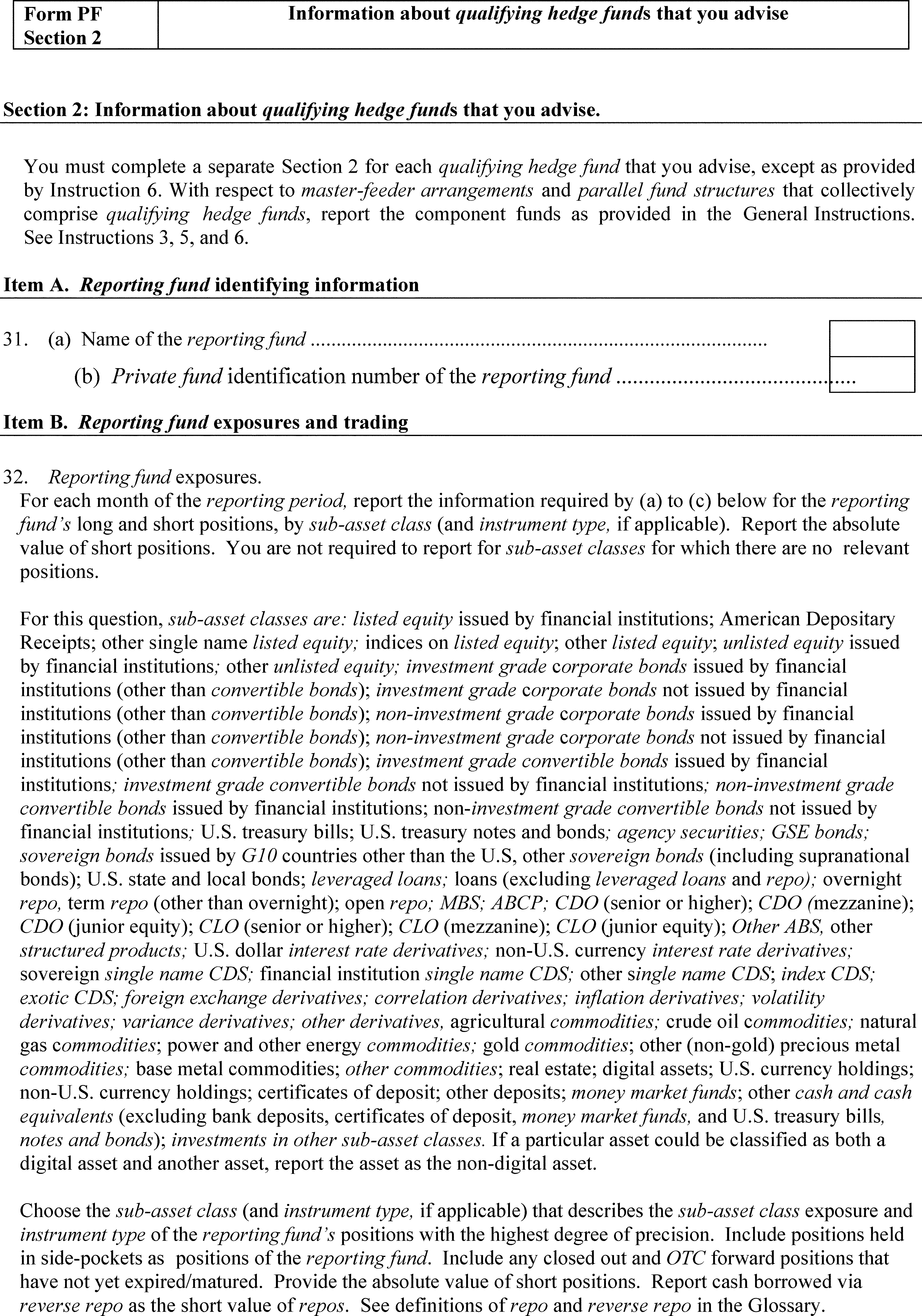 Fourth, as proposed, we are redesignating existing section 2a and 2b of Form PF as section 2, and we are adopting amendments to the new consolidated section 2, which applies to large hedge fund advisers that advise qualifying hedge funds (i.e.,