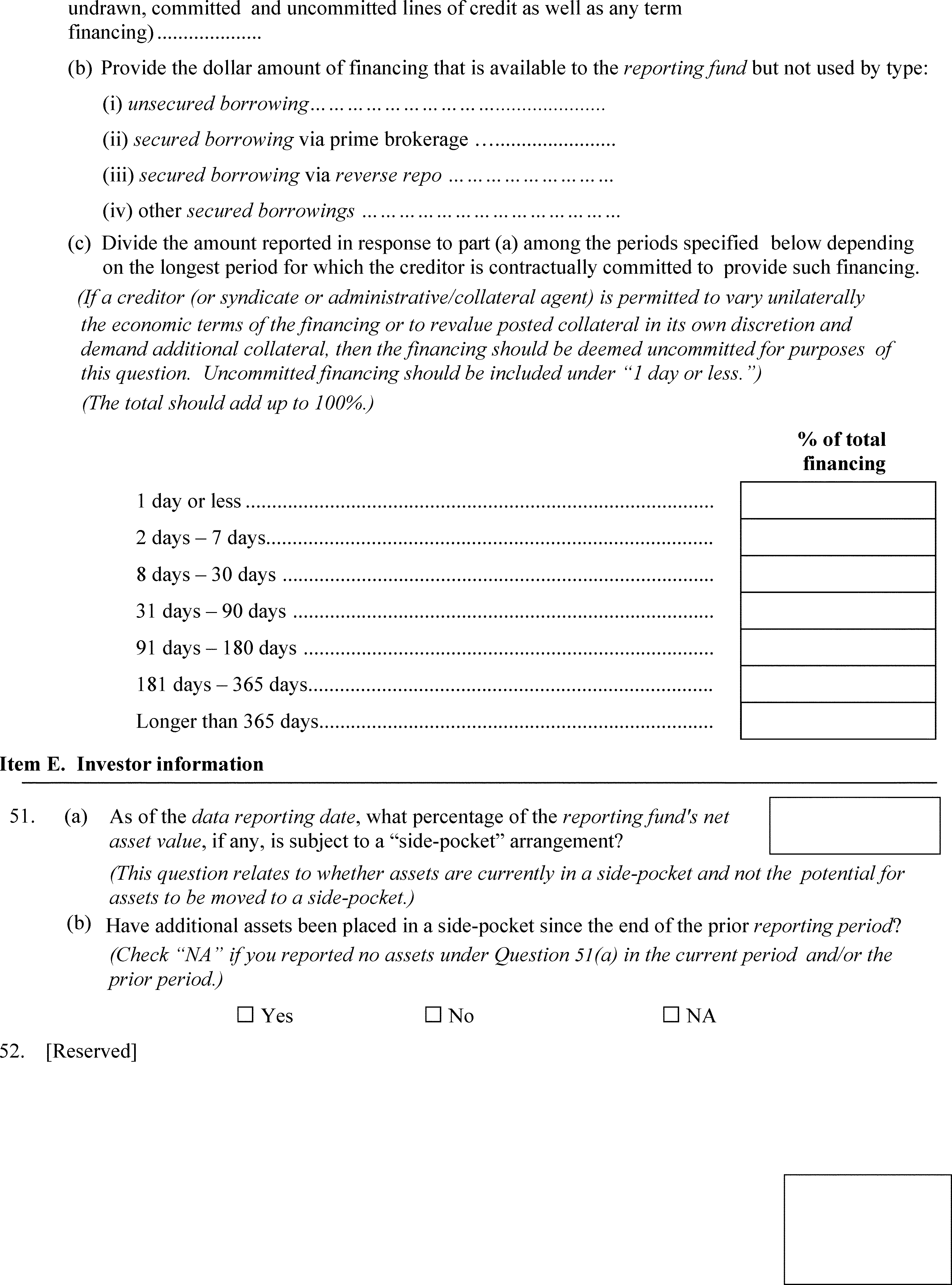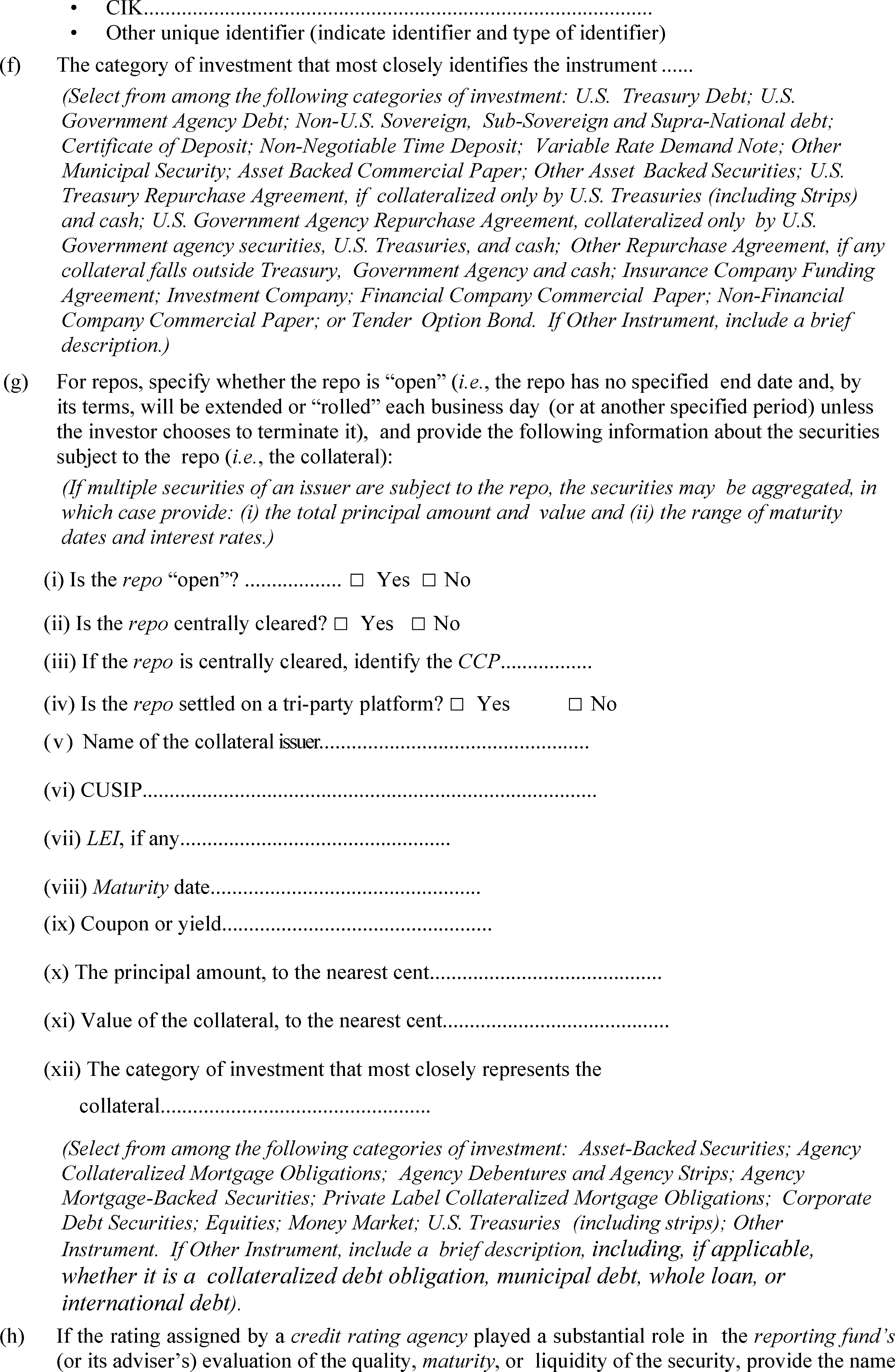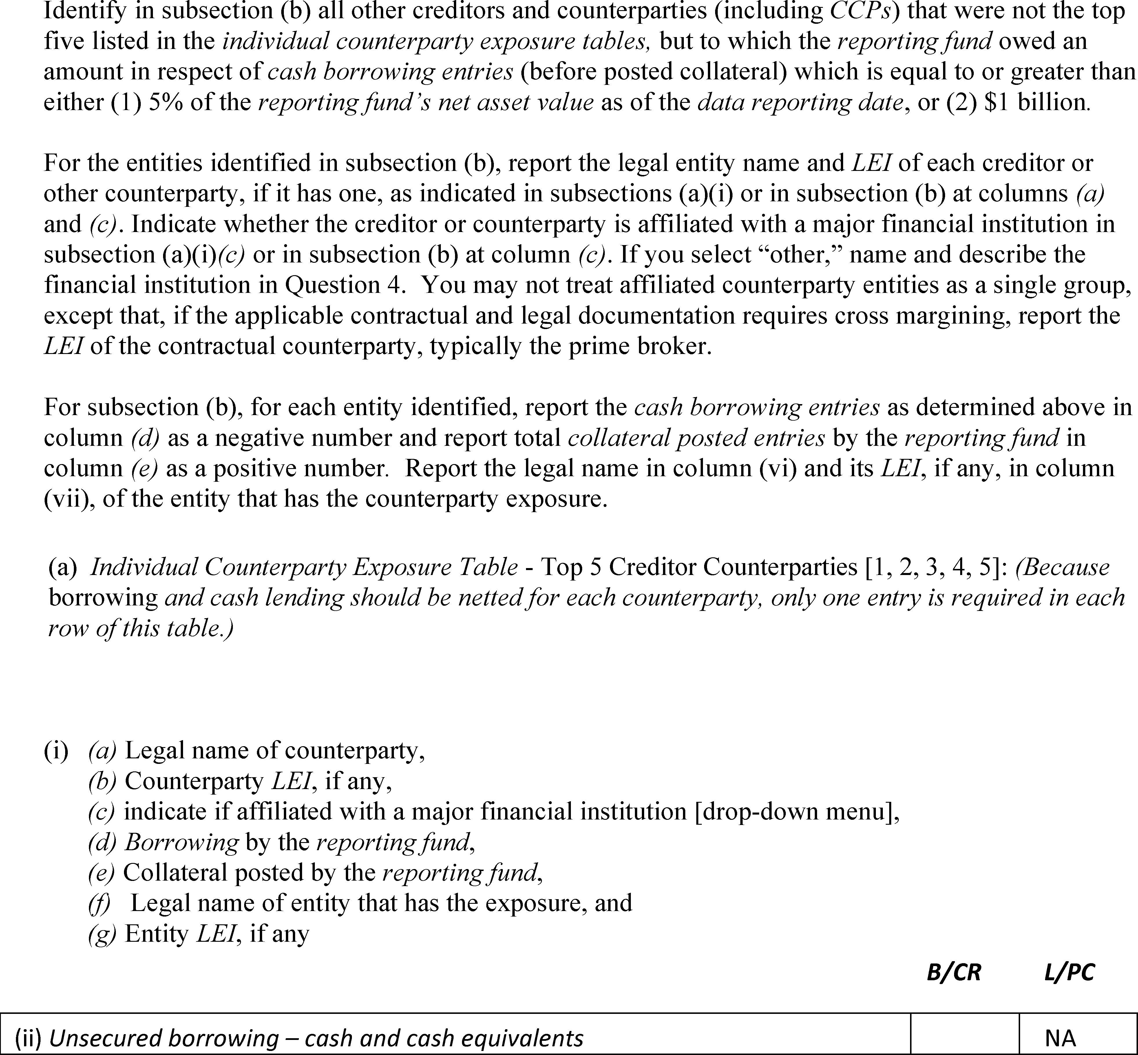 Other revisions that will provide this benefit include the amendments revising reporting of reportable sub-asset classes, including those for certain categories of listed equity securities, repos, asset-backed securities and other structured products, derivatives, and cash and commodities; revising reporting of open and large position reporting; revising reporting of counterparty exposures including reporting of significant counterparties; revising currency reporting; requiring significant country and industry exposure; requiring additional reporting on fund portfolio risk profiles; requiring more granular reporting of investment performance by strategy; amending reporting of portfolio liquidity; and amending reporting of financing liquidity.
