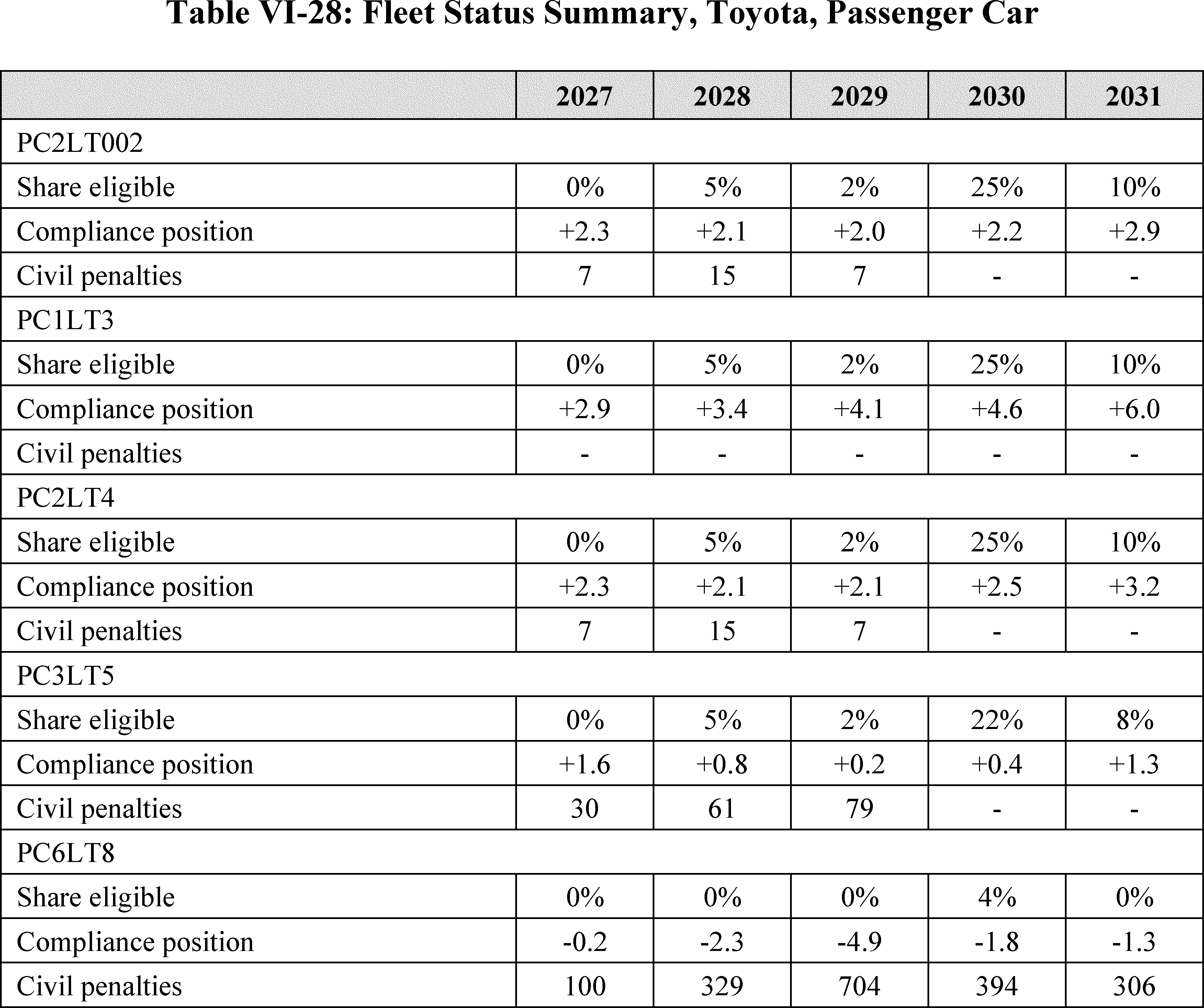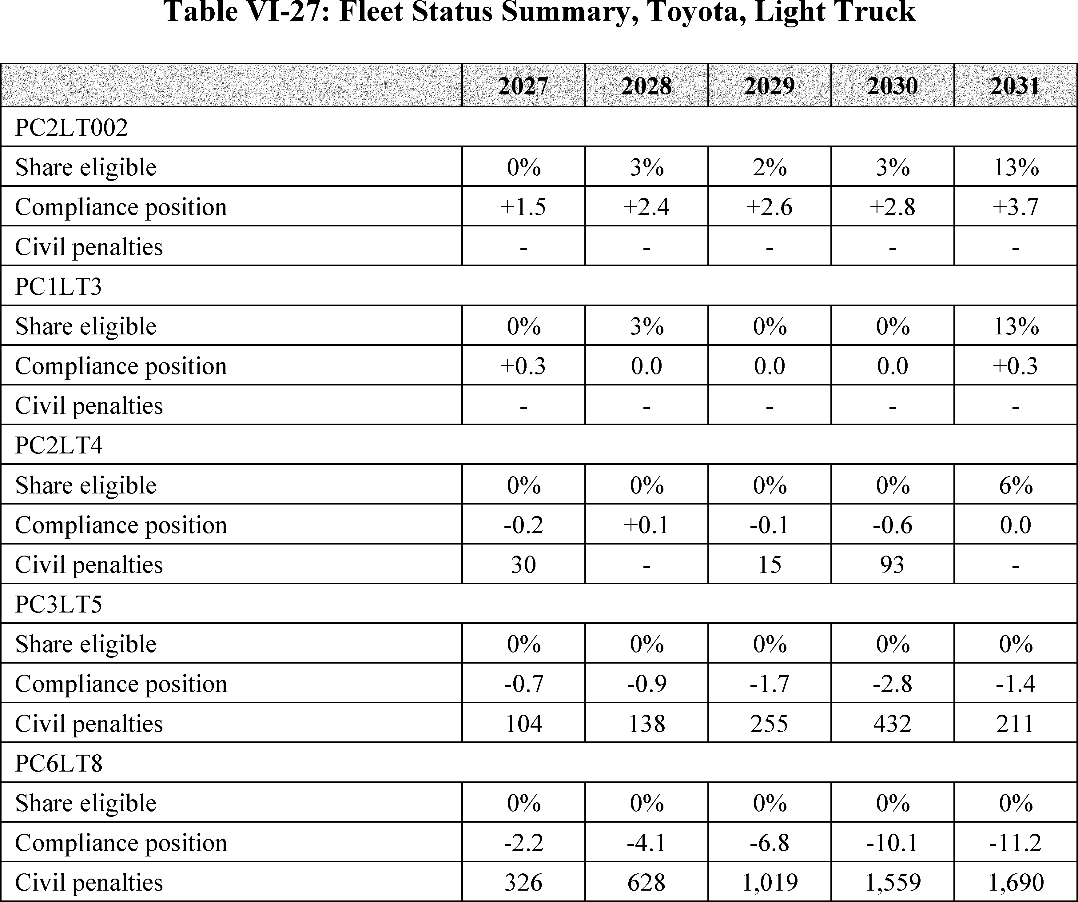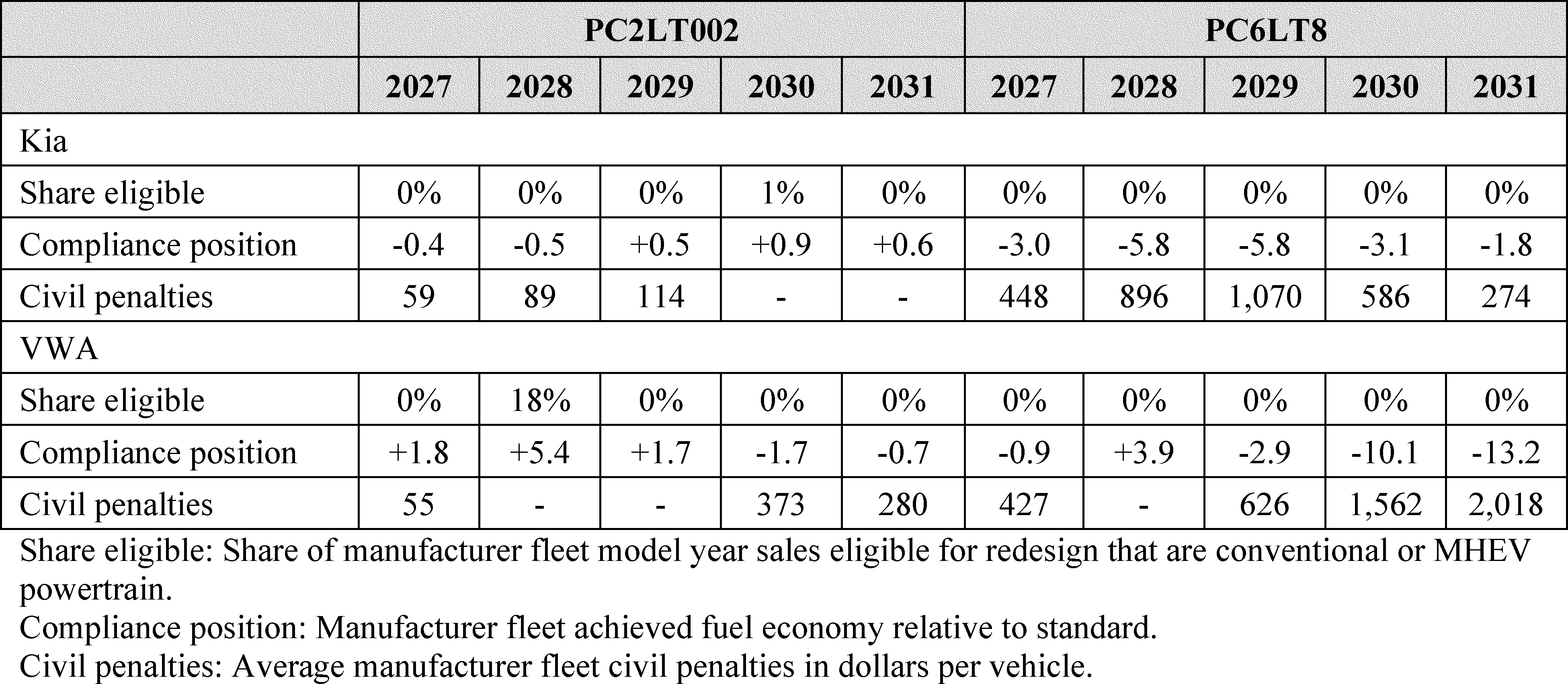 NHTSA, on behalf of the Department of Transportation (DOT), is finalizing Corporate Average Fuel Economy (CAFE) standards for passenger cars and light trucks that increase at a rate of 2 percent per year for passenger cars in model years (MYs) 2027-31, 0 percent per year for light trucks in model years 2027-28, and 2 percent per year for light trucks in model years 2029-31. NHTSA is also finalizing fuel efficiency standards for heavy-duty pickup trucks and vans (HDPUVs) for model years 2030-32 that increase at a rate of 10 percent per year and model years 2033-35 that increase at a rate of 8 percent per year.