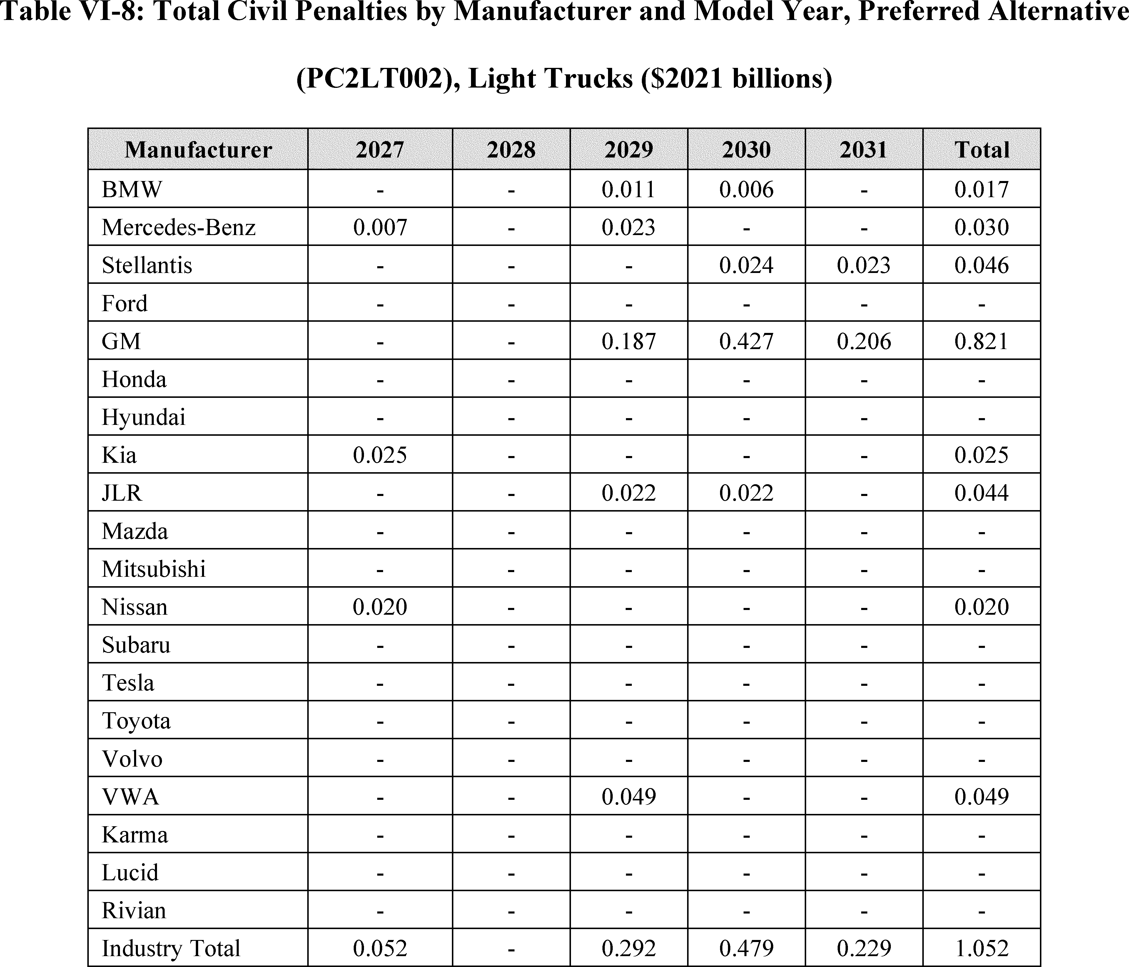 See 49 U.S.C. 32912(b) and 49 CFR 578.6(h)(2). For MYs before 2019, the penalty is $5.50; for MYs 2019 through 2021, the civil penalty is $14; for MY 2022, the civil penalty is $15; for MY 2023, the civil penalty is $16.