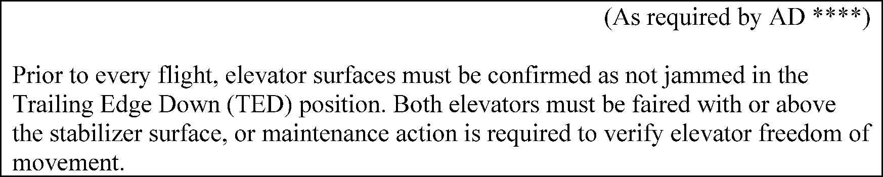 This proposed AD would require revising the “Certificate Limitations” section of the existing AFM to include a procedure to confirm elevator surfaces are not jammed in the TED position.