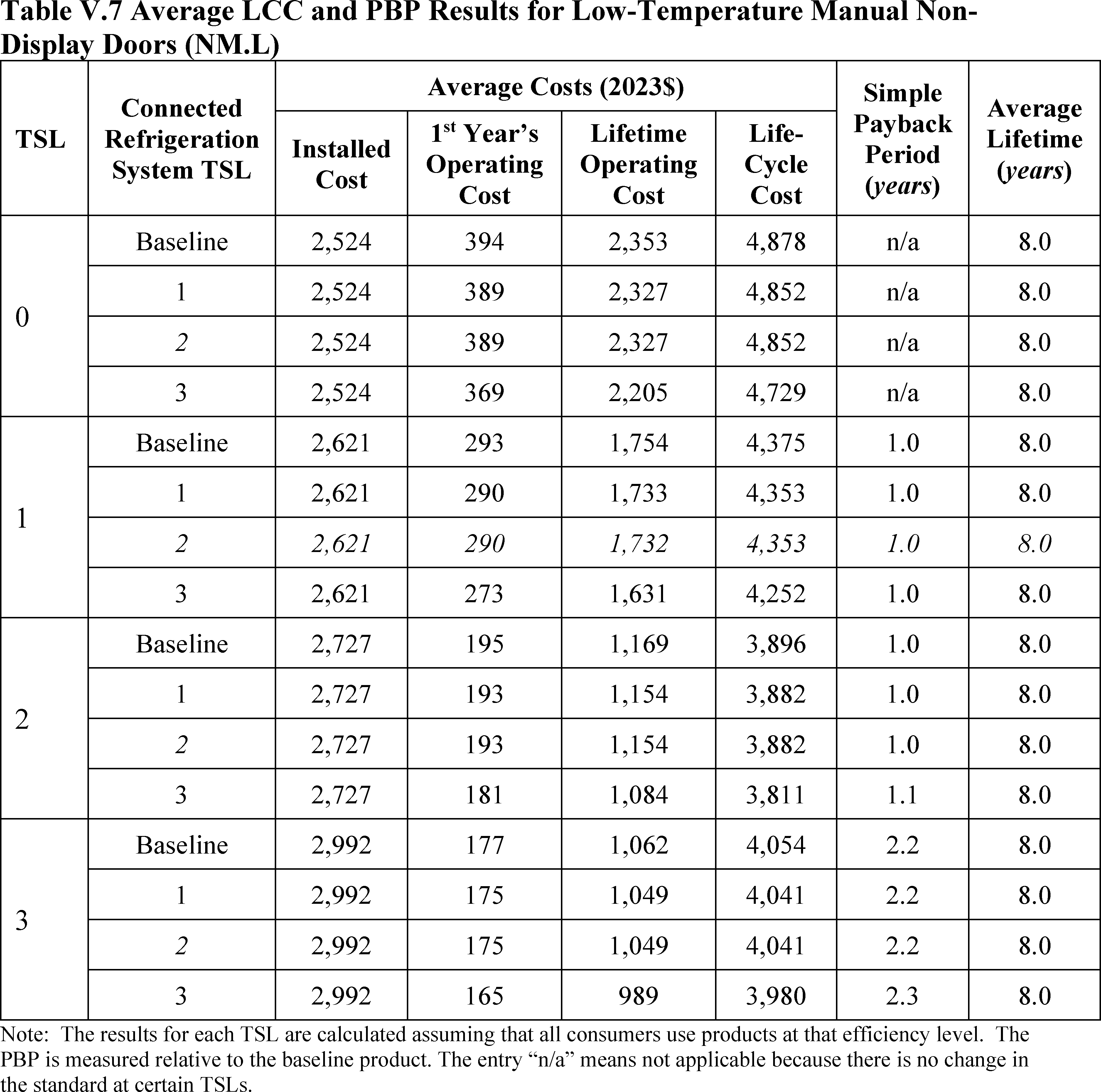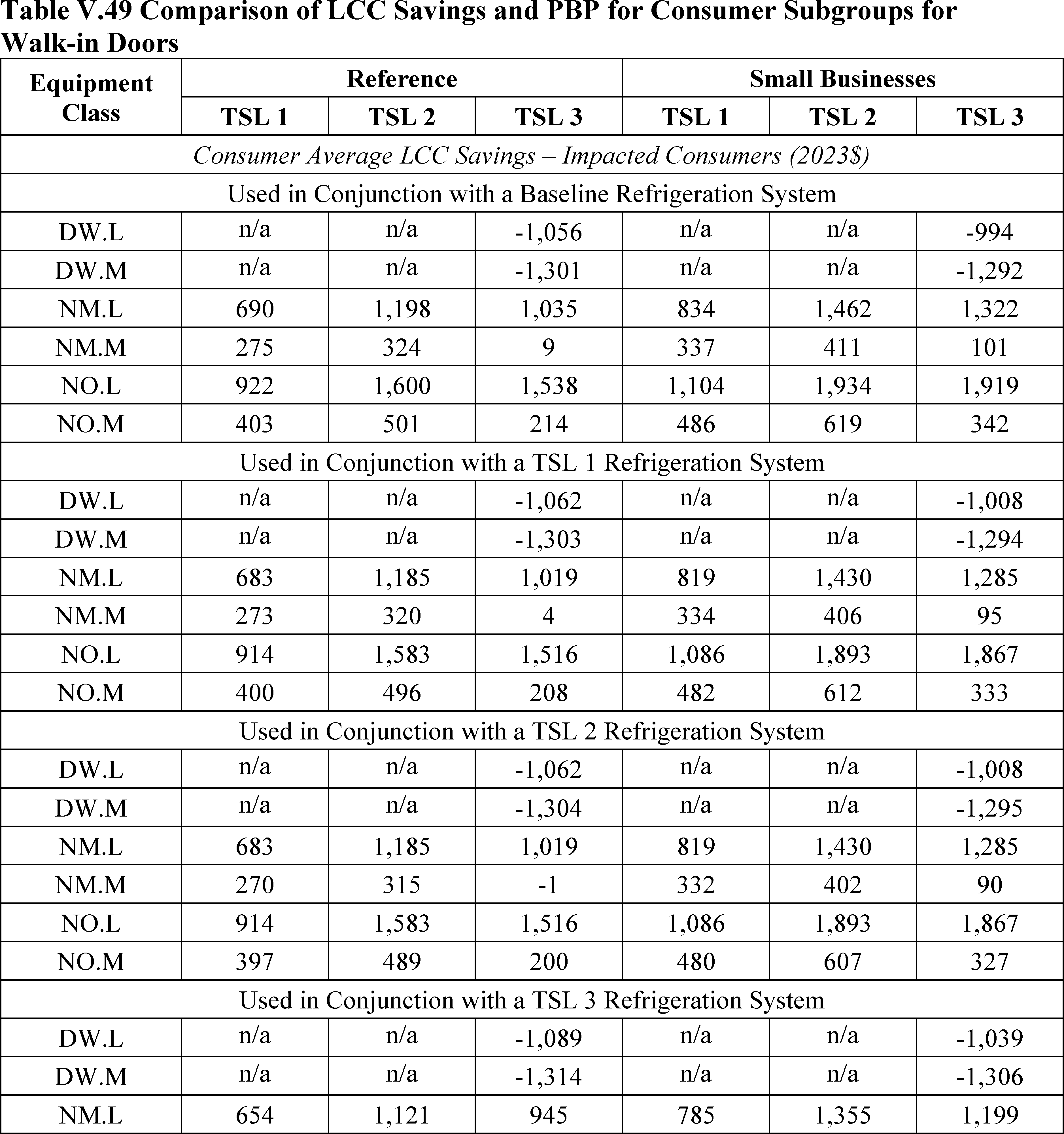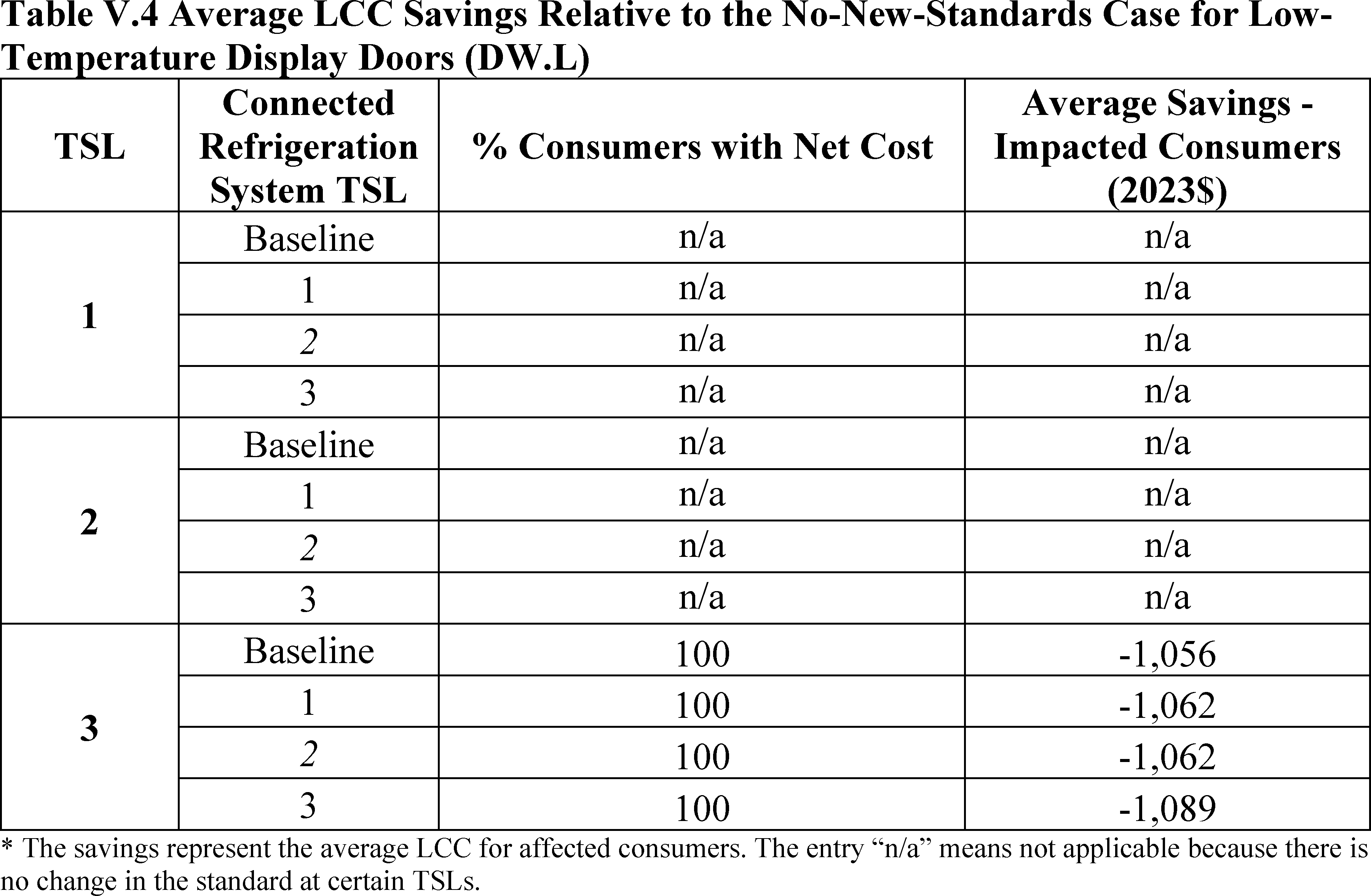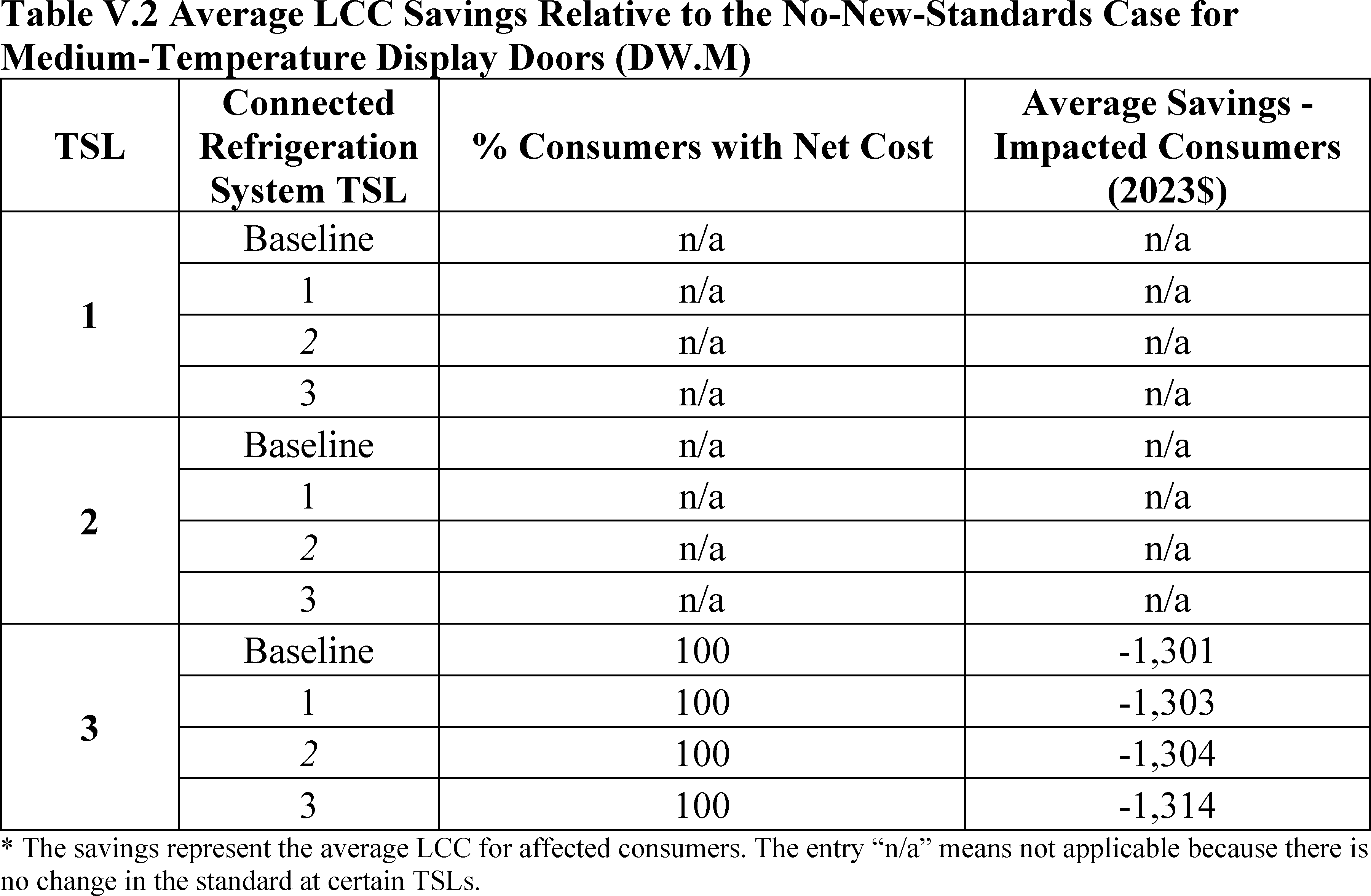 In installations where the lifetime of the non-display door is reduced as compared to the no-new-standards case, the consumer would bear additional replacement costs that would outweigh the savings in operating costs when considering the same service lifetime as a non-display door without the thermally improved frame design. This can be seen in Table IV.50 where the consumer LCC savings is negative for all non-display doors at TSL 2 or TSL 3.