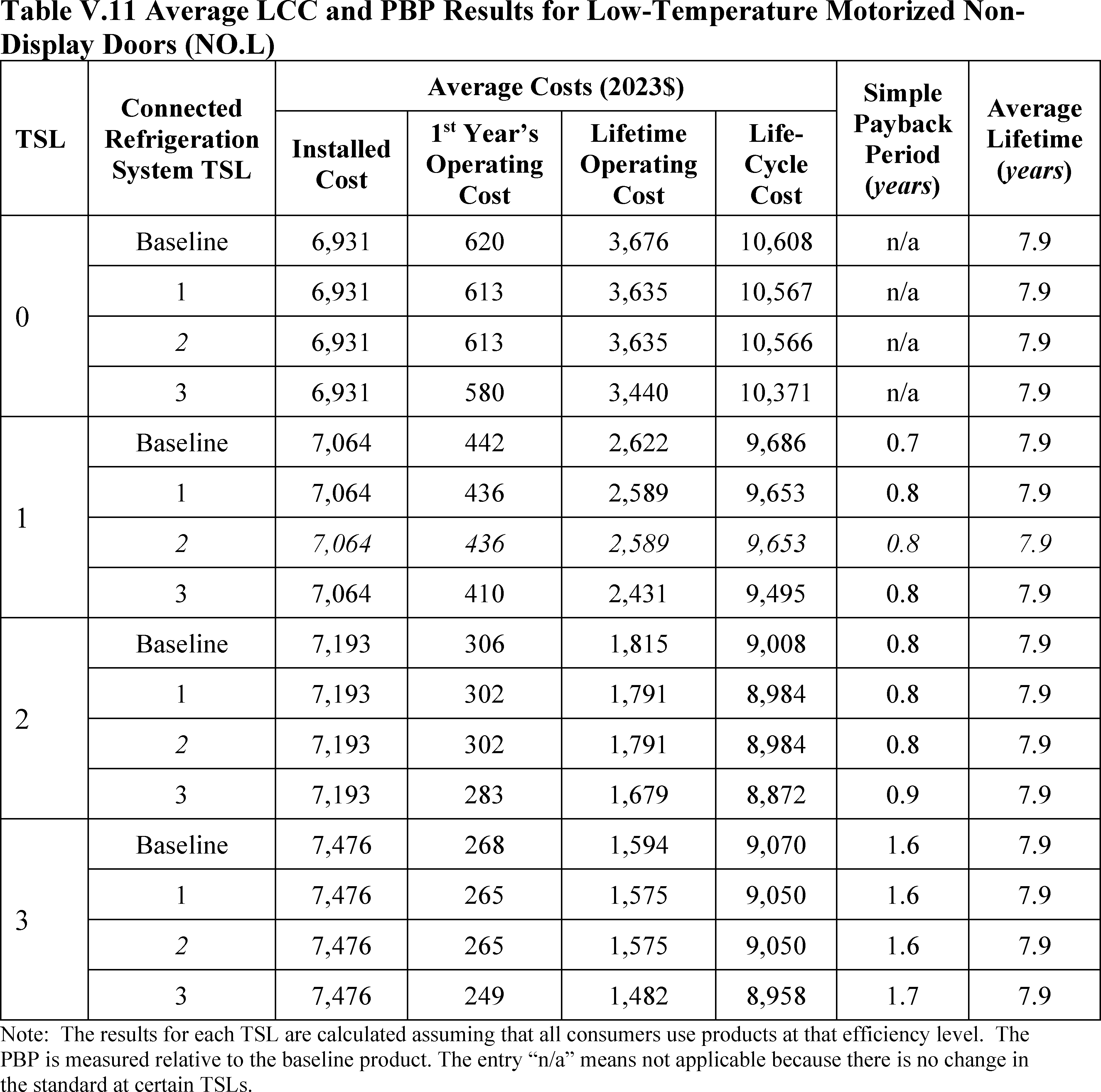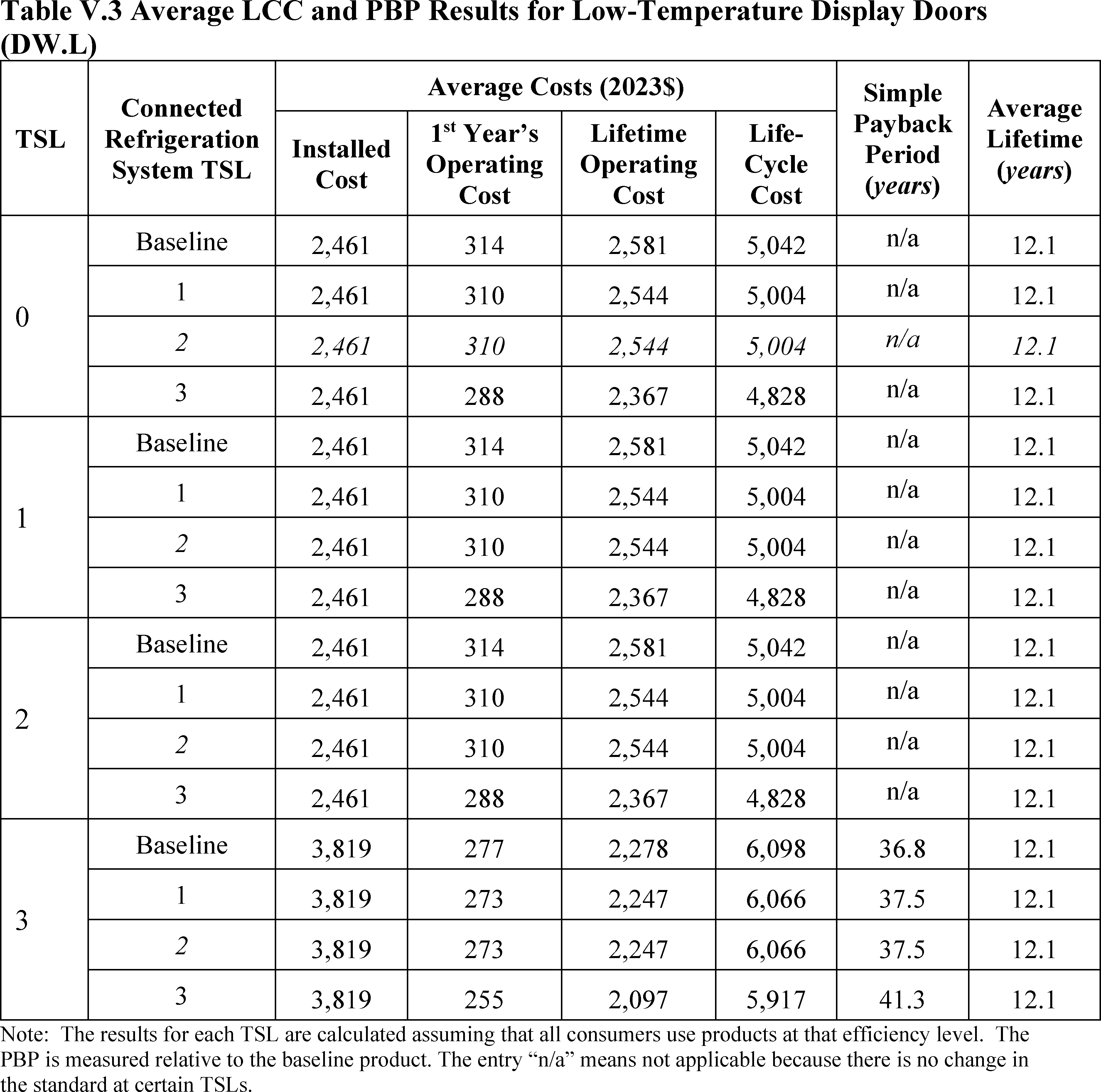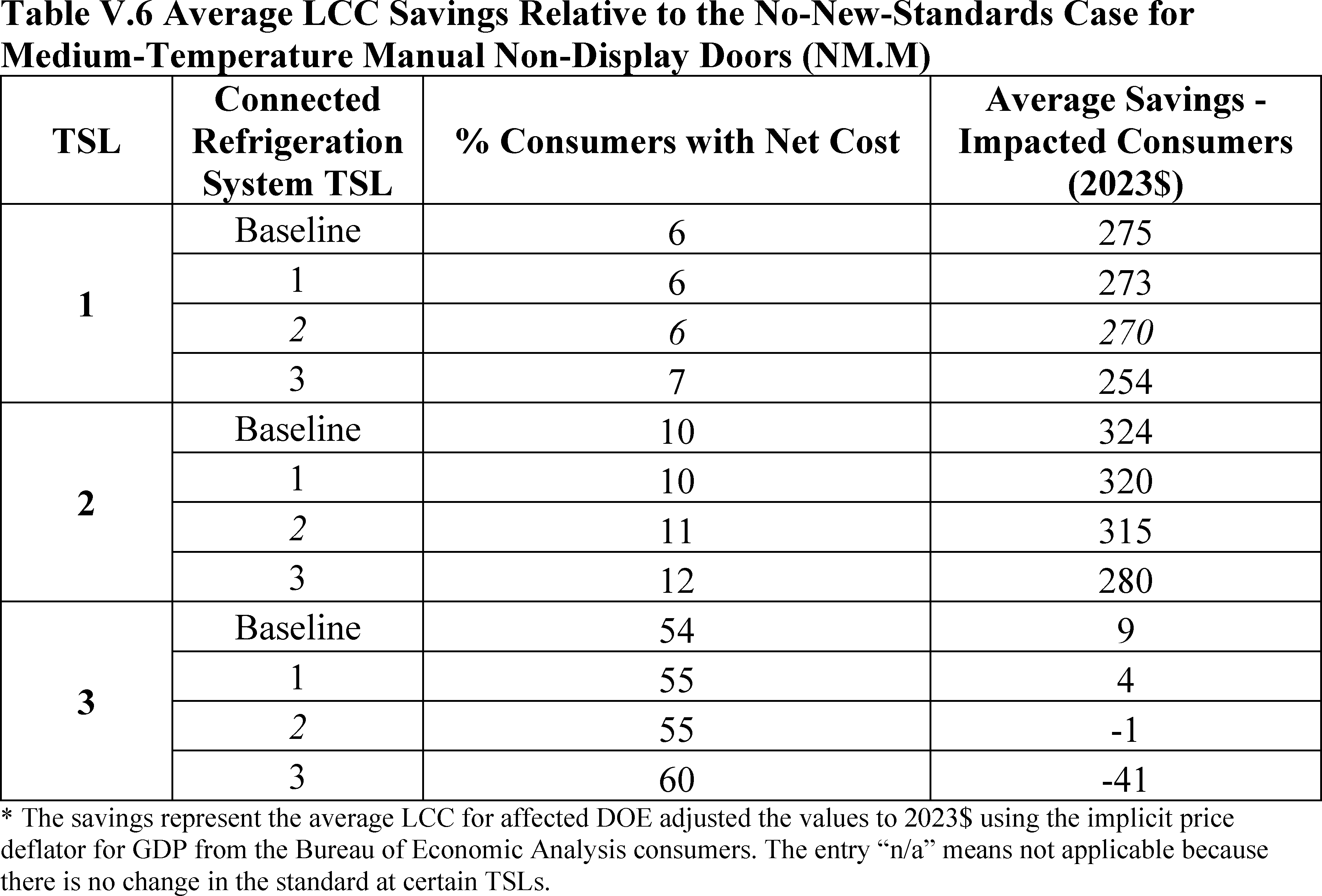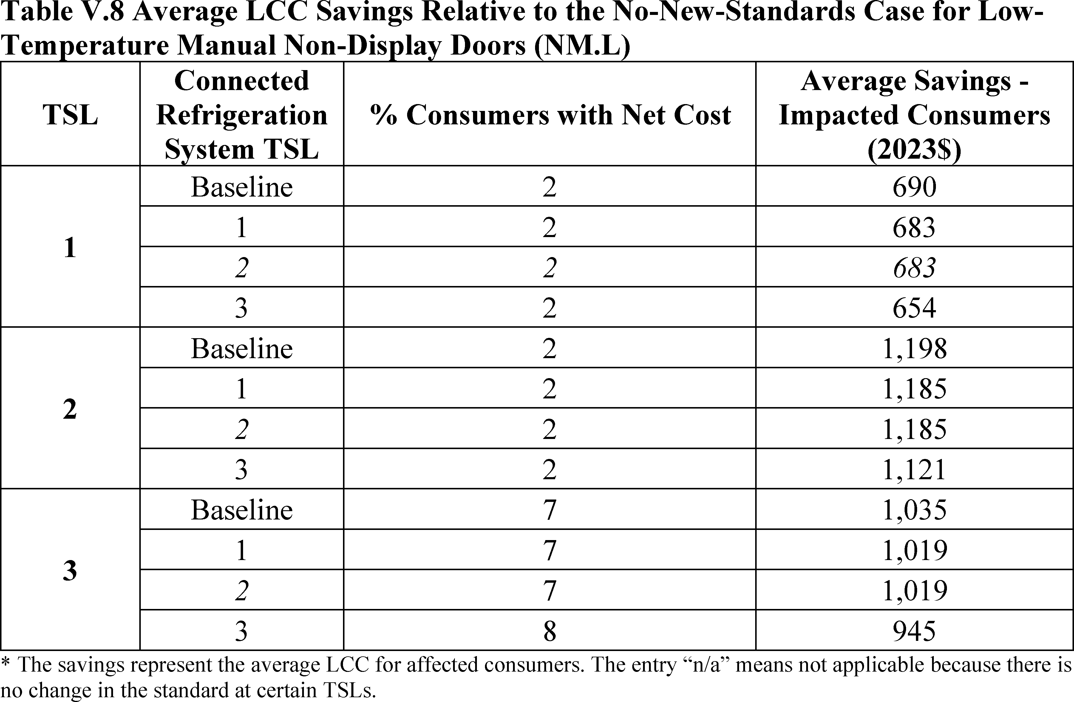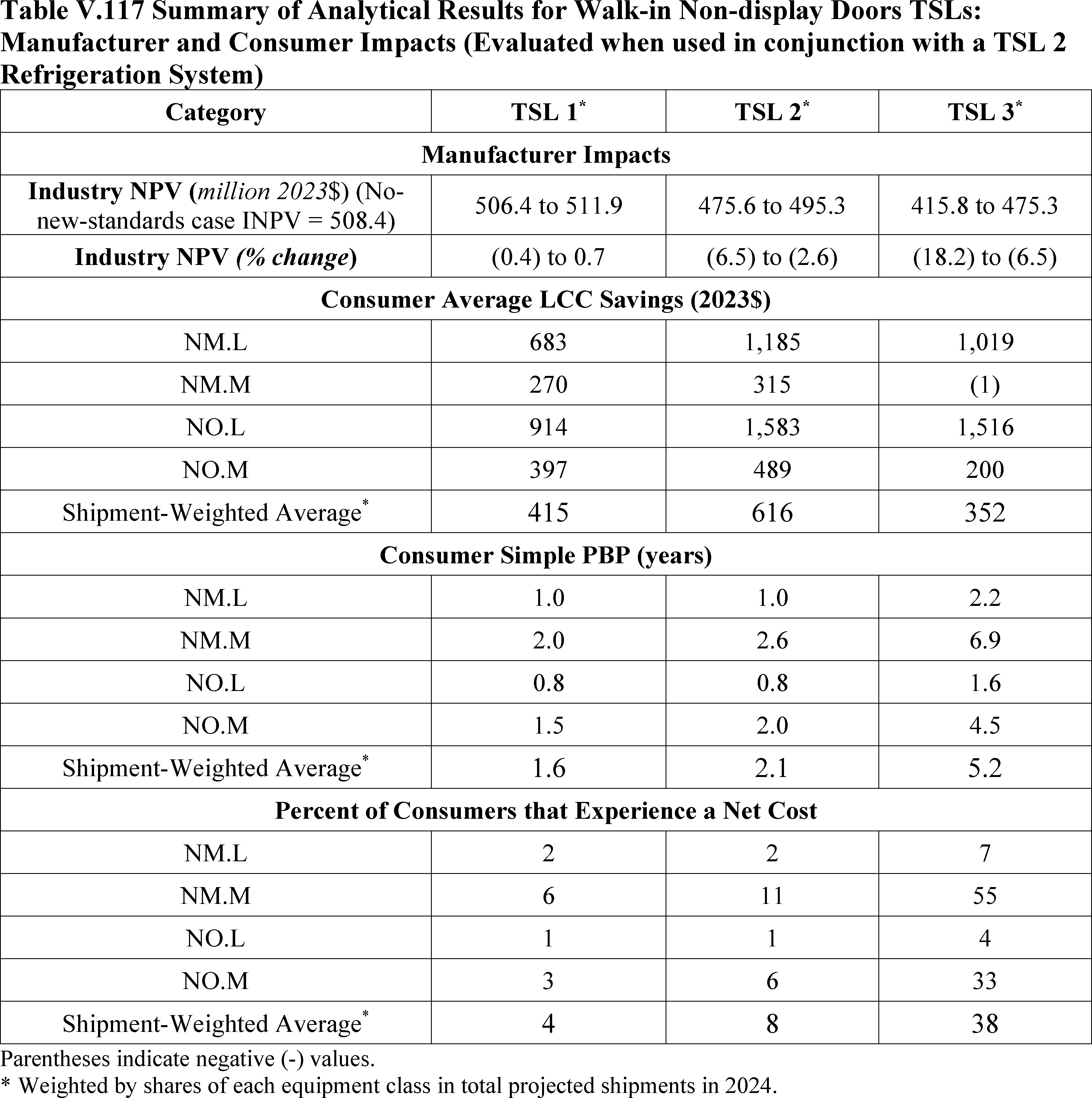 In installations where the lifetime of the non-display door is reduced as compared to the no-new-standards case, the consumer would bear additional replacement costs that would outweigh the savings in operating costs when considering the same service lifetime as a non-display door without the thermally improved frame design. This can be seen in Table IV.50 where the consumer LCC savings is negative for all non-display doors at TSL 2 or TSL 3.