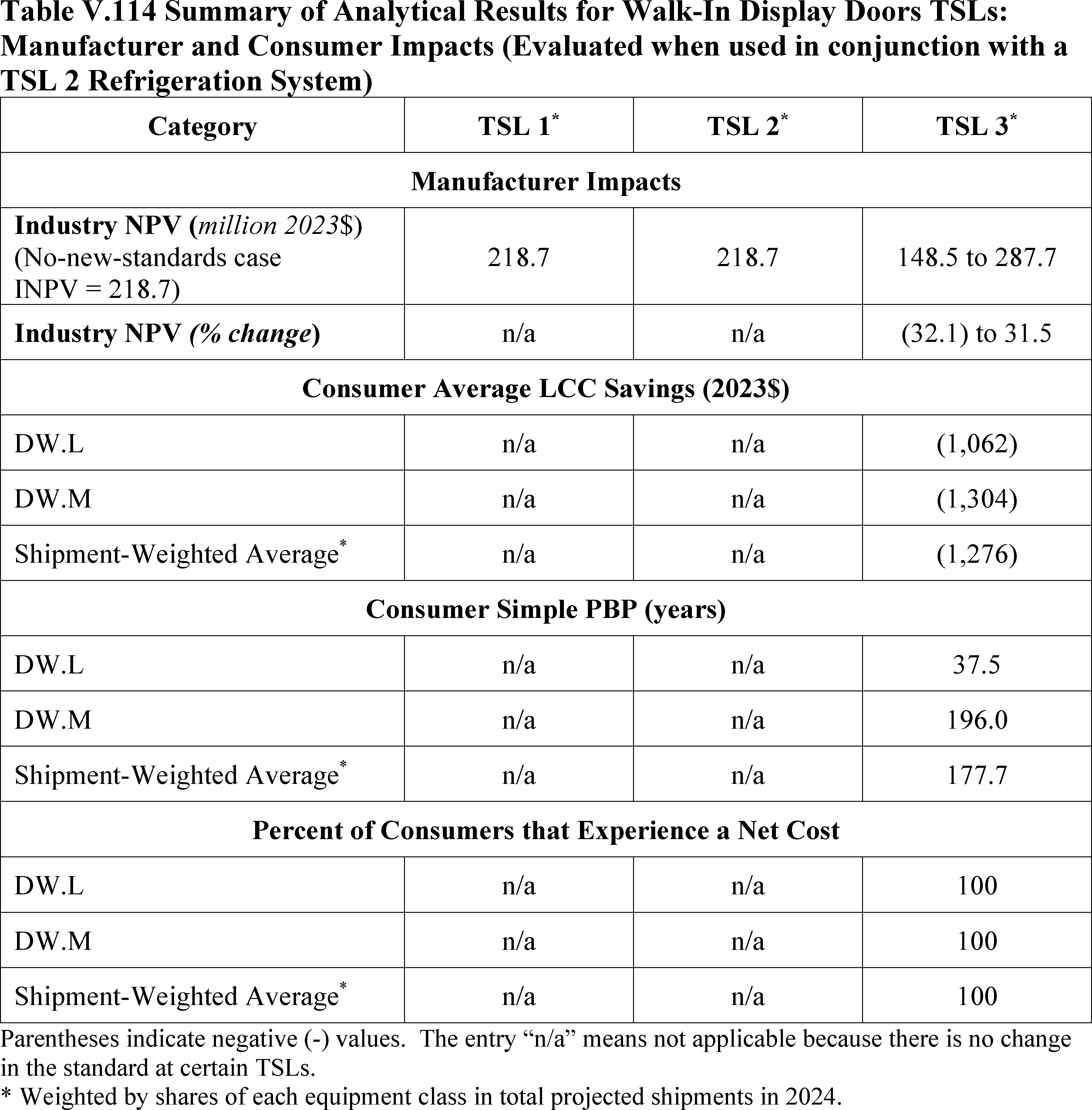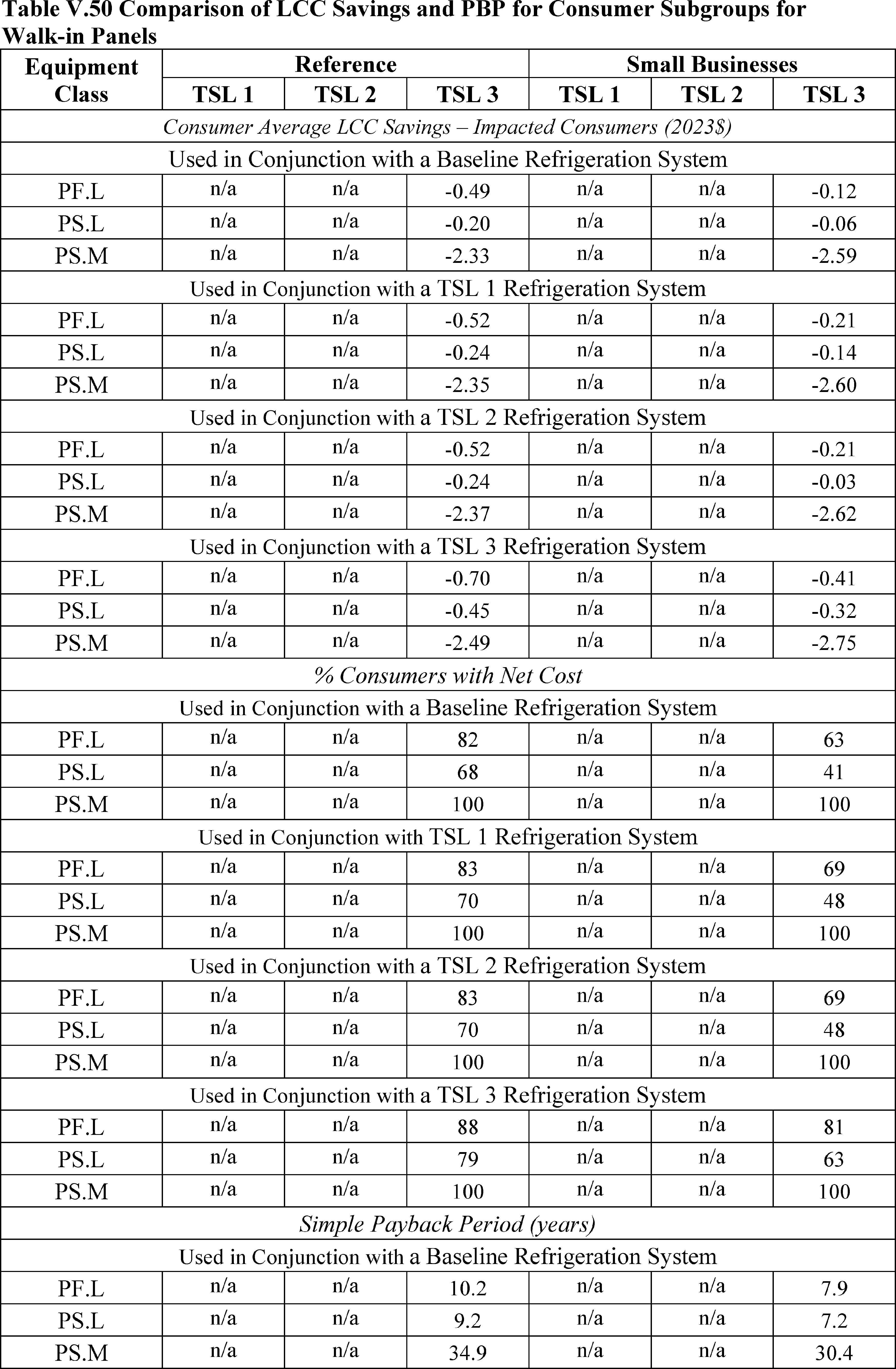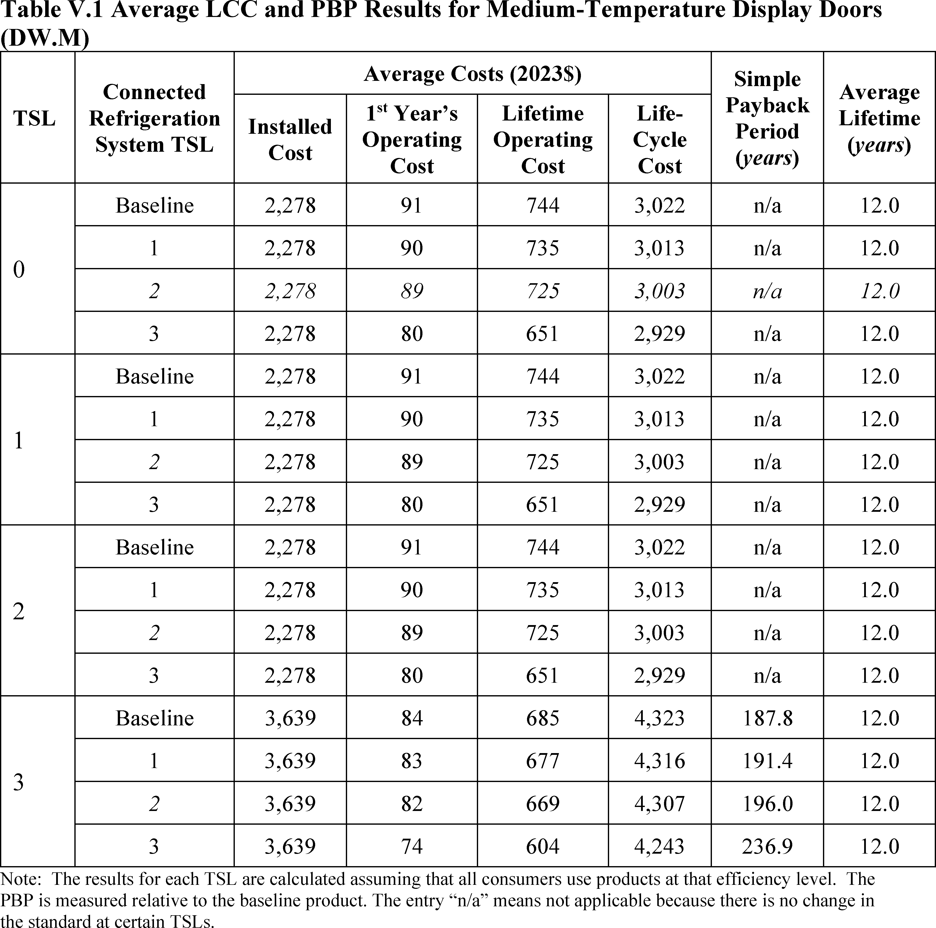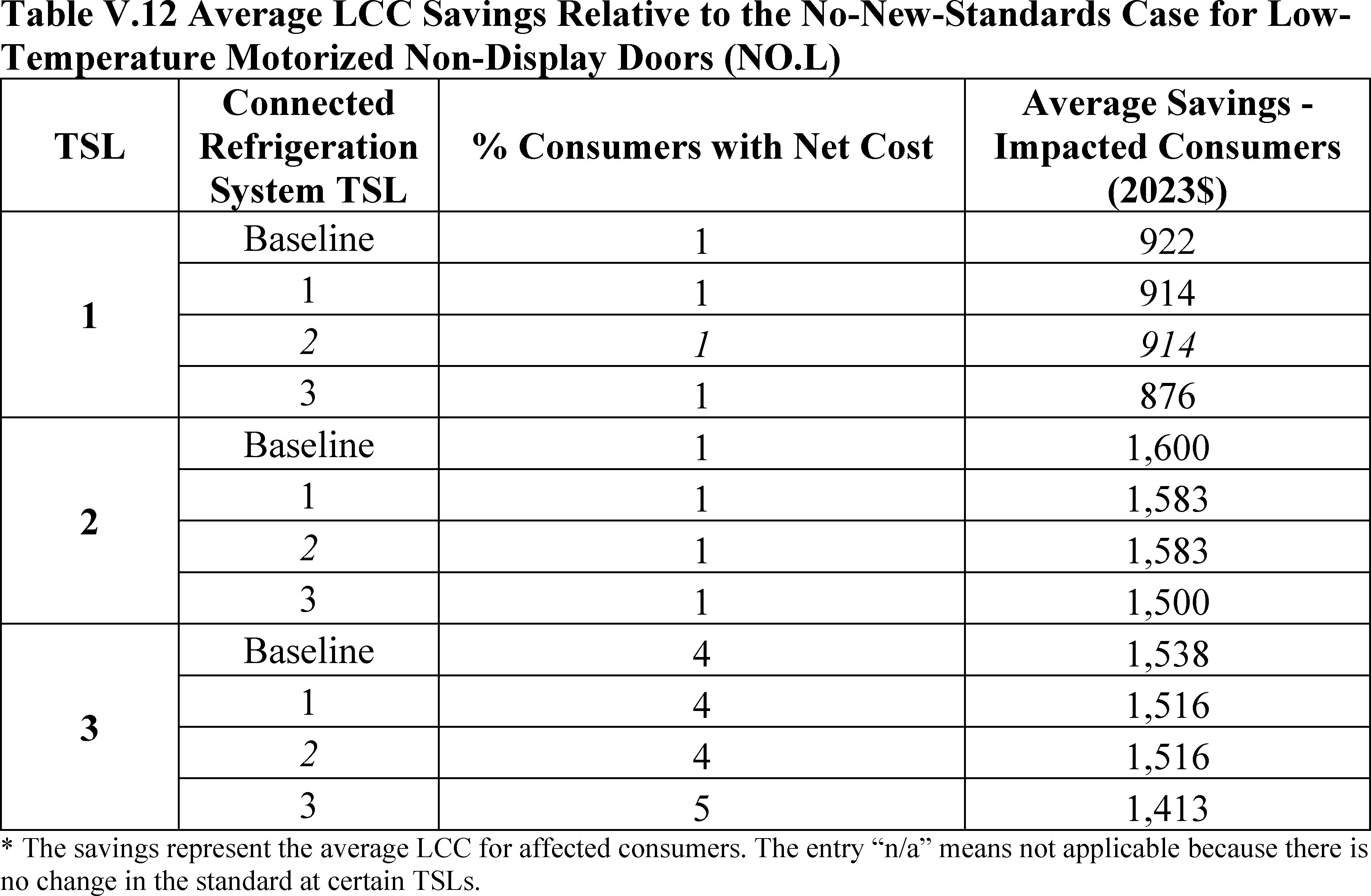 In installations where the lifetime of the non-display door is reduced as compared to the no-new-standards case, the consumer would bear additional replacement costs that would outweigh the savings in operating costs when considering the same service lifetime as a non-display door without the thermally improved frame design. This can be seen in Table IV.50 where the consumer LCC savings is negative for all non-display doors at TSL 2 or TSL 3.