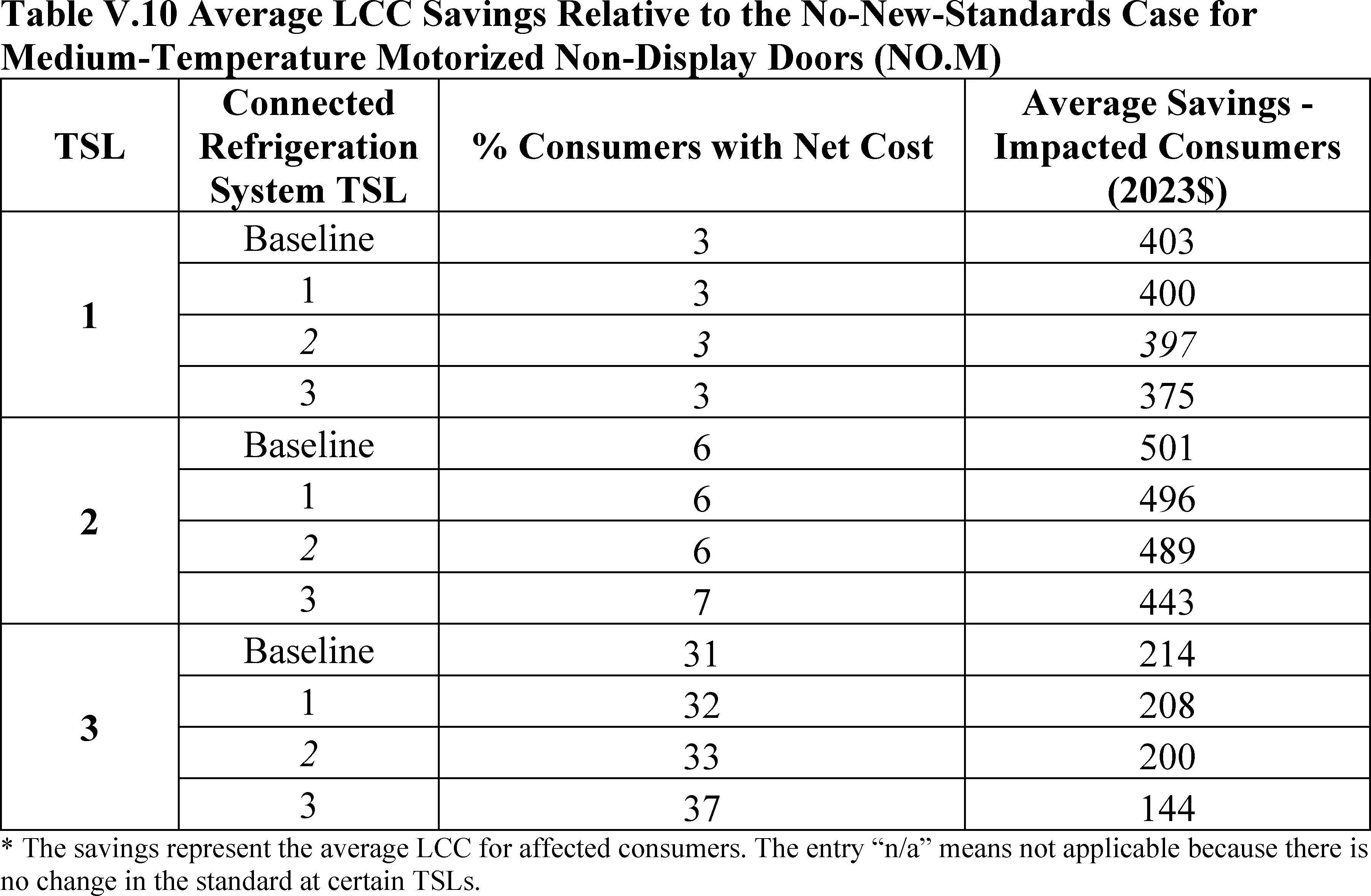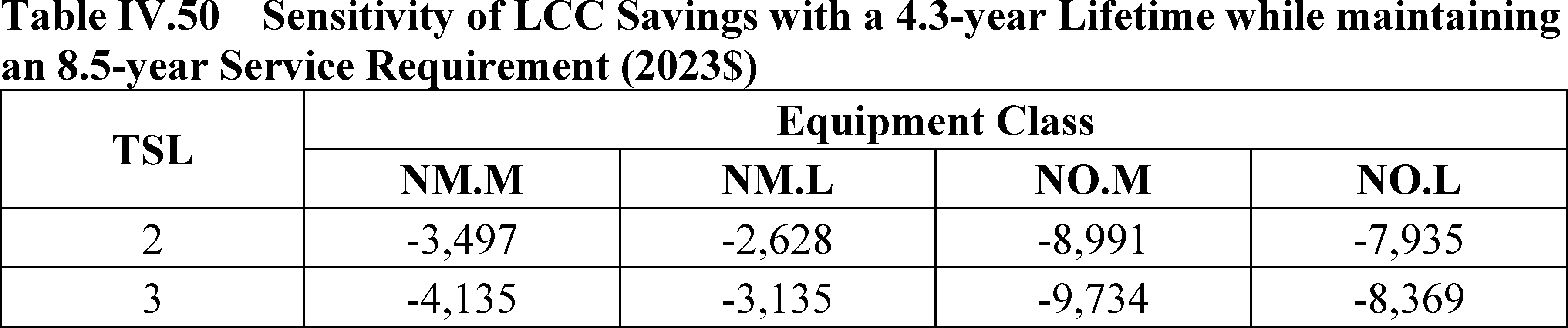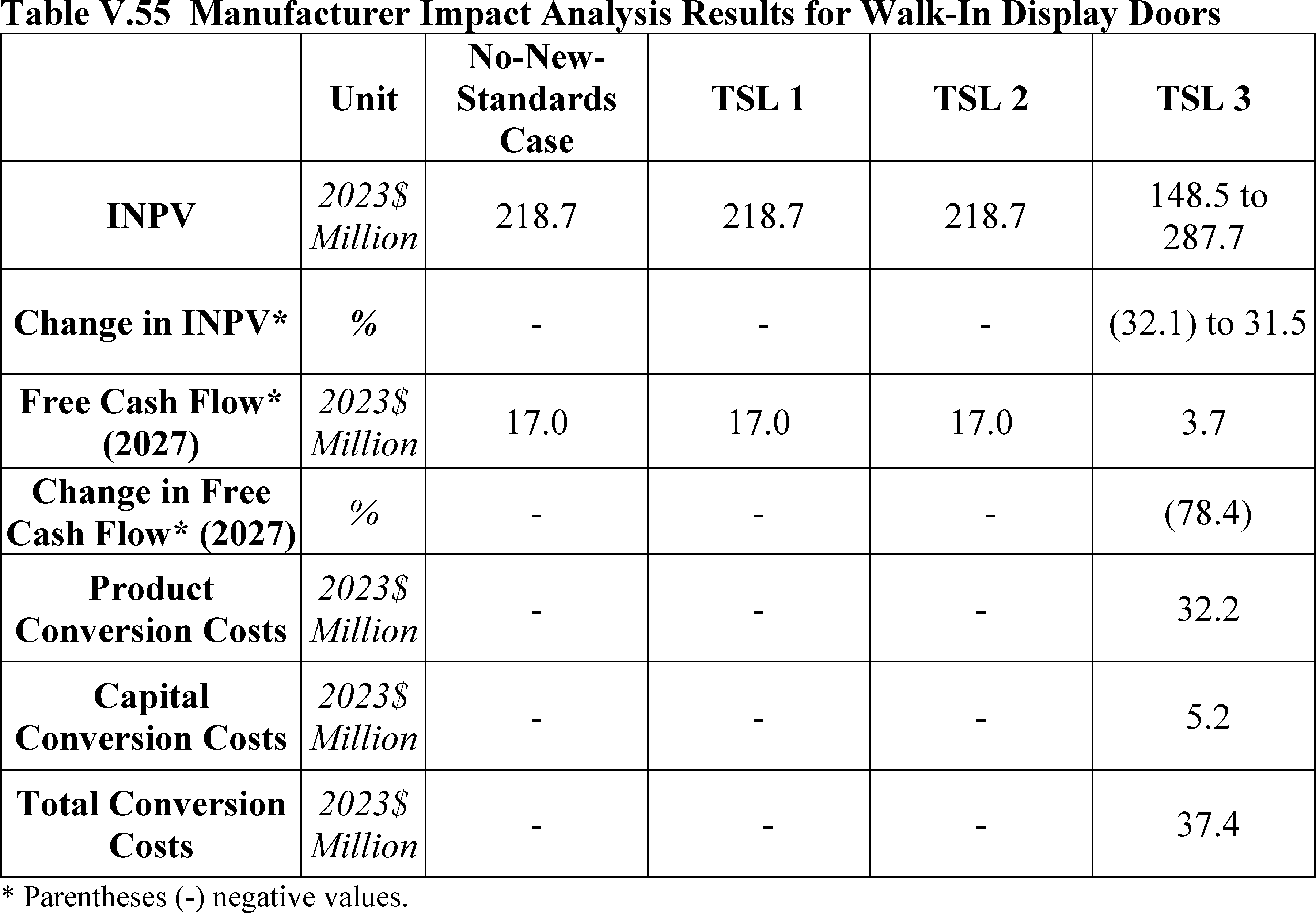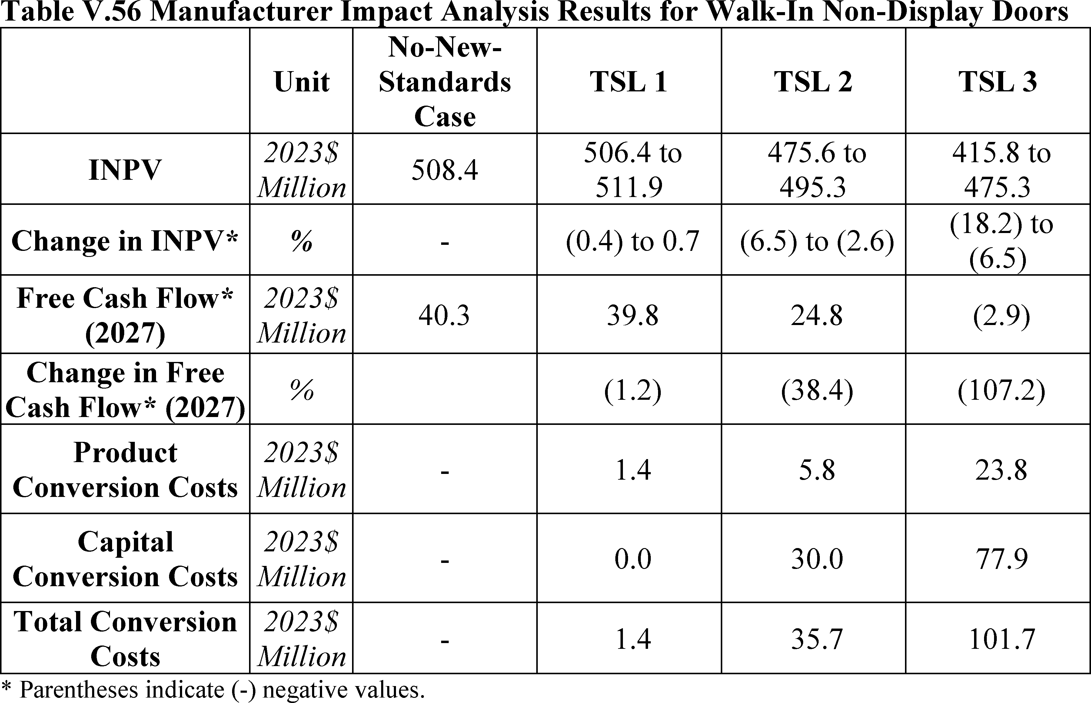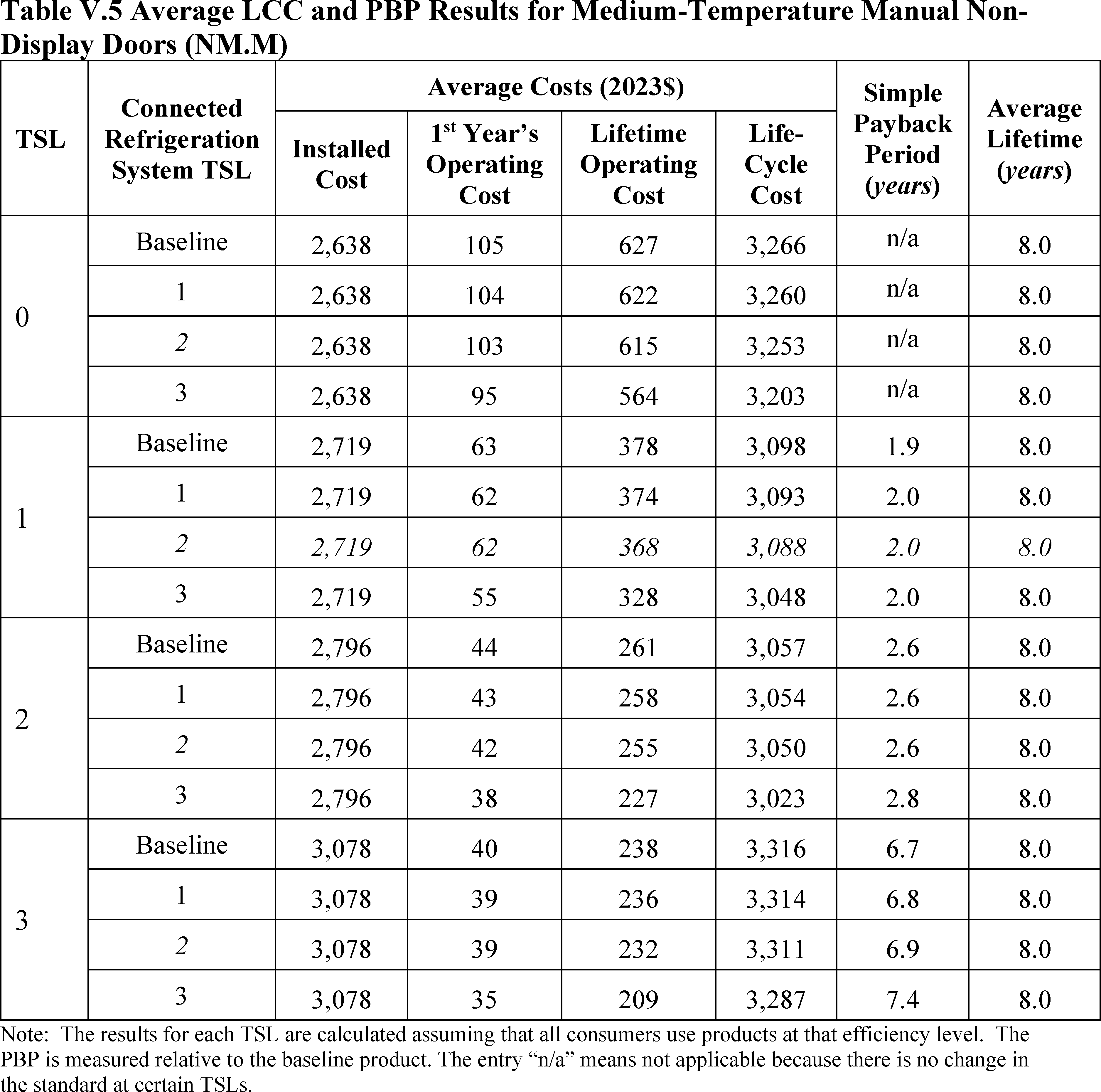 In installations where the lifetime of the non-display door is reduced as compared to the no-new-standards case, the consumer would bear additional replacement costs that would outweigh the savings in operating costs when considering the same service lifetime as a non-display door without the thermally improved frame design. This can be seen in Table IV.50 where the consumer LCC savings is negative for all non-display doors at TSL 2 or TSL 3.