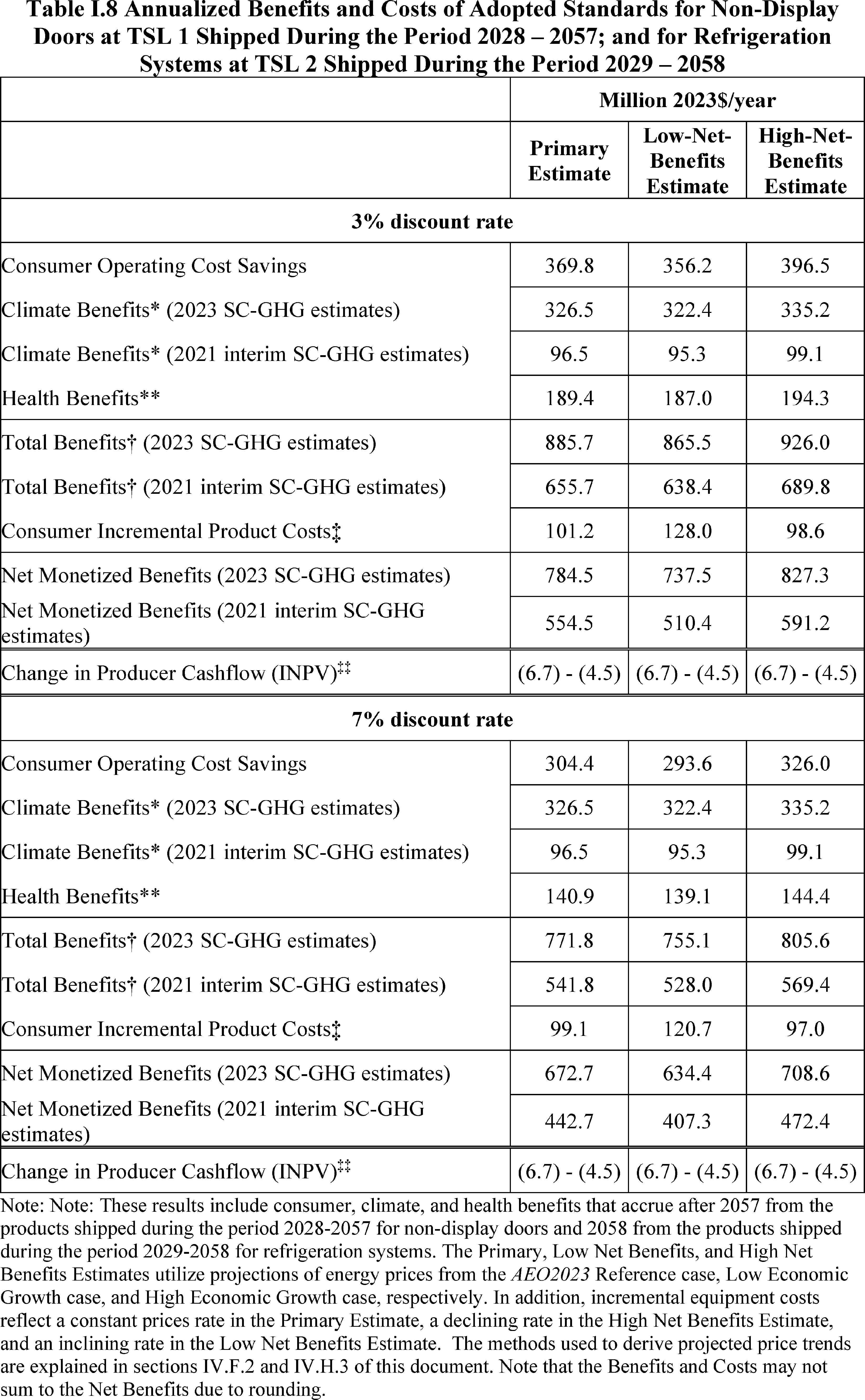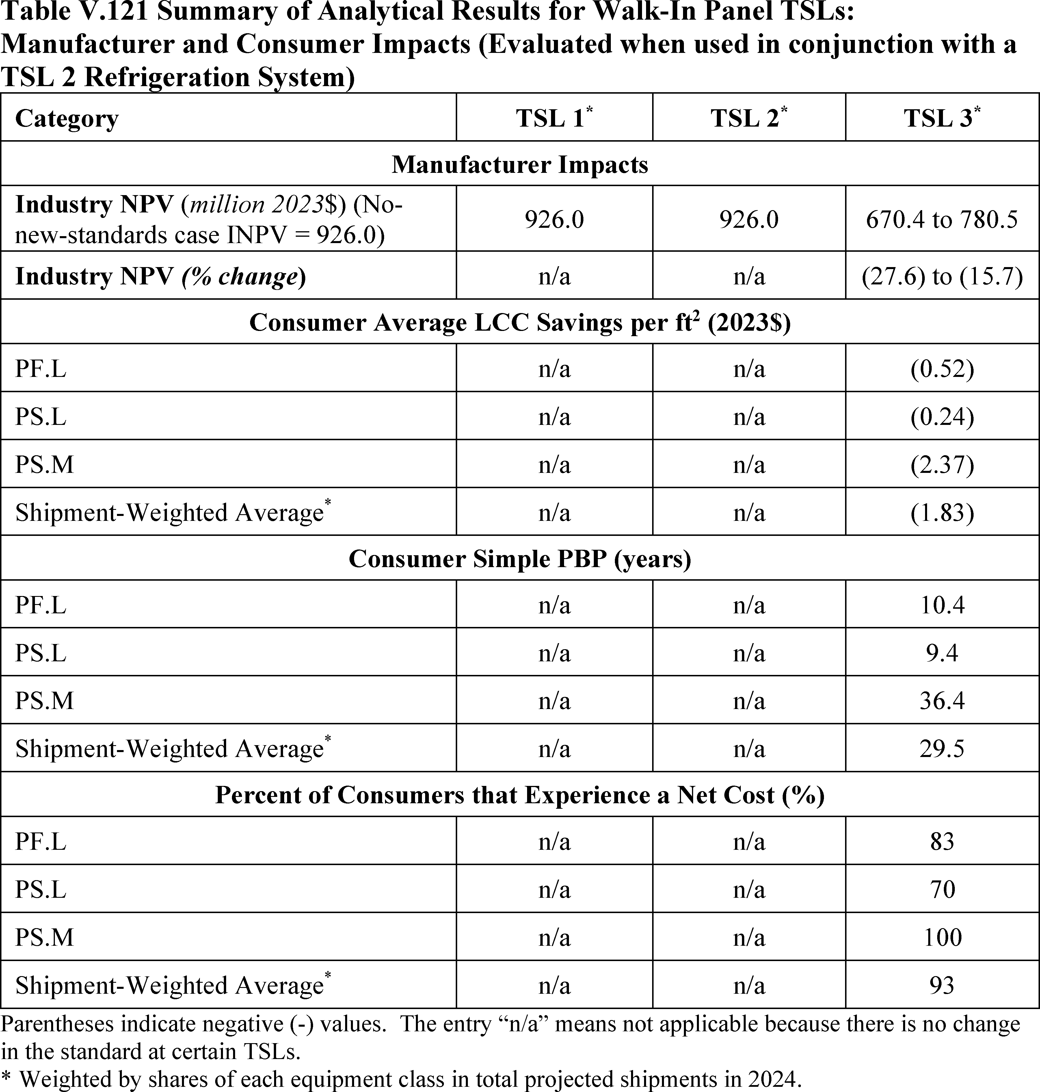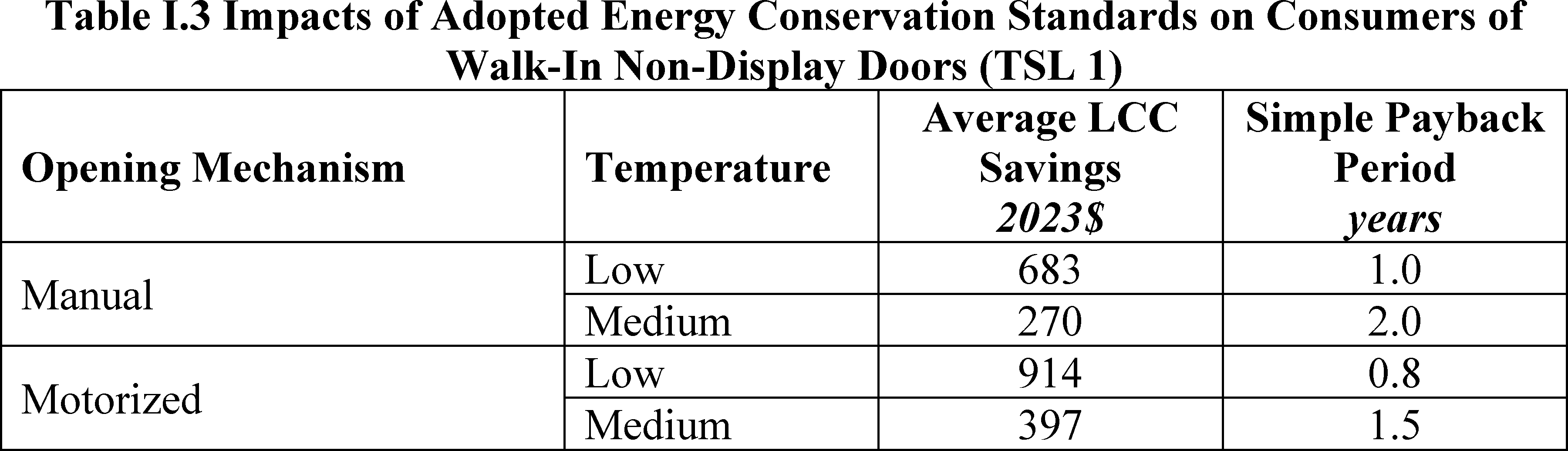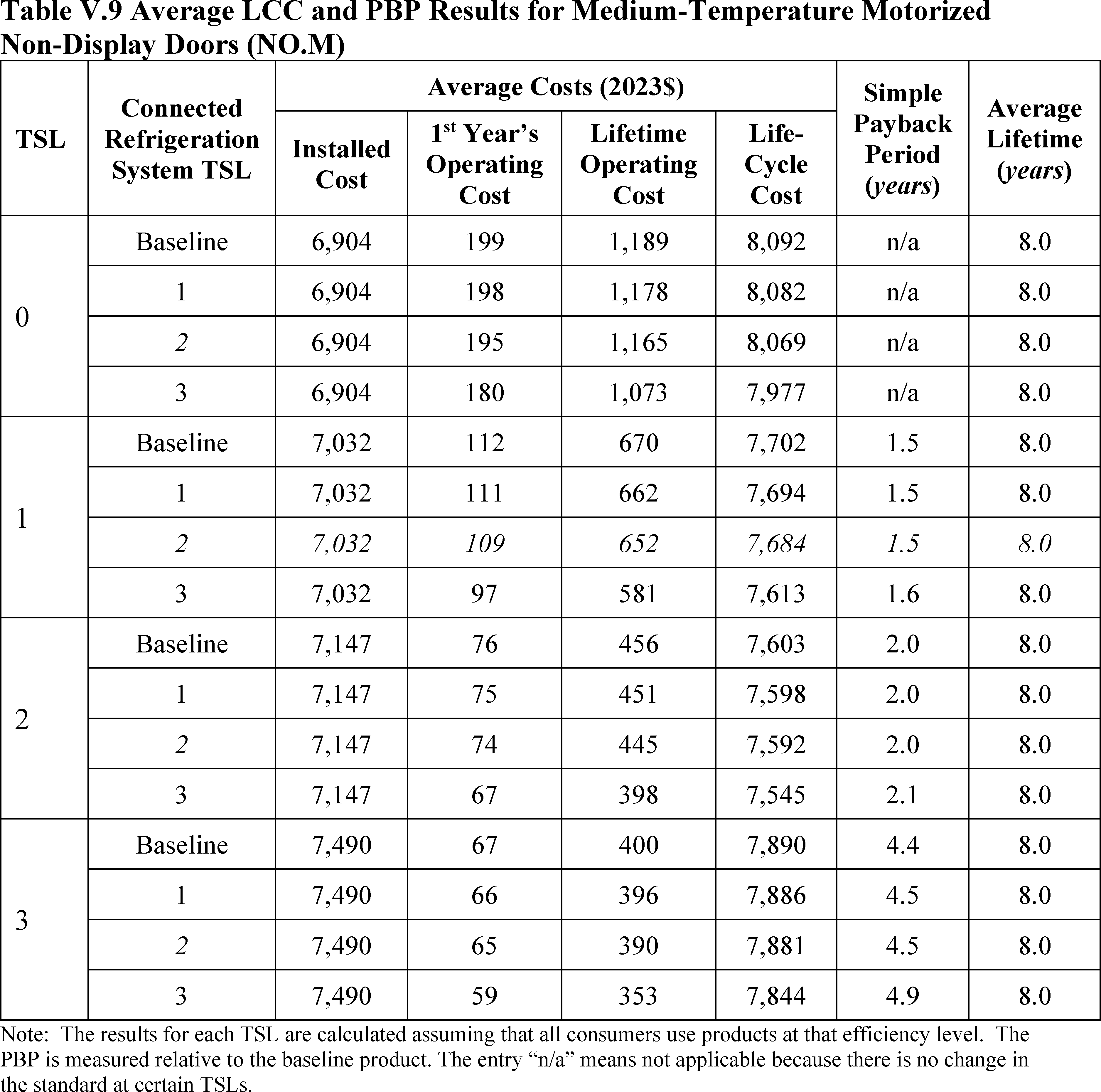 In installations where the lifetime of the non-display door is reduced as compared to the no-new-standards case, the consumer would bear additional replacement costs that would outweigh the savings in operating costs when considering the same service lifetime as a non-display door without the thermally improved frame design. This can be seen in Table IV.50 where the consumer LCC savings is negative for all non-display doors at TSL 2 or TSL 3.