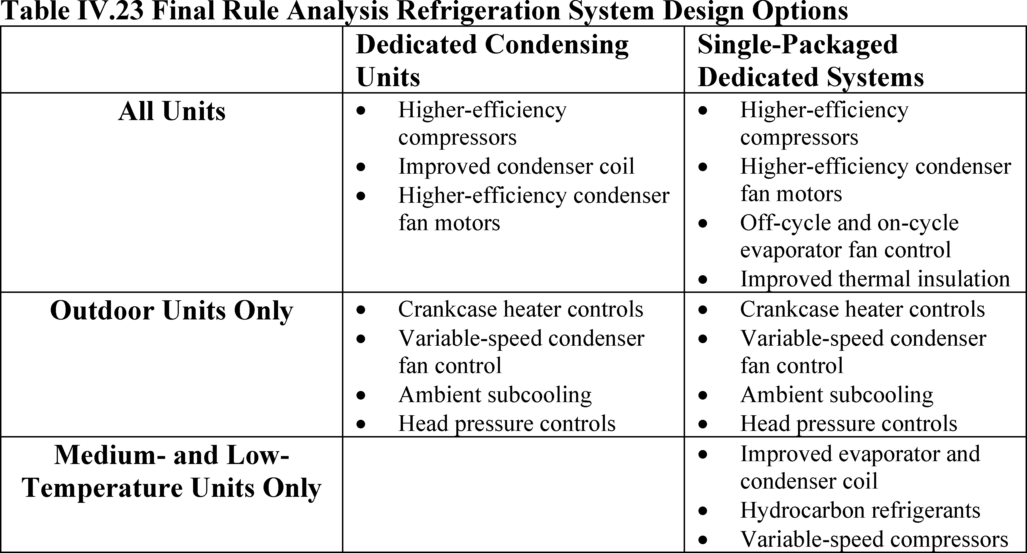 As discussed in section 5.7 of the final rule TSD, DOE did not consider larger condensing coils or variable capacity compressors for high-temperature dedicated condensing systems.