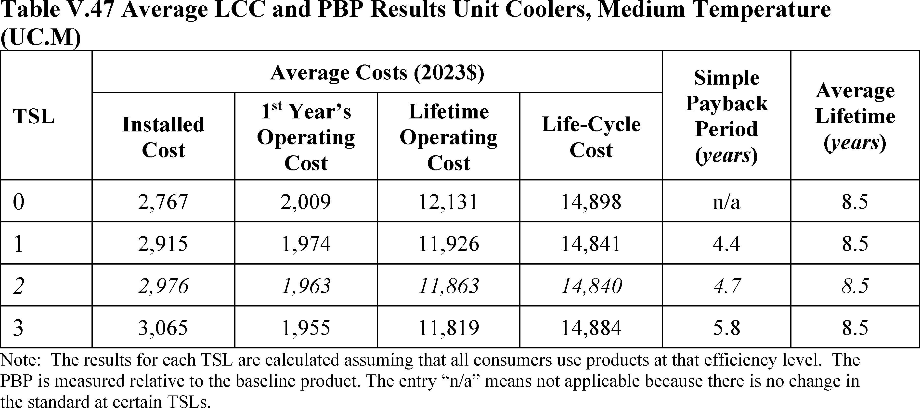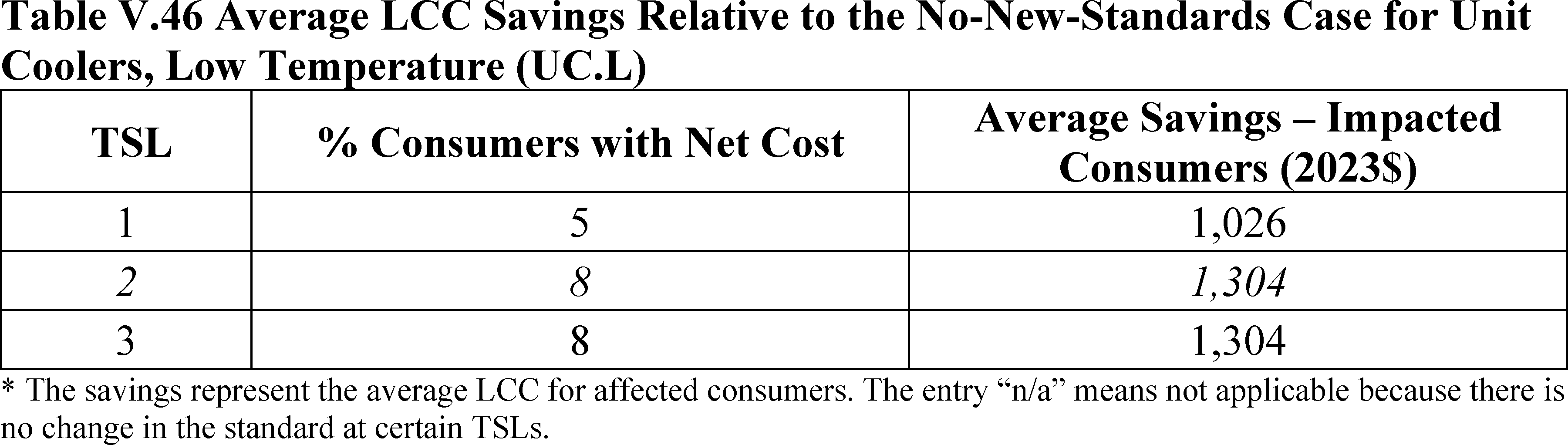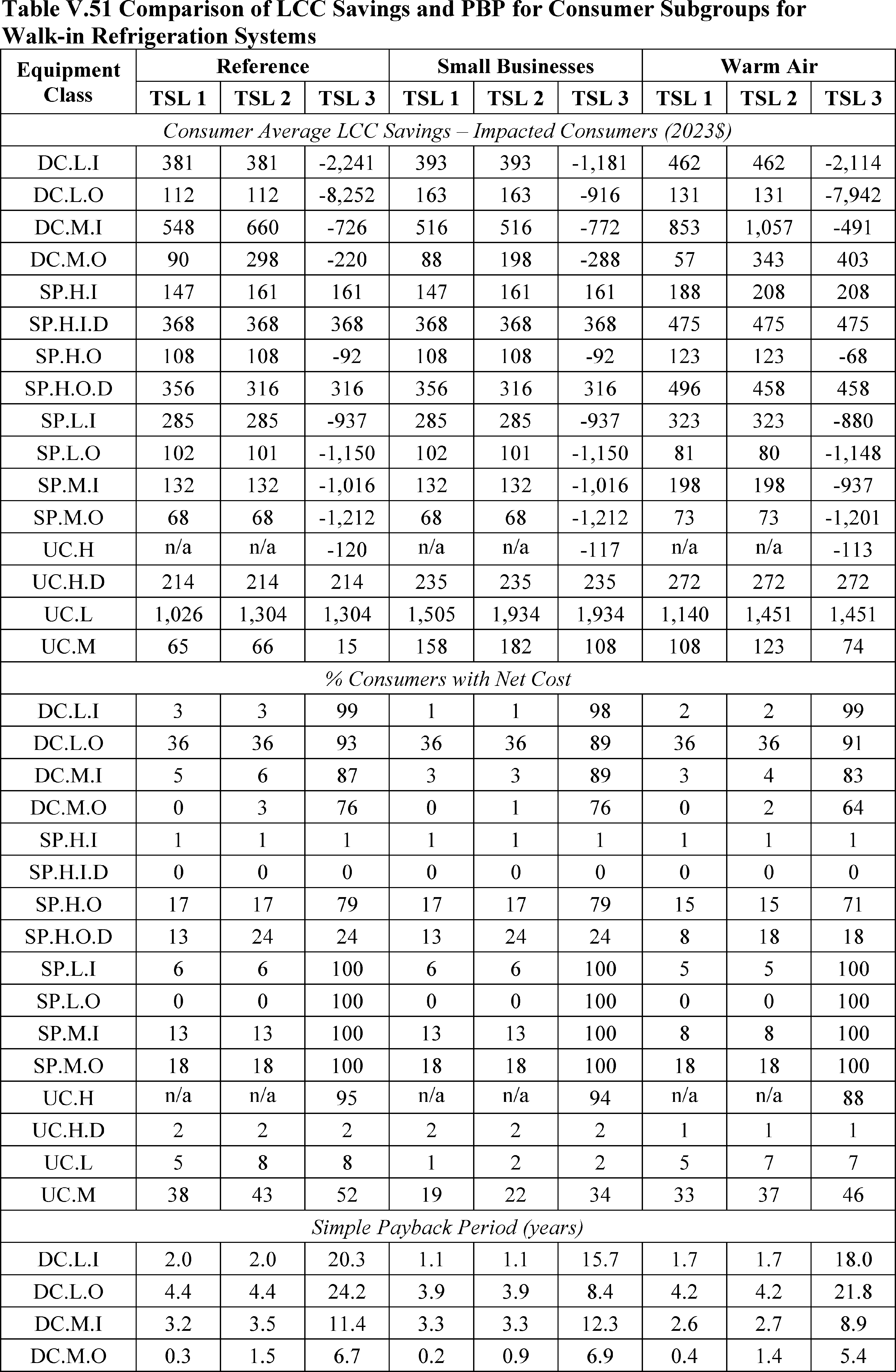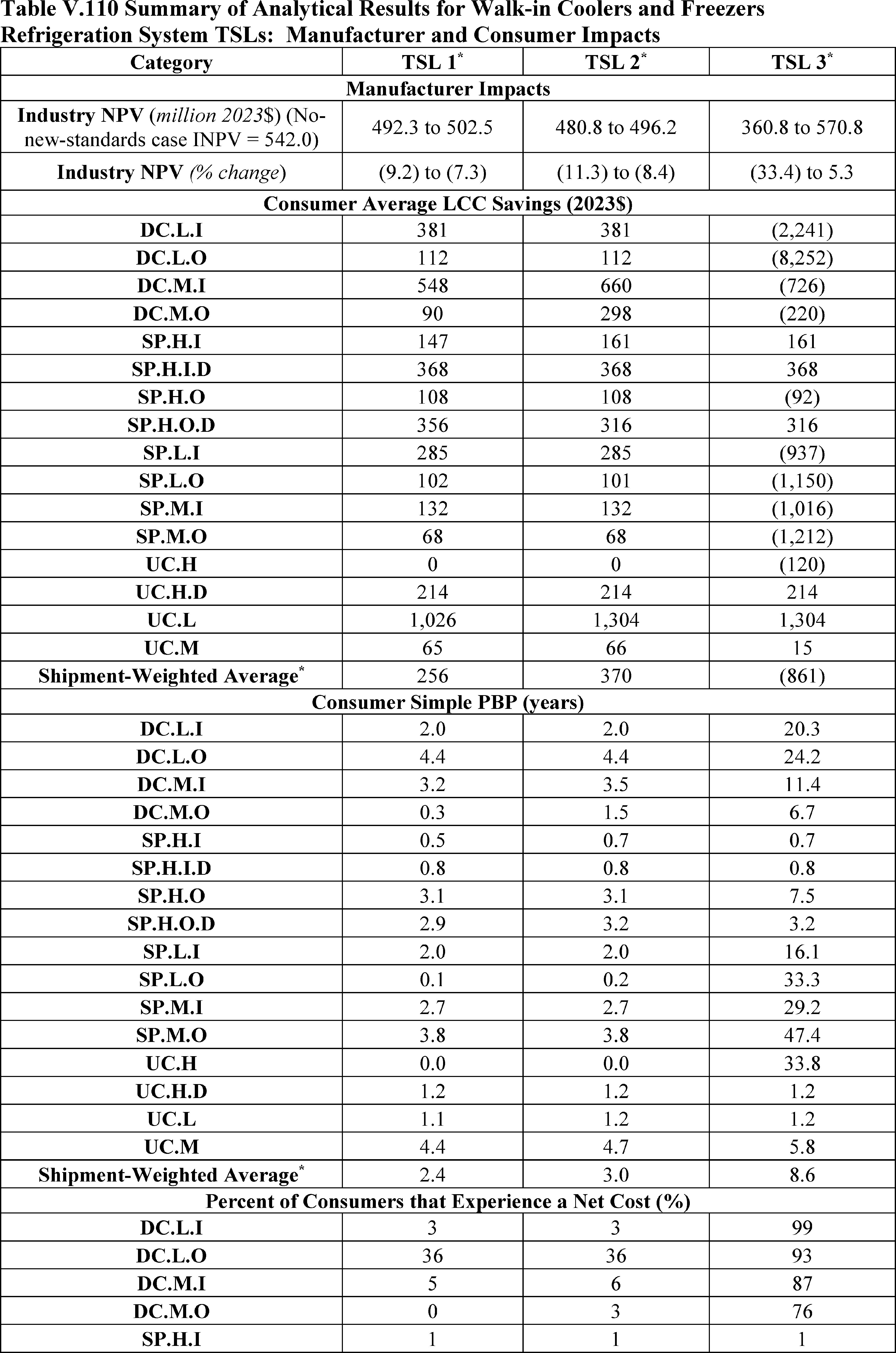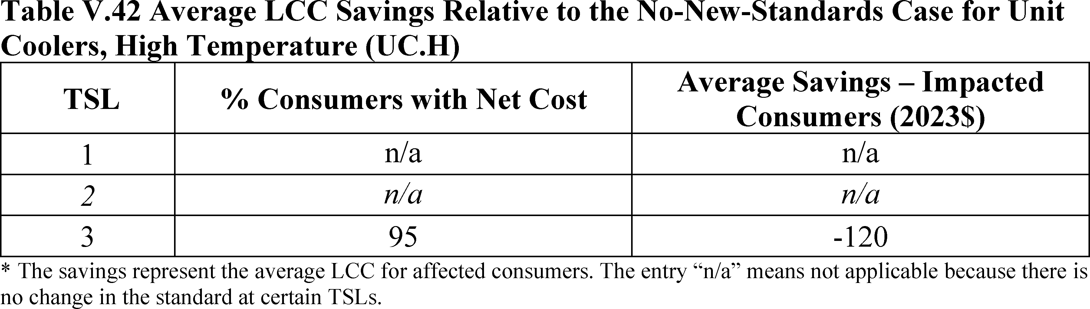 For this summary statement of consumer impacts DOE did not include high-temperature unit coolers as DOE is not amending standards for this equipment at this time.