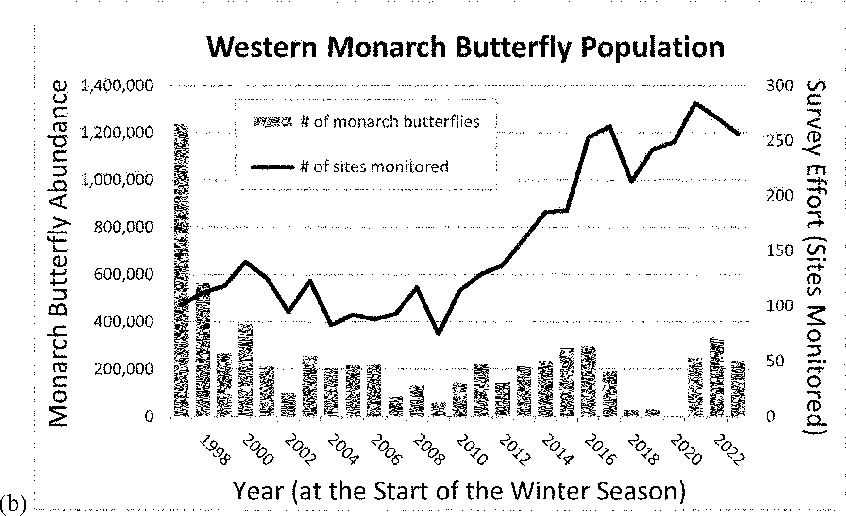 To improve future conditions so that the monarch migratory populations stabilize and grow, we need to (1)