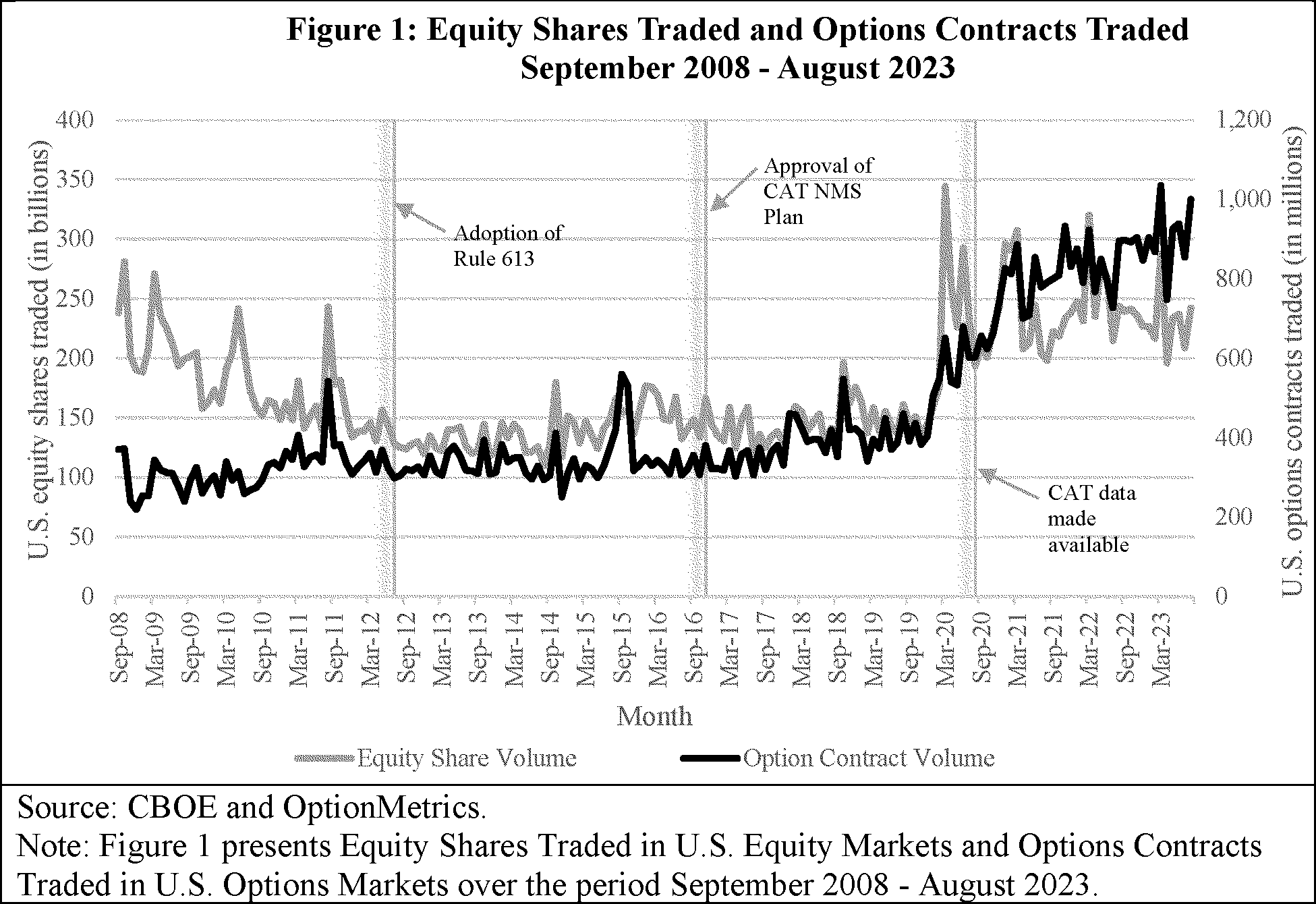 Two commenters were supportive of these aspects of the Proposal.[68] For example, SIFMA stated that the “enormity of this data set . . . has created costs and challenges far beyond those envisioned when CAT was approved.” [69] SIFMA explained that the “quote-to-trade ratio in listed options markets is so large that the operational costs of linking quotes to trades is an unreasonable burden” that had not been supported by a cost-benefit analysis.[70] Moreover, SIFMA stated that “the ratio keeps increasing, with [its] member data showing the most recent peak of 32,000 quotes per trade in the U.S. options market in December 2023,” a ratio that they stated was “nearly 4 times greater than the ratio described” in the CAT NMS Plan Approval Order.[71] SIFMA further expressed concern that there were no forces to “constrain the increase in this ratio” and asserted that “certain SEC market structure initiatives might only accelerate the increase.” [72] Given the “extremely small number of quotes” with a “corresponding trade,” SIFMA did not believe it was reasonable to spend so much on processing and storage costs for Options Market Maker quotes in Listed Options, especially if such data would continue to be reported to the CAT and if “the SEC or a Participant can use the quote data as part of its surveillance or investigation patterns, albeit with the need to perform some additional computations.” [73] FIF supported the Proposal, but suggested that the Commission go further and eliminate Options Market Maker quotes in Listed Options from the CAT altogether.[74] FIF also requested that the Commission and the Participants “conduct” and make public “a cost-benefit analysis of maintaining Options Market Maker Quotes in CAT vs. removing them from CAT.” [75]