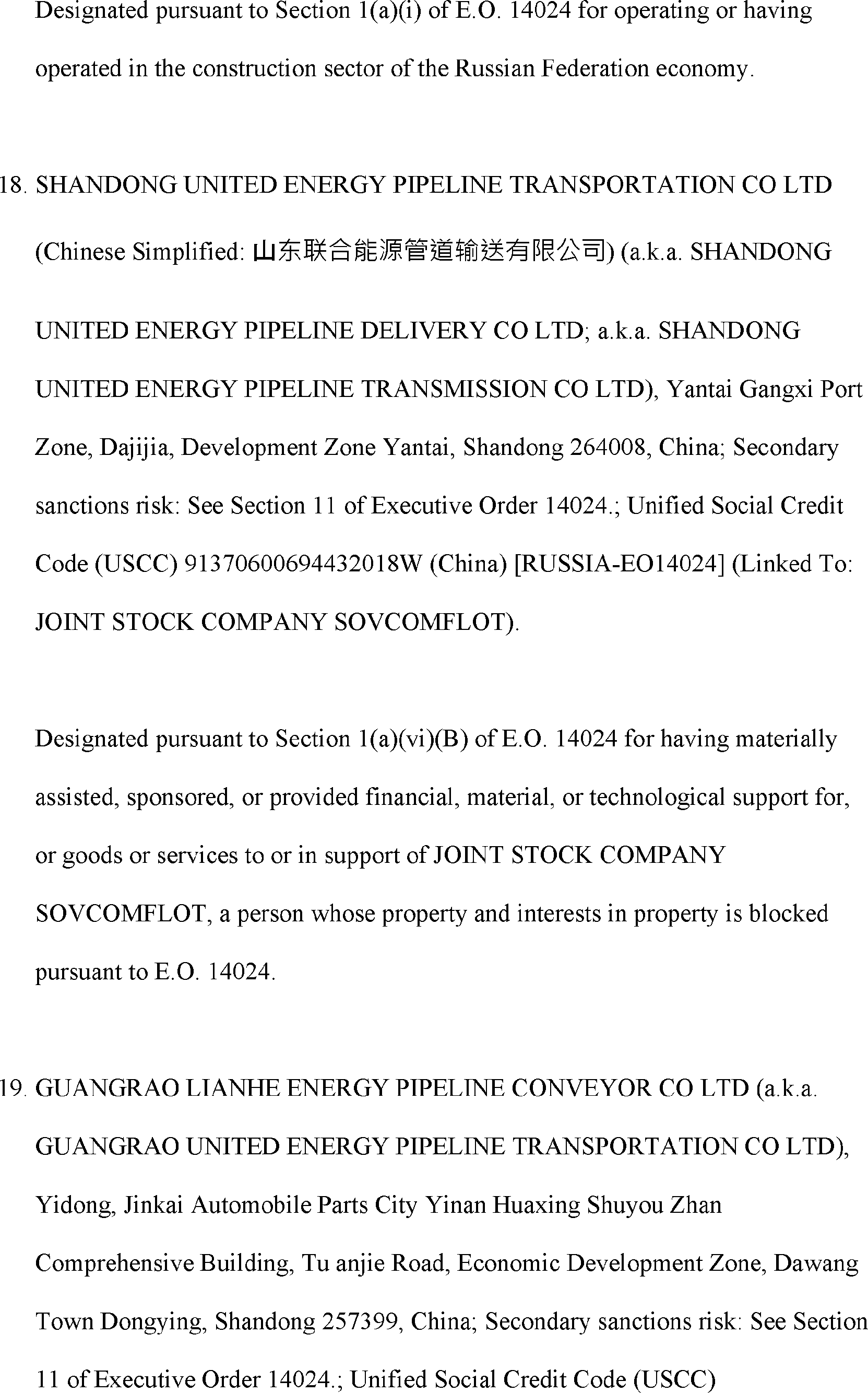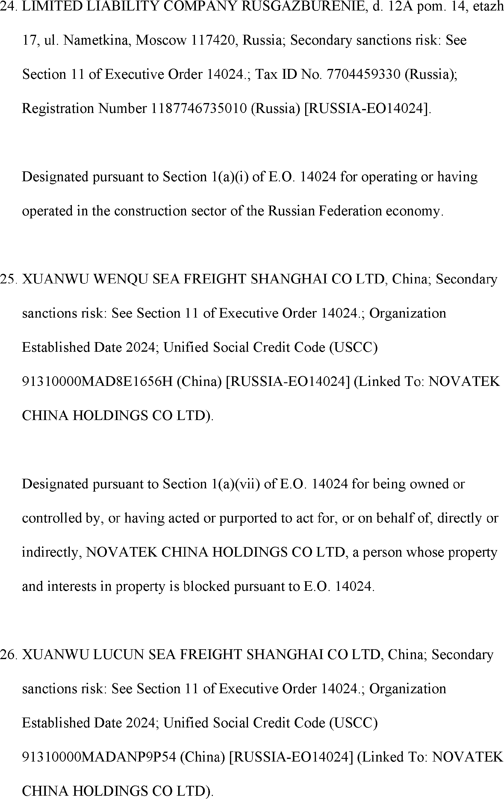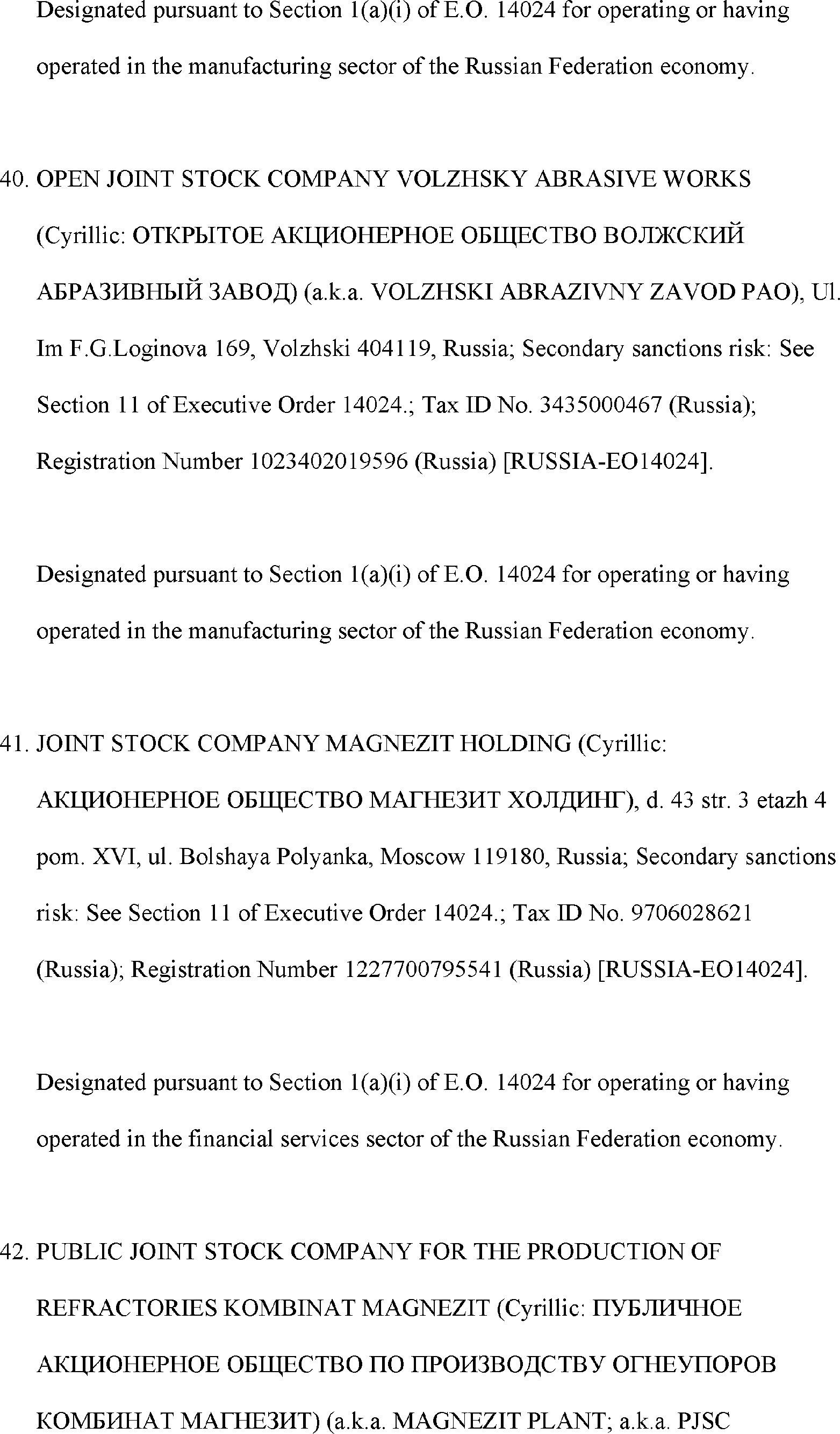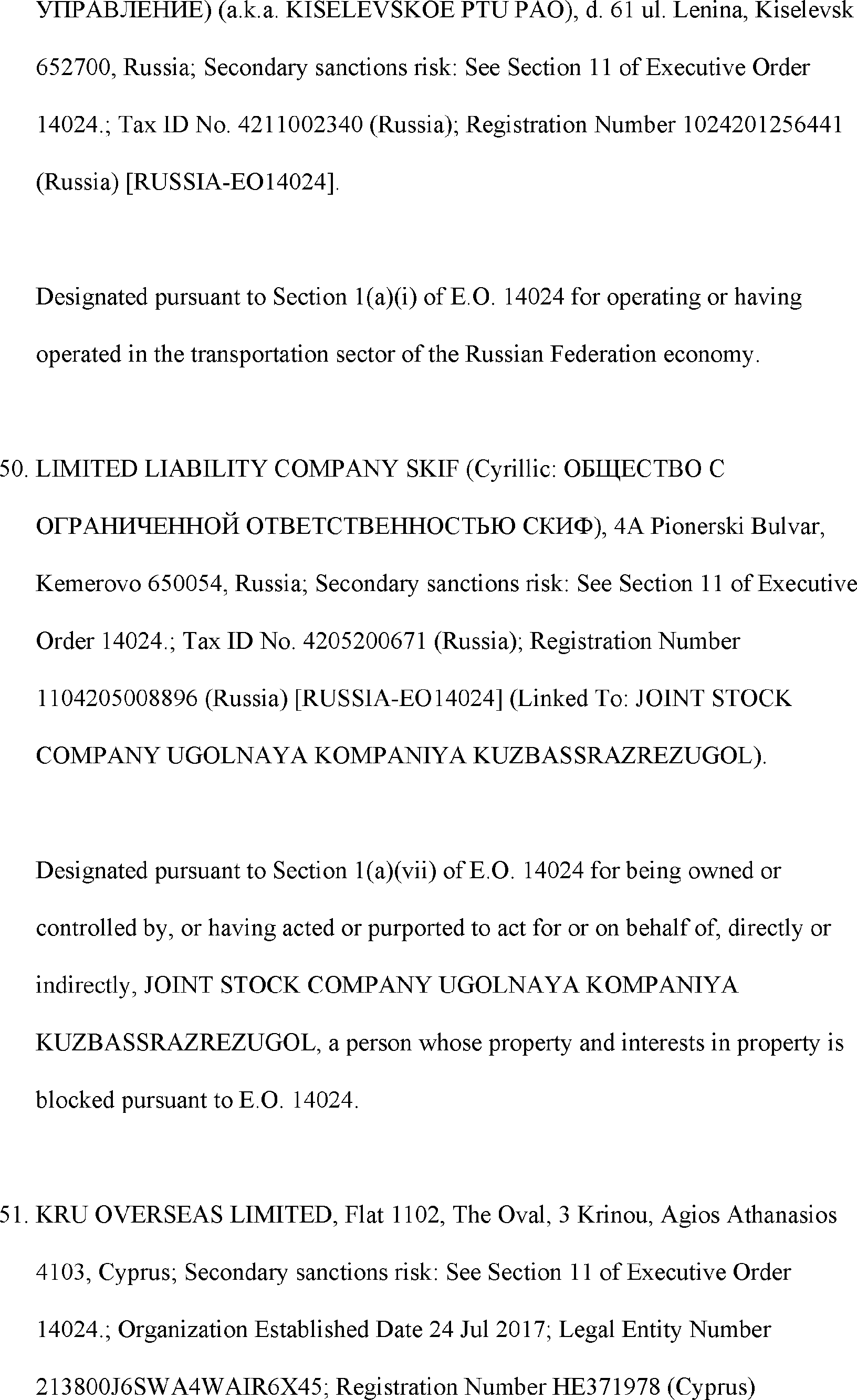 The Department of State is publishing the names of one or more persons that have been placed on the Department of Treasury's List of Specially Designated Nationals and Blocked Persons (SDN List) administered by the Office of Foreign Asset Control (OFAC) based on the Department of State's determination, in consultation with other departments, as appropriate, that one or more applicable legal criteria of the Executive Order regarding blocking property with respect to specified harmful foreign activities of the Government of the Russian Federation were satisfied. All property and interests in property subject to U.S. jurisdiction of these persons are blocked, and U.S. persons are generally prohibited from engaging in transactions with them.