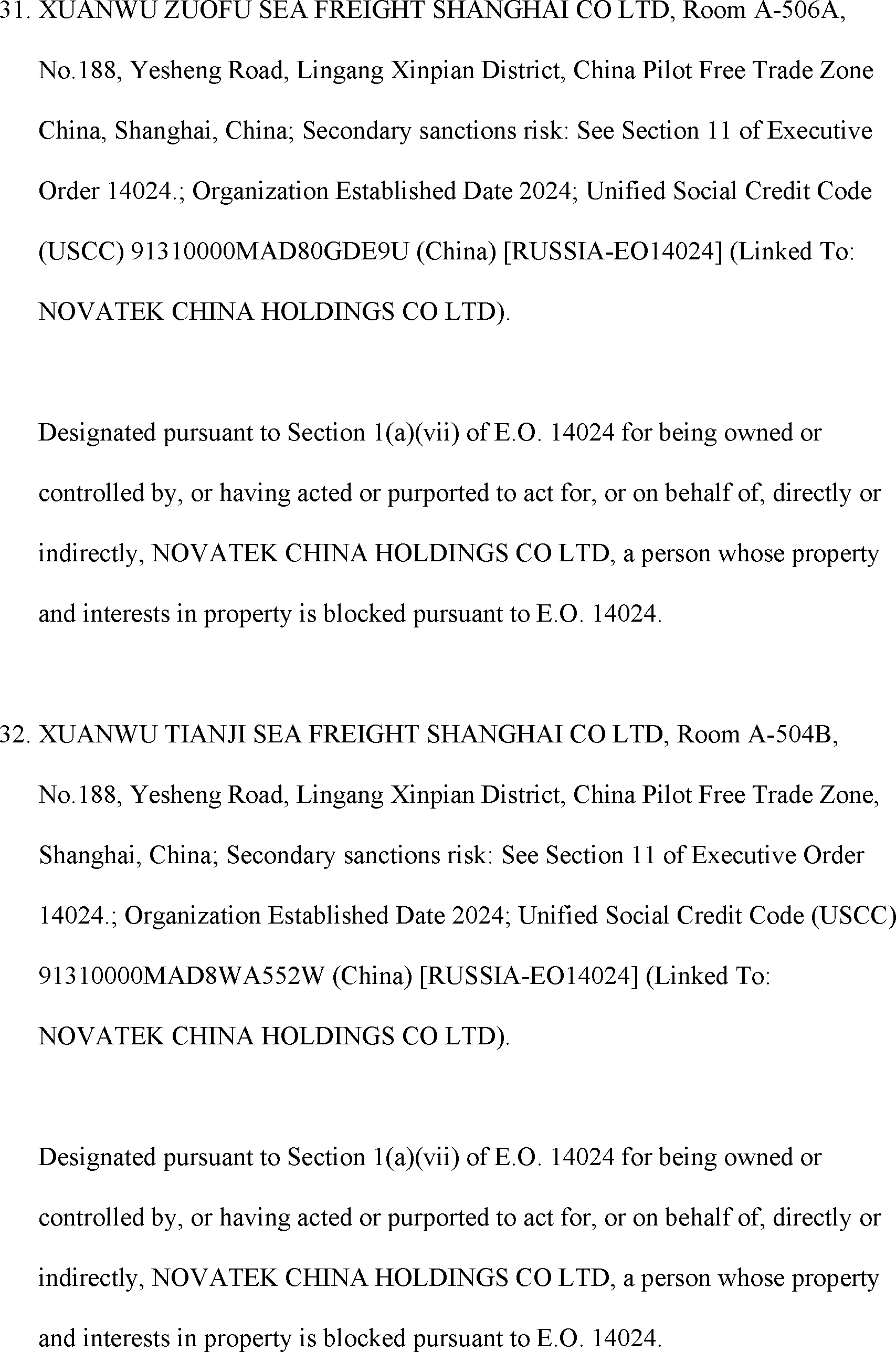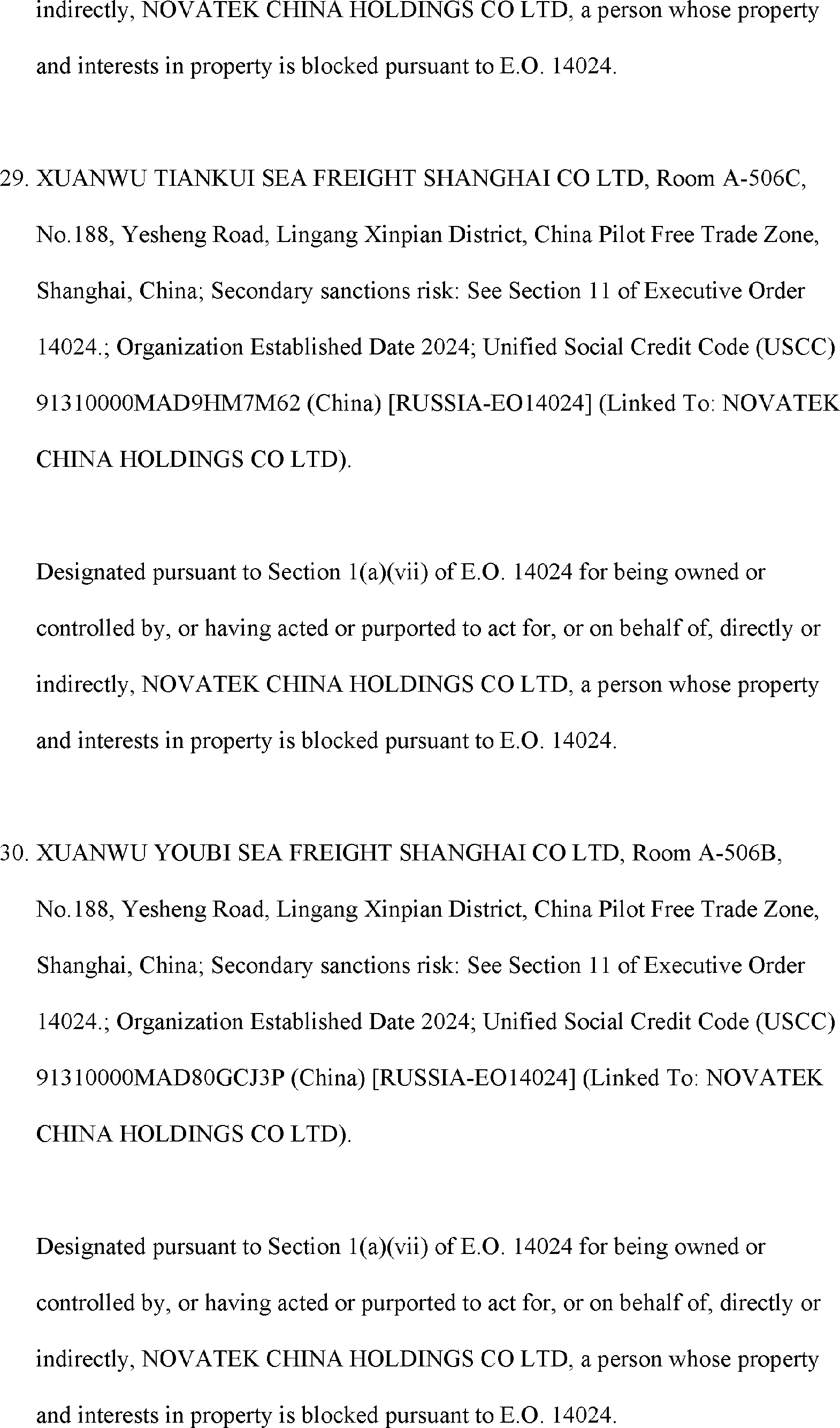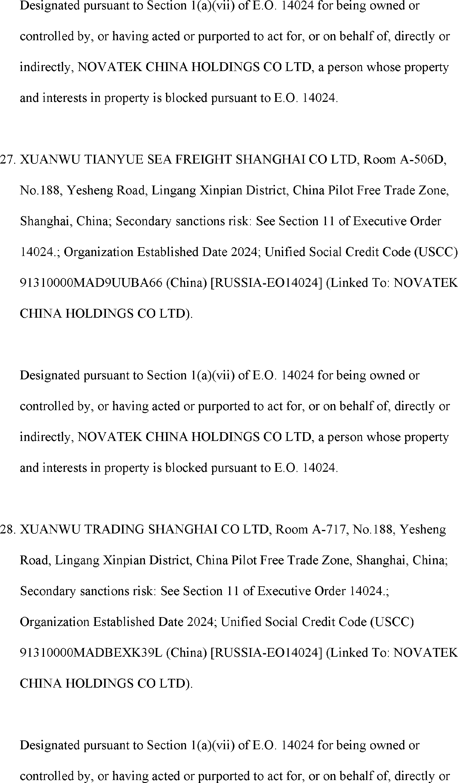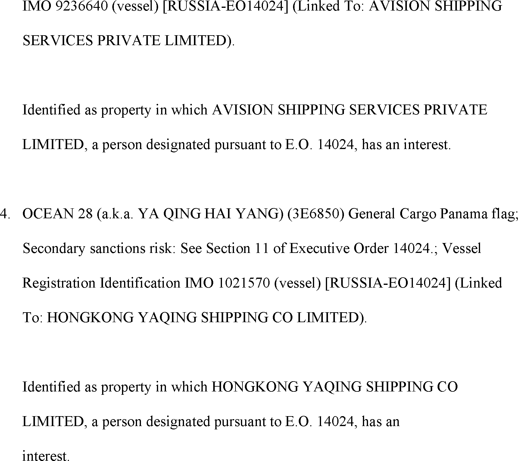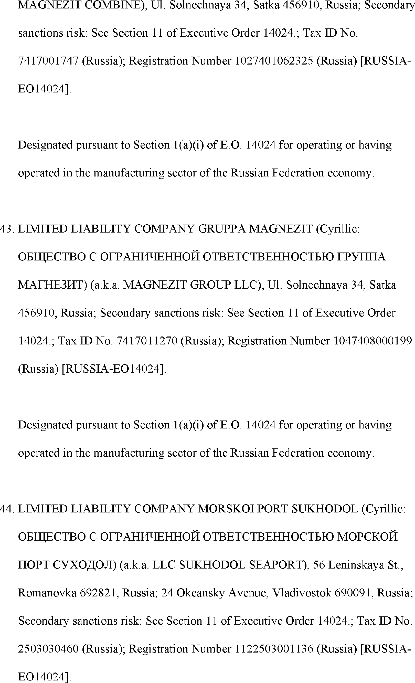 The Department of State is publishing the names of one or more persons that have been placed on the Department of Treasury's List of Specially Designated Nationals and Blocked Persons (SDN List) administered by the Office of Foreign Asset Control (OFAC) based on the Department of State's determination, in consultation with other departments, as appropriate, that one or more applicable legal criteria of the Executive Order regarding blocking property with respect to specified harmful foreign activities of the Government of the Russian Federation were satisfied. All property and interests in property subject to U.S. jurisdiction of these persons are blocked, and U.S. persons are generally prohibited from engaging in transactions with them.