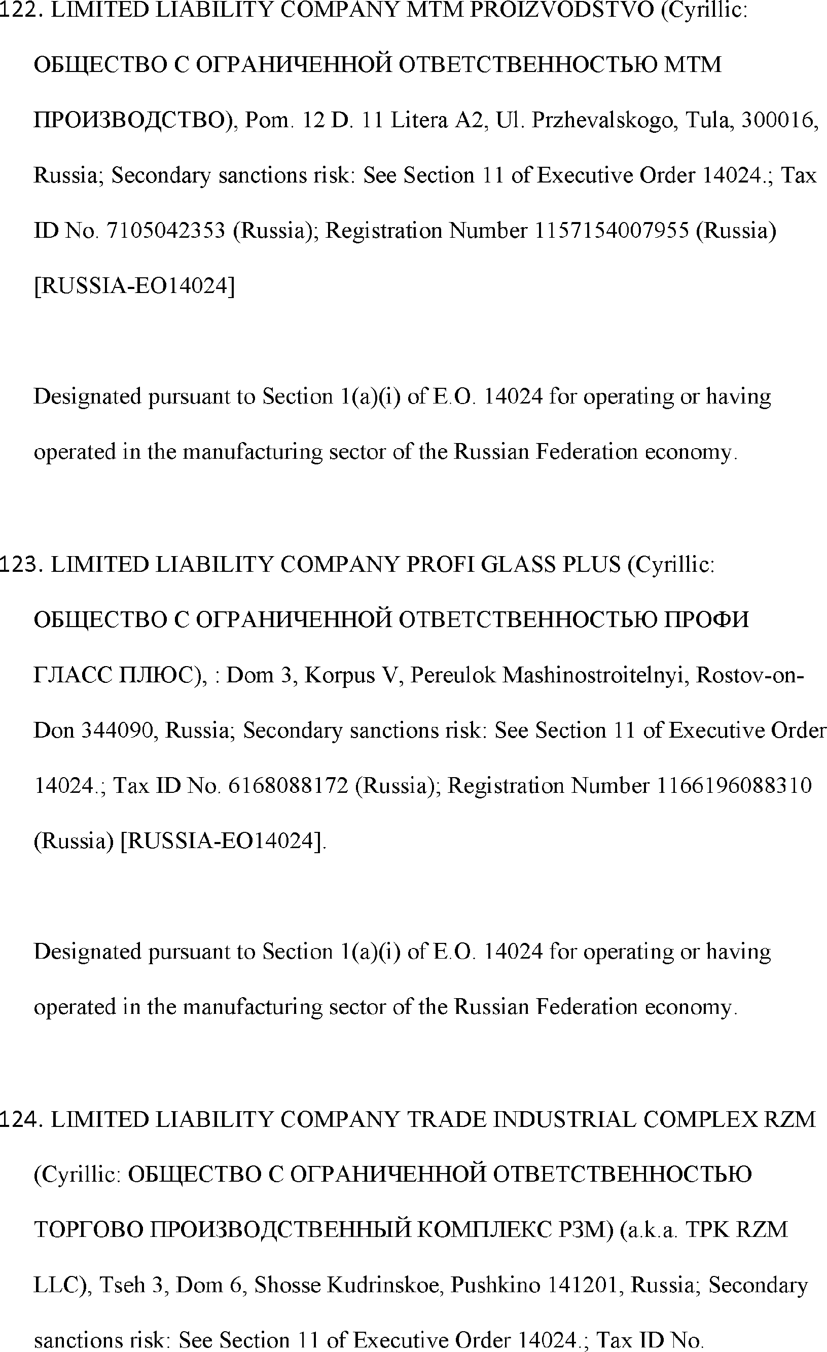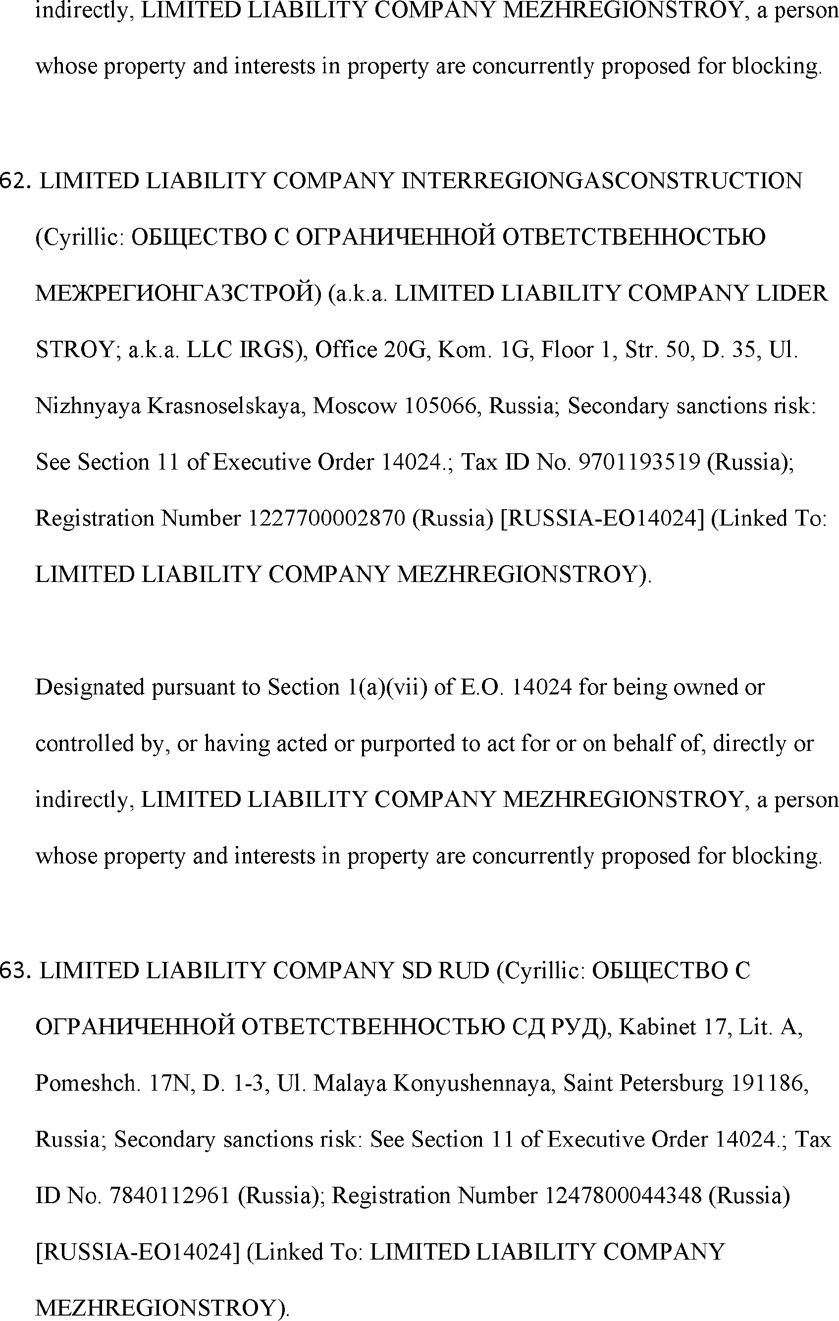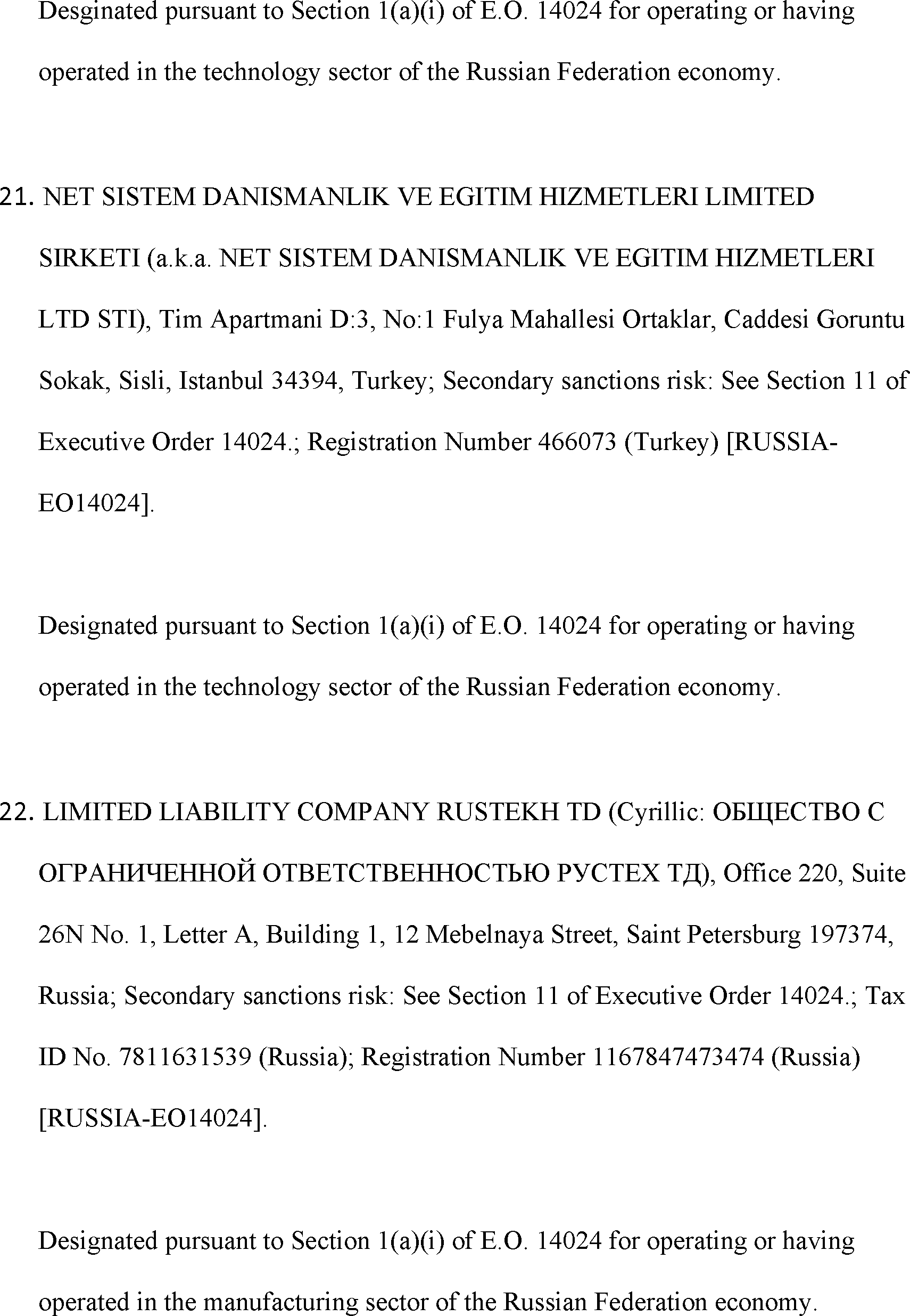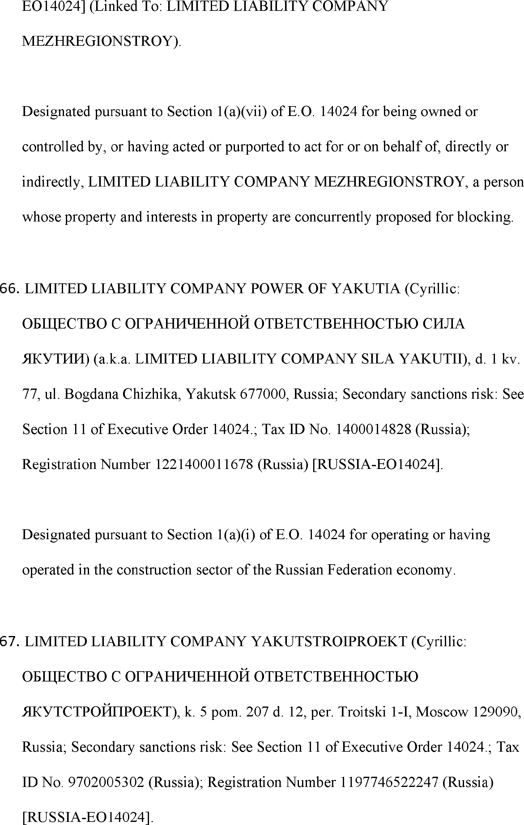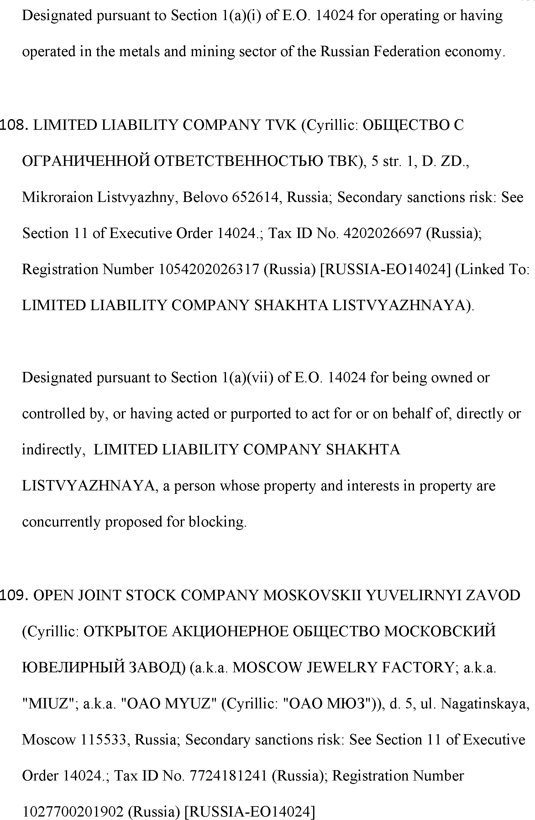 “Notice of Department of State Sanctions Actions Pursuant to the Executive Order Regarding Blocking Property With Respect to Specified Harmful Foreign Activities of the Government of the Russian Federation,” thefederalregister.org (February 21, 2025), https://thefederalregister.org/documents/2025-02899/notice-of-department-of-state-sanctions-actions-pursuant-to-the-executive-order-regarding-blocking-property-with-respect.
