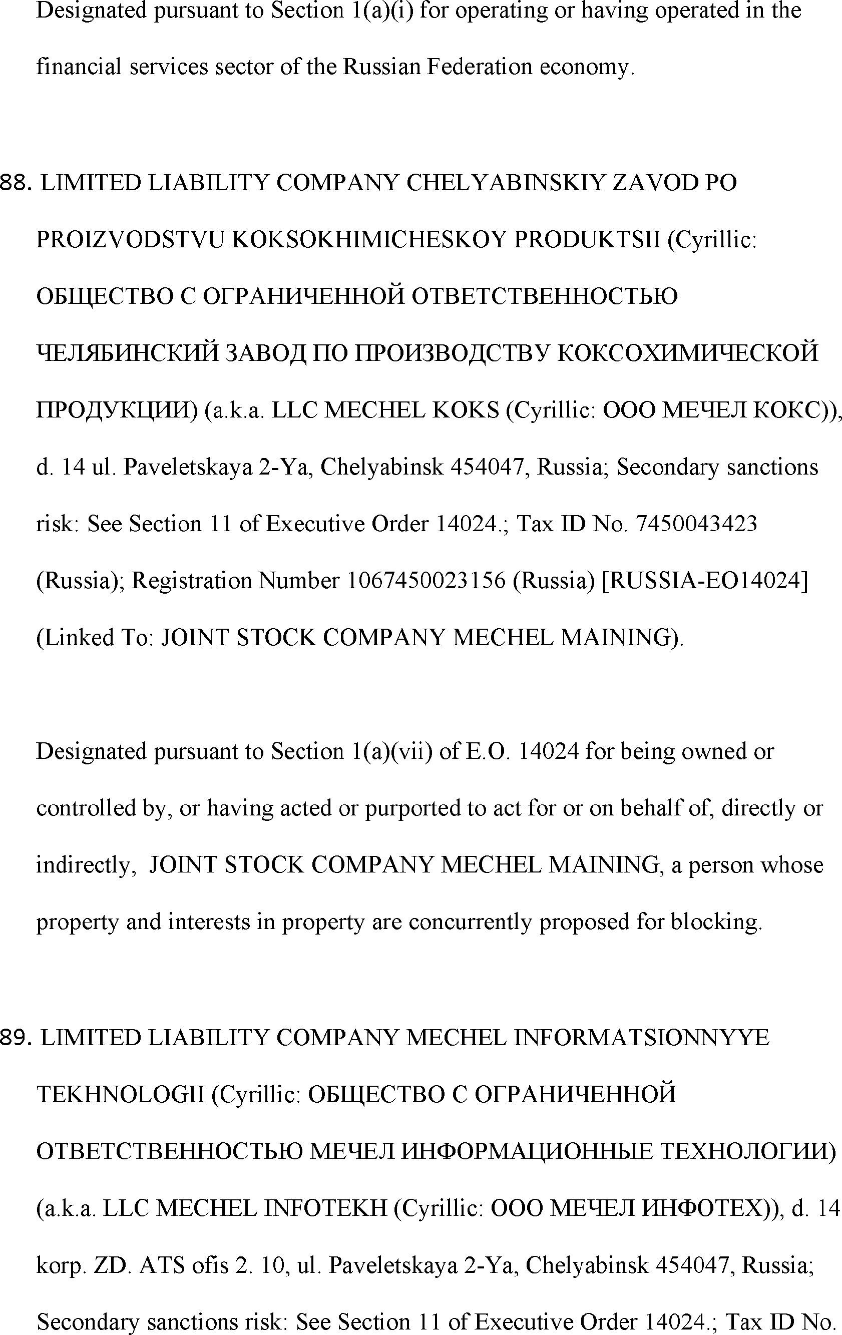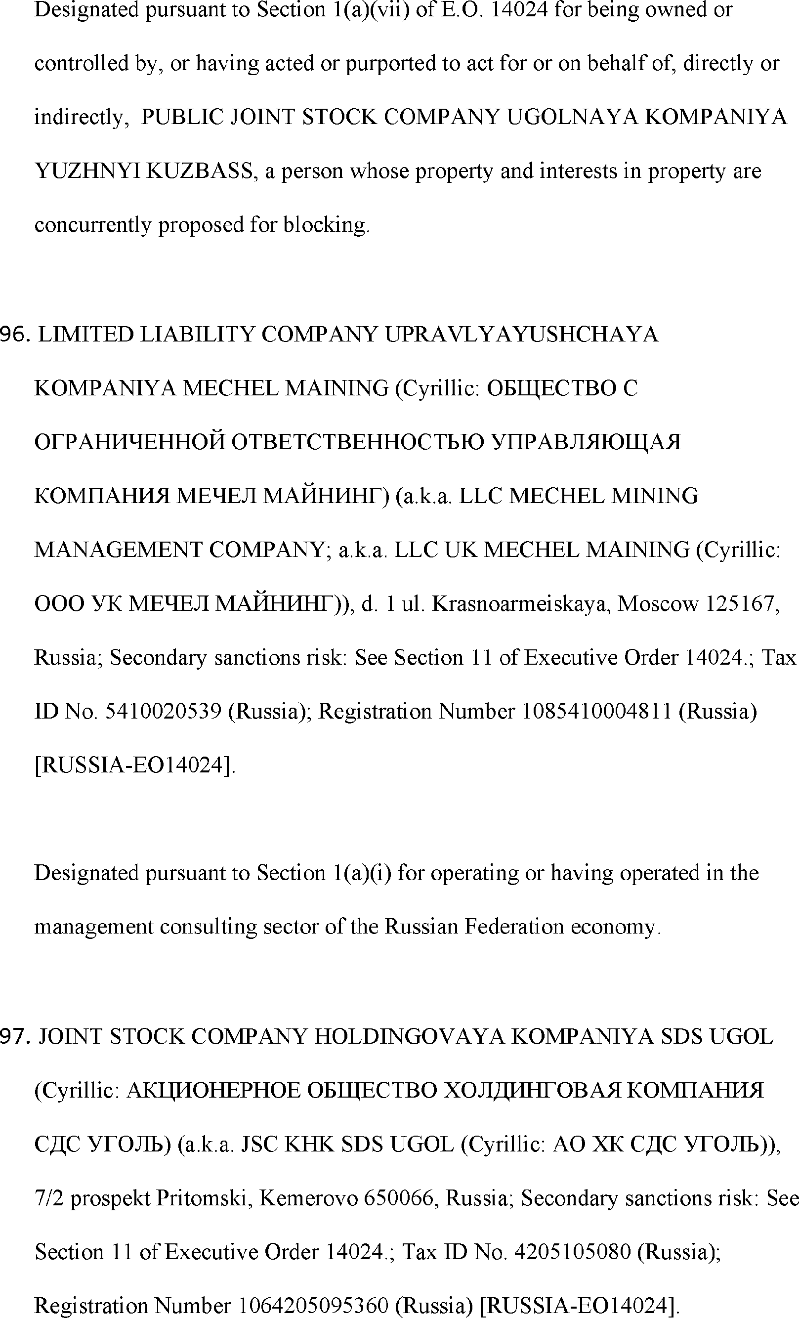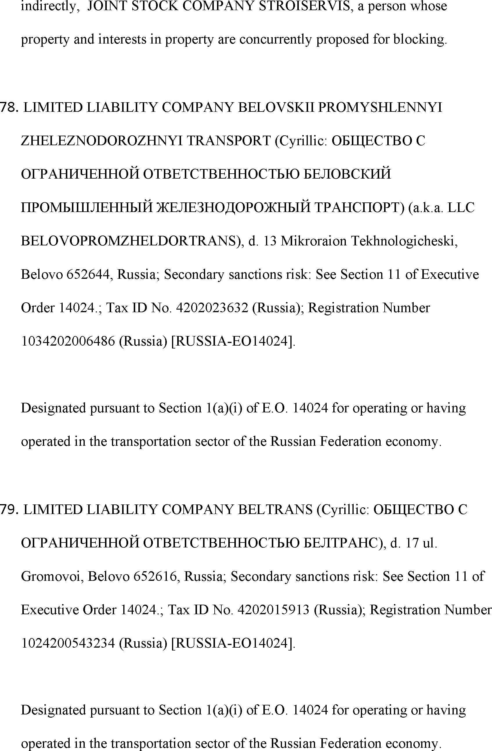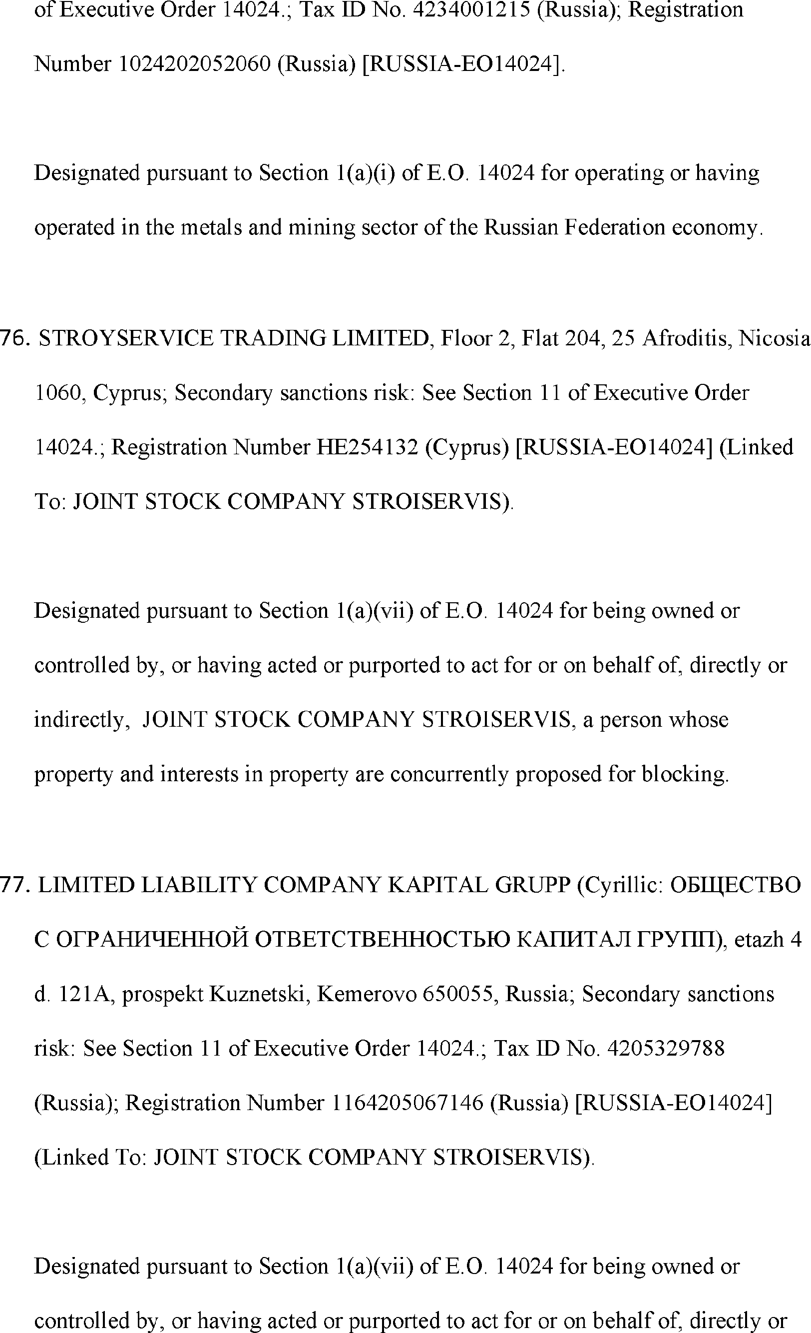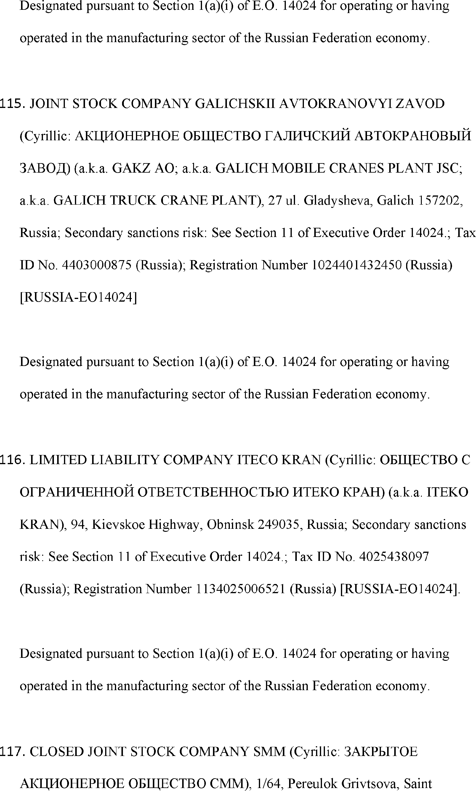 “Notice of Department of State Sanctions Actions Pursuant to the Executive Order Regarding Blocking Property With Respect to Specified Harmful Foreign Activities of the Government of the Russian Federation,” thefederalregister.org (February 21, 2025), https://thefederalregister.org/documents/2025-02899/notice-of-department-of-state-sanctions-actions-pursuant-to-the-executive-order-regarding-blocking-property-with-respect.